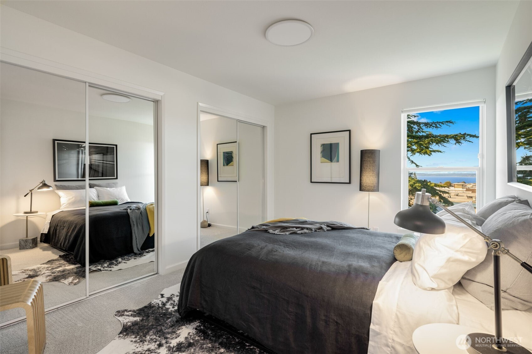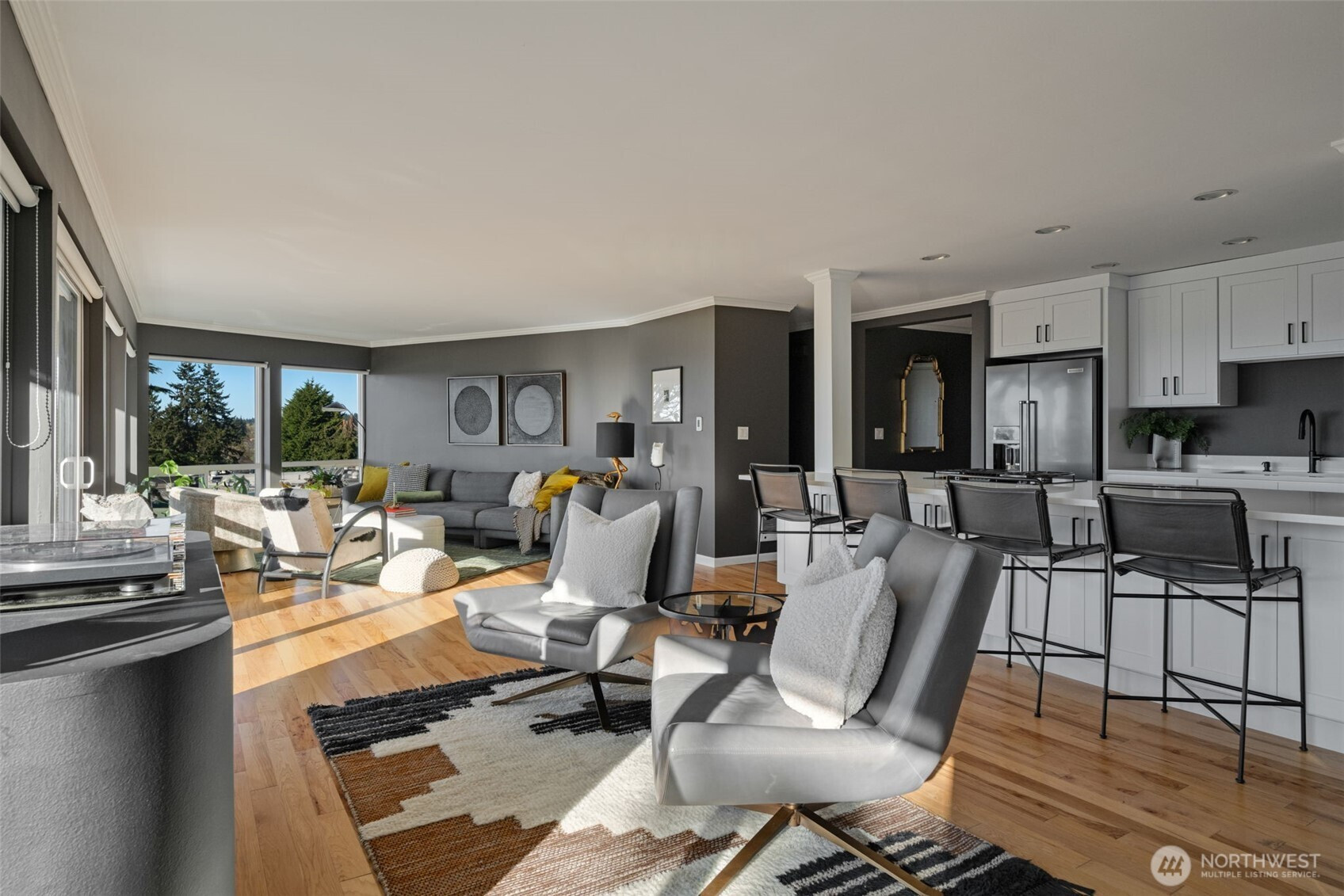 Unmatched, sweeping Sound, ferry, and mountain views from this stunning one-level condo in downtown Edmonds. Floor-to-ceiling windows fill the home with natural light and showcase breathtaking sunsets and ever-changing marine activity. This bright and airy residence offers two spacious bedrooms and two beautifully remodeled bathrooms. A stunning kitchen remodel w/ quartz countertops, gas cooktop & endless storage. Enjoy fresh paint throughout, new carpet, & updated fixtures. Cozy up by the fireplace or unwind on your spacious private deck, savoring sunsets and watching ferries glide across the Sound. Beautiful, well maintained grounds and outdoor swimming pool. Major updates include new siding, decks, roof and windows. New plumbing throughout. Secured building with elevator. Ideally located just minutes from Edmonds' vibrant shops, dining, theater, and the waterfront. Pacific NW living at its finest. Come enjoy!