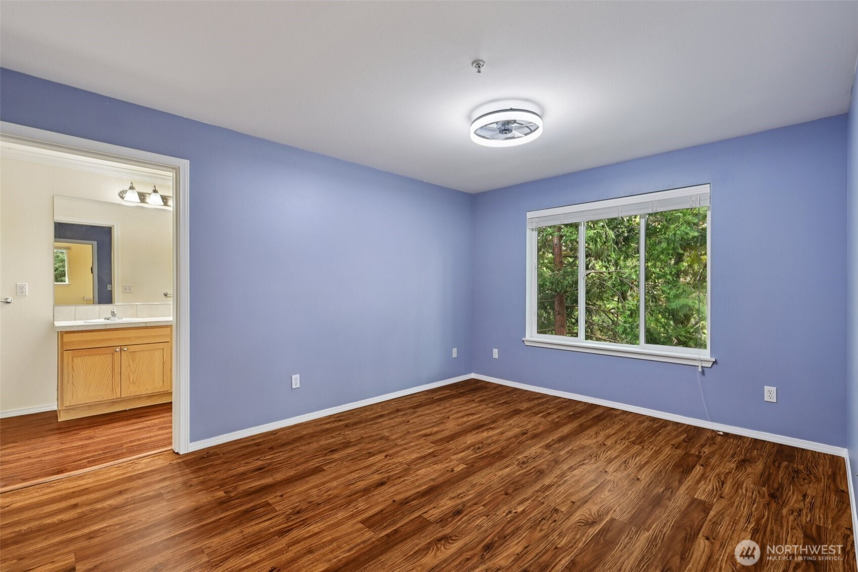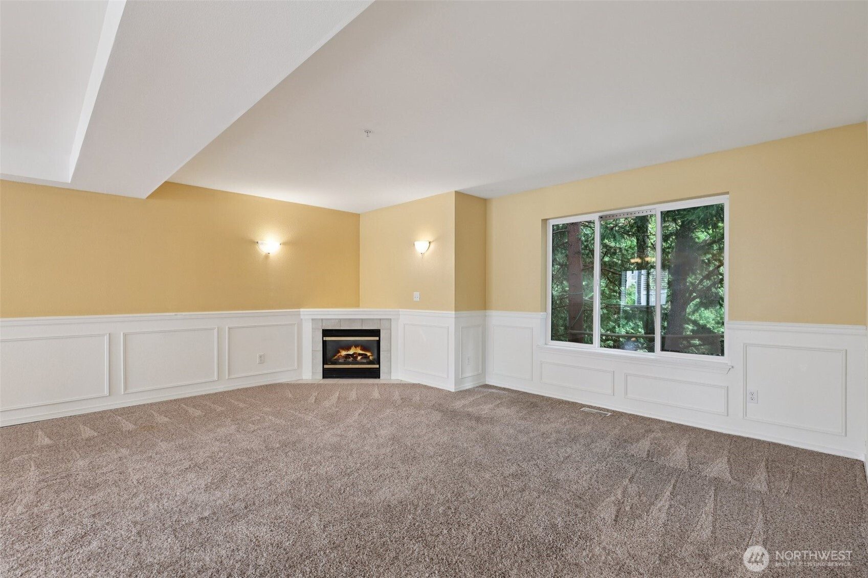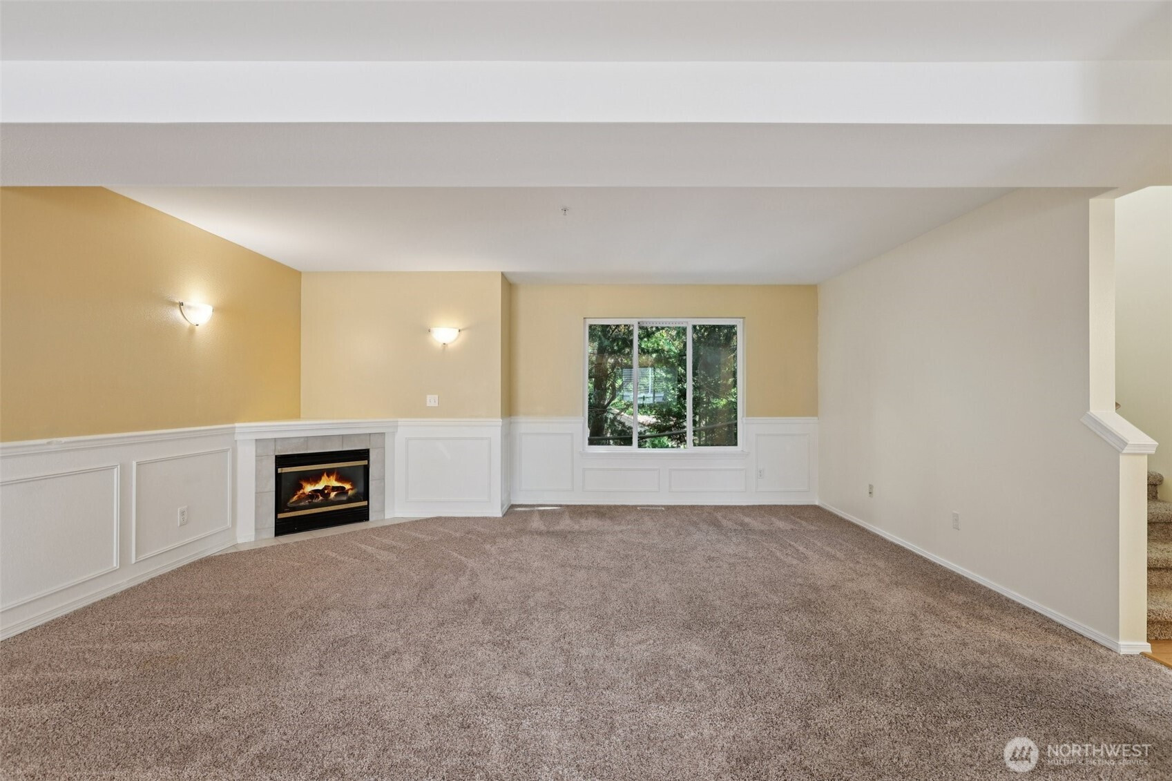 3 bd, 2.5 bath corner unit Townhome in the heart of Mountlake Terrace. Lower level has an oversized 2-car garage, BR/Den, & tiled entry. Open concept main level w/ bamboo floors in Kitchen and Dining rooms, carpeted living room & stairs, LVP in the powder room. West-facing balcony allows for great light exposure & sun for your beloved plants! Living room includes a cozy gas fireplace, & picture window that looks out on trees & bird feeders. Upper level has LVP throughout, & features 2 large bedrooms, each w/ an ensuite bathroom. Main bedroom includes a large walk-in closet. Laundry is also located upstairs. Quiet, wooded residential street, w/ excellent bird watching opportunities from living room. Easy access to I-5 & light rail station.
