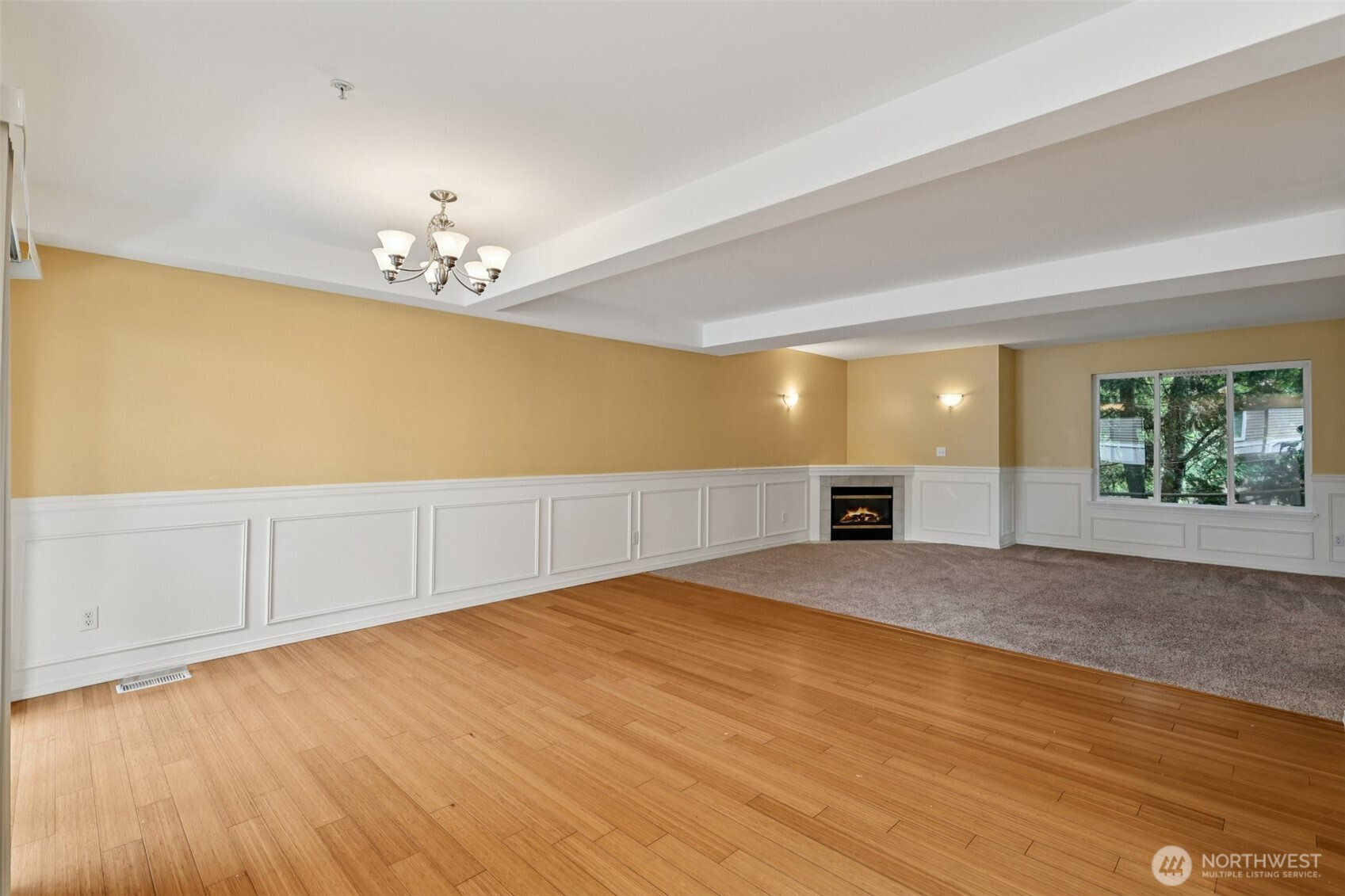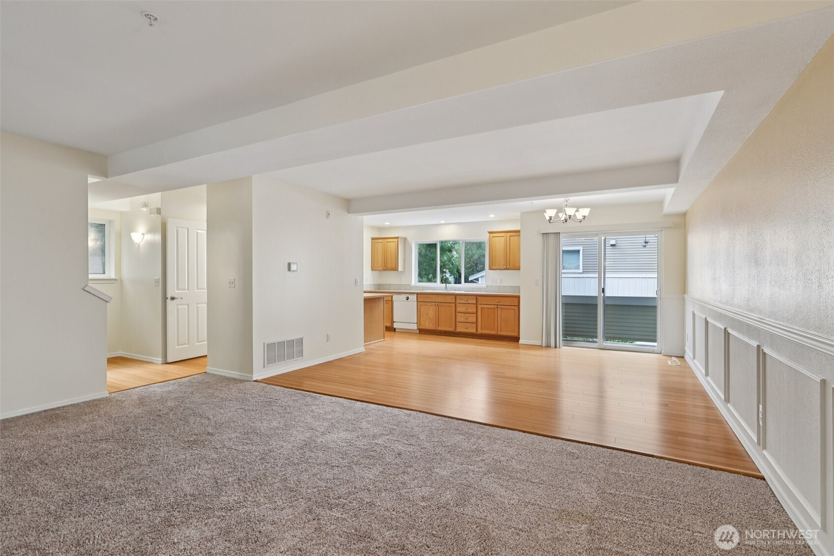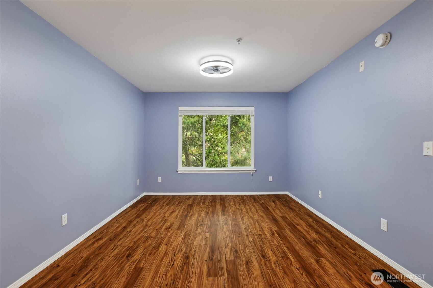 3 bd, 2.5 bath corner unit Townhome in the heart of Mountlake Terrace. Lower level has an oversized 2-car garage, BR/Den, & tiled entry. Open concept main level w/ bamboo floors in Kitchen and Dining rooms, carpeted living room & stairs, LVP in the powder room. West-facing balcony allows for great light exposure & sun for your beloved plants! Living room includes a cozy gas fireplace, & picture window that looks out on trees & bird feeders. Upper level has LVP throughout, & features 2 large bedrooms, each w/ an ensuite bathroom. Main bedroom includes a large walk-in closet. Laundry is also located upstairs. Quiet, wooded residential street, w/ excellent bird watching opportunities from living room. Easy access to I-5 & light rail station.