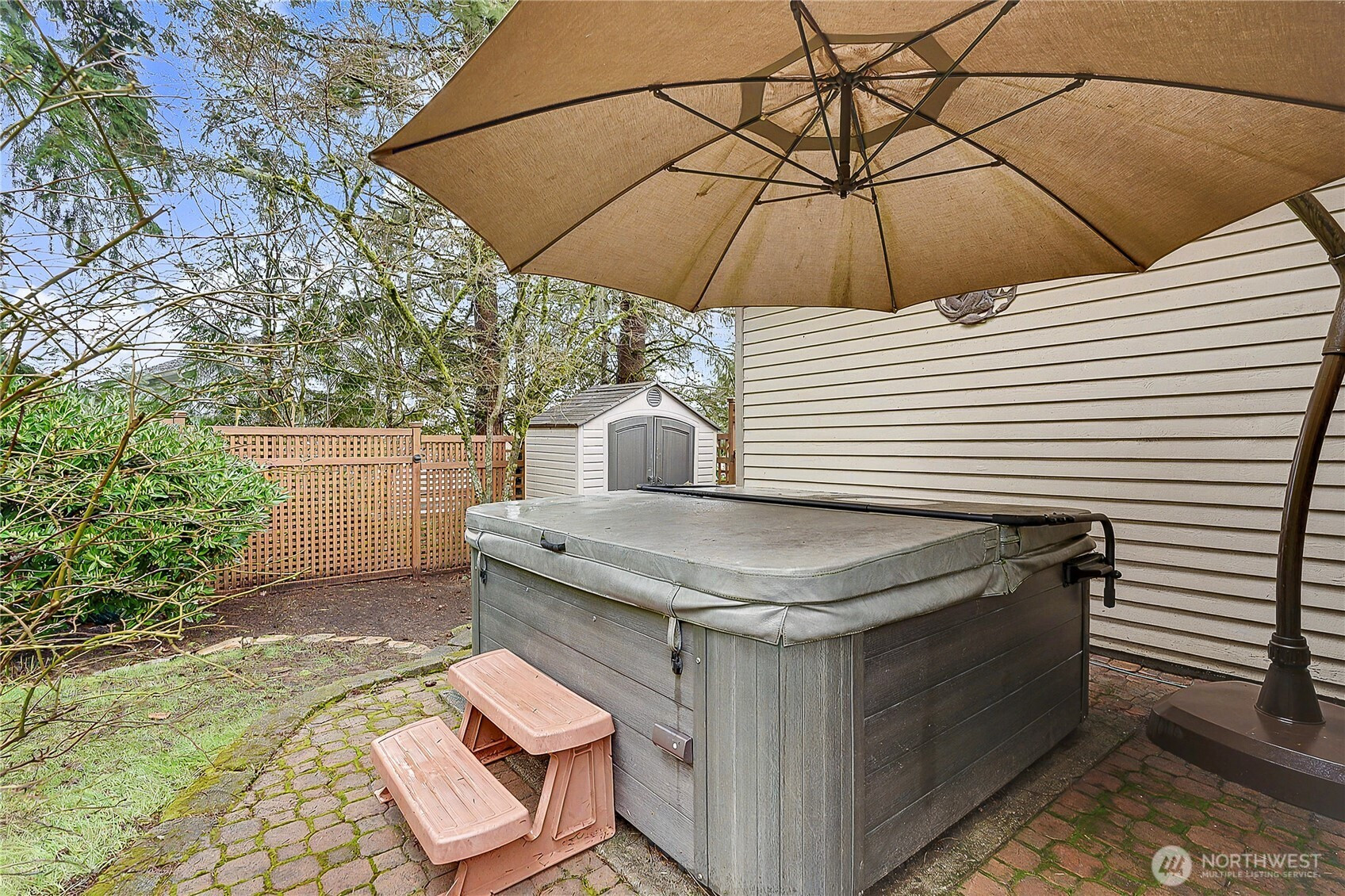 Beautifully updated and thoughtfully designed, this 3-bedroom, 2.5-bath home with a versatile den offers the perfect blend of comfort and style. The chef’s kitchen is ideal for both everyday living and entertaining, while recent upgrades—including new insulation, a new hot water tank, a newer furnace, and a durable 50-year roof (less than 10 years old)—provide peace of mind. The spacious primary suite features elegant, coffered ceilings and a fully updated bath complete with heated floors for a spa-like retreat. Additional touches like wainscoting and vaulted ceilings add character and charm throughout the home. Step outside to a serene backyard that backs to a greenbelt, featuring a covered patio, hot tub, gas BBQ hook up and dedicated dog run—perfect for relaxing or hosting gatherings. Conveniently located within walking distance to elementary and middle schools, and surrounded by community parks, walking trails, and sport and tennis courts, this home truly has it all.