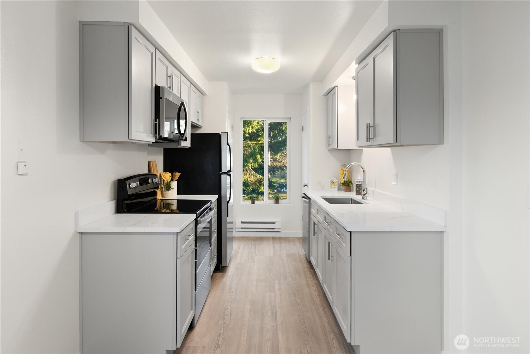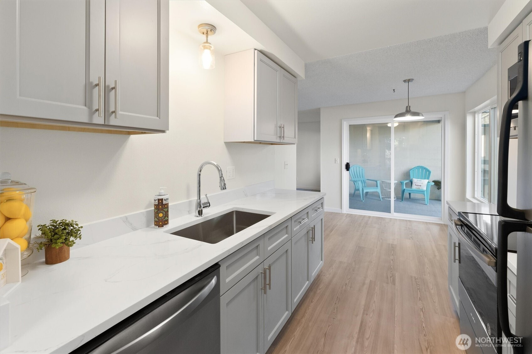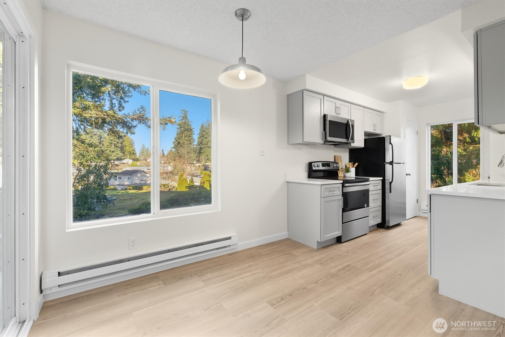 Welcome home to this beautifully remodeled and spacious 1-bedroom condo! Thoughtfully updated with new flooring, trim, fresh paint, modern cabinetry, quartz countertops, an undermount sink, and stainless steel appliances, this home blends style and comfort. The bedroom boasts two oversized closets, while the large covered deck provides the perfect space to unwind year-round. Enjoy resort-style amenities including an outdoor pool, sauna, clubhouse, and expansive laundry facility. Low HOA dues cover water, sewer, and garbage. Ideally situated near premier shopping and dining, light rail access, I-5, Hwy 99, and Alderwood Mall. Plus, two dedicated parking spots make everyday living easy.