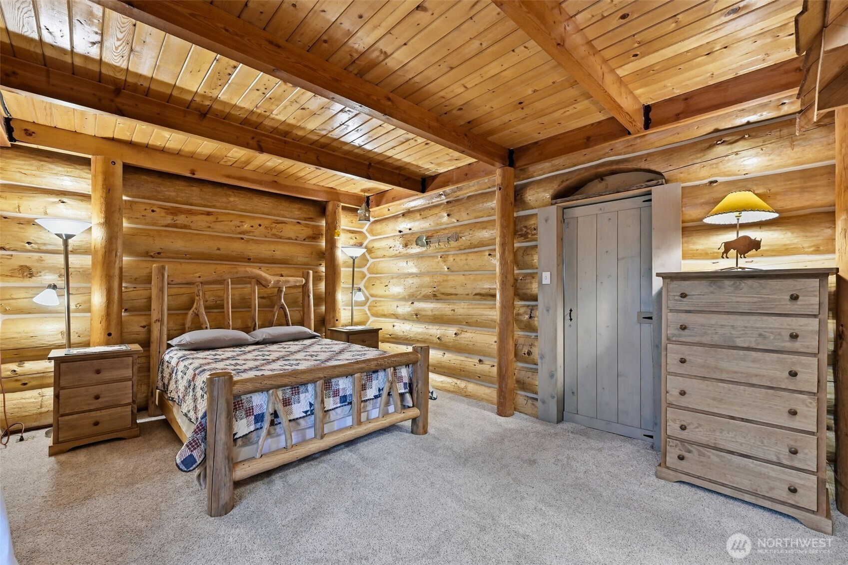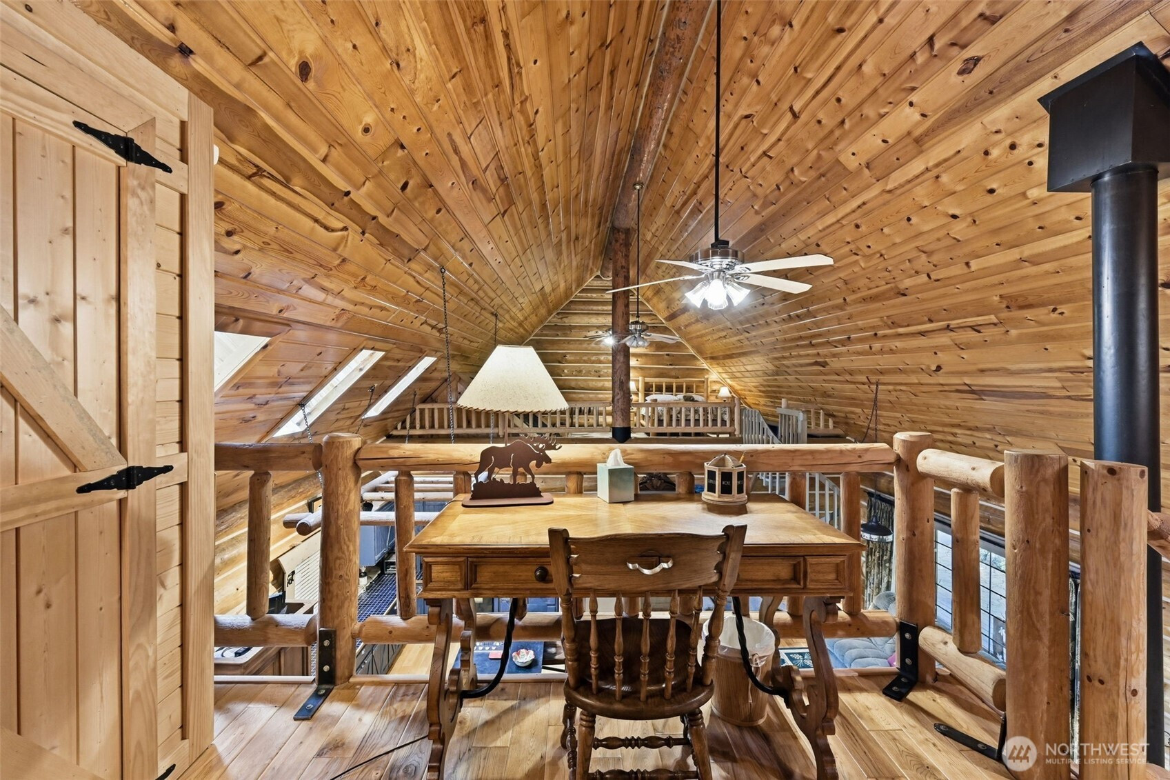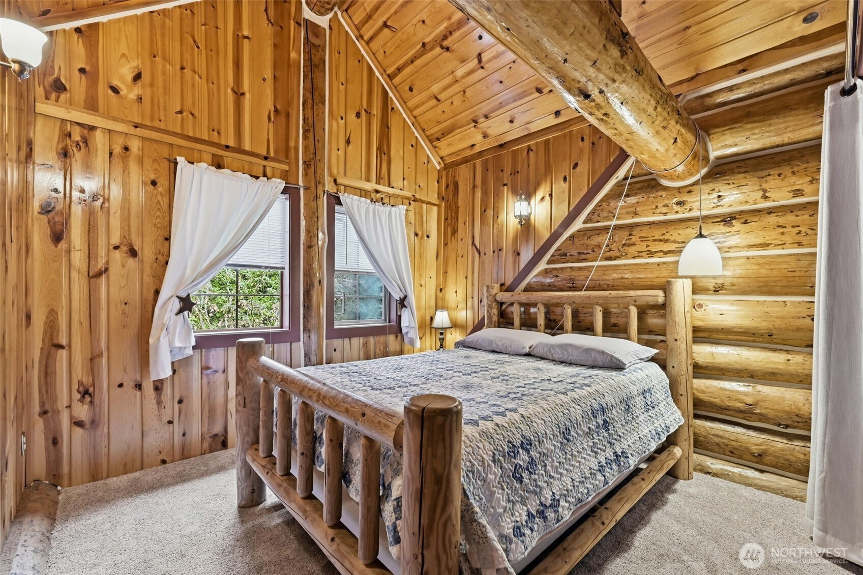 The Most Charming custom-built 3 BR 2 Bath Log Home you have ever seen built in 1988 on 2.5+ acres with over 400 feet of medium bank river frontage on the Pilchuck River. The Great Room features vaulted knotty pine ceilings, skylights, ceiling fans, oak hardwood floors, a wood stove, Energy efficient heating, and cooling system. Main floor primary bedroom with en-suite bath, beautiful log beamed ceilings. Two guest bedrooms with vaulted pine ceilings overlooking the Great Room, and a massive loft as well. This home also comes fully furnished with what you see in the home aside from a few personl items. Beautiful furnishings included with the home to name a few, are three beautiful log beds, bedroom, dining room, and living room sets, Outdoor furniture, and charm galore with outdoorsy decor. This is also an exciting opportunity for an Airbnb, VRBO or Retreat. The kitchen offers stainless steel appliances, a propane cooktop, and a breakfast bar that opens to the great room. The huge utility room equipped with a bank of custom-built cabinets. Outside, enjoy covered RV parking with electric hook ups, a detached shop or recreation room, a separate office with its own deck overlooking the river, along with covered parking attached to the shop with an EV charging station. You will love this home. Two spacious decks at the front and rear of the home. This is truly a ameticulously maintained “Country Log Home” .