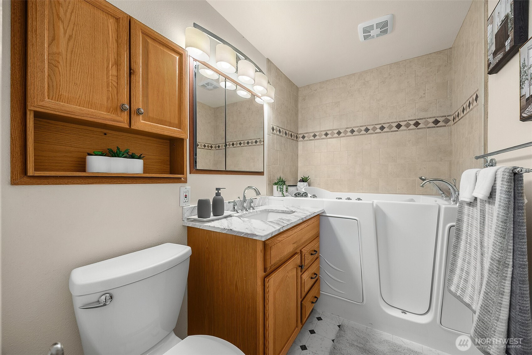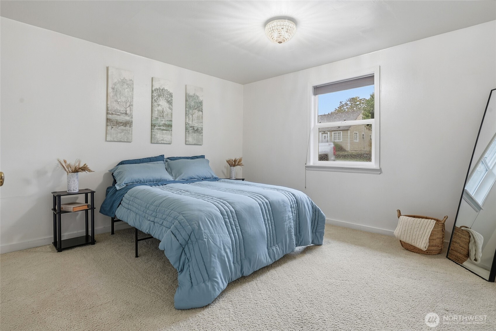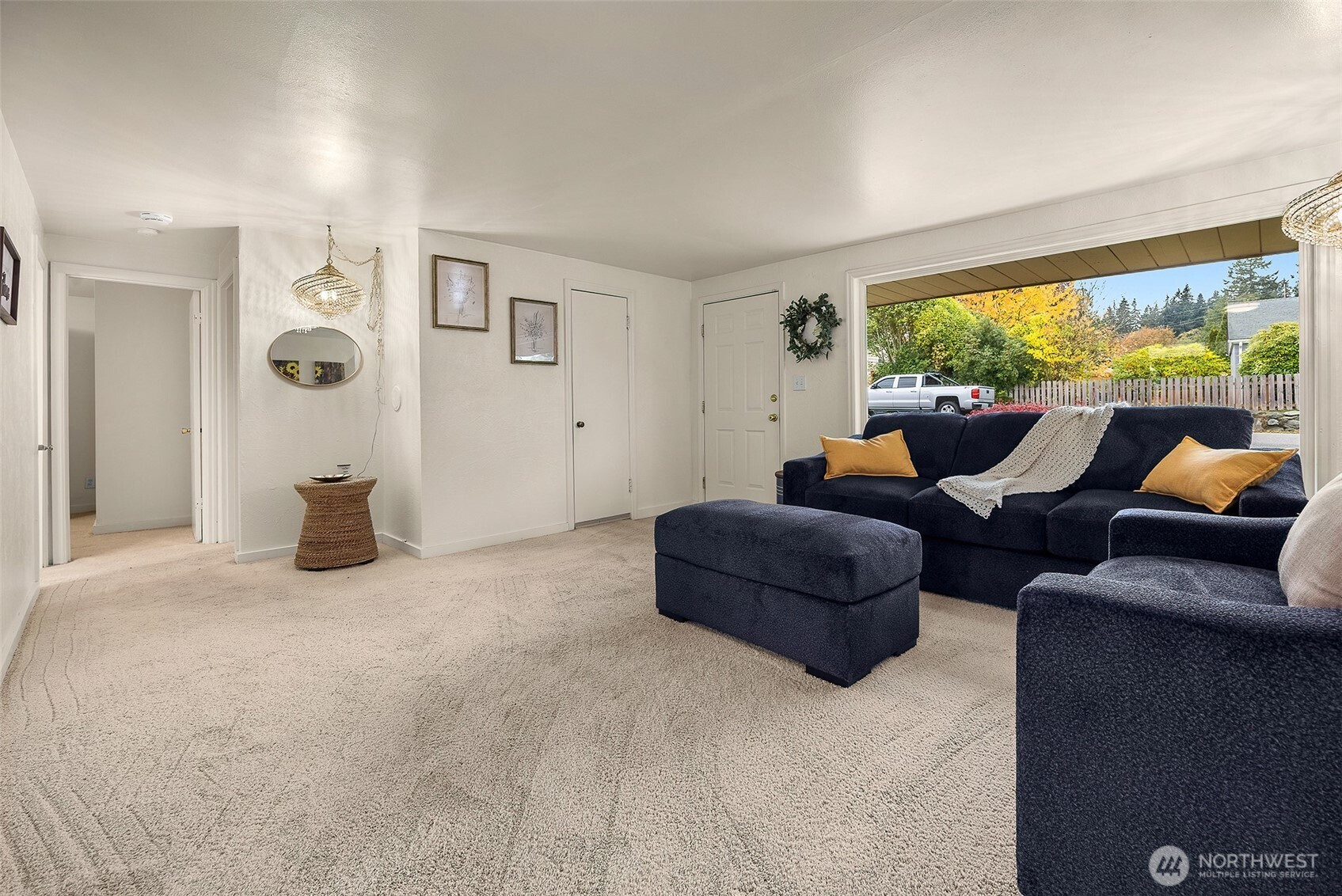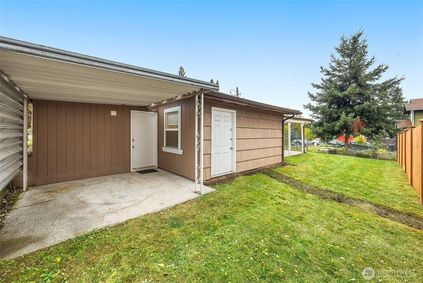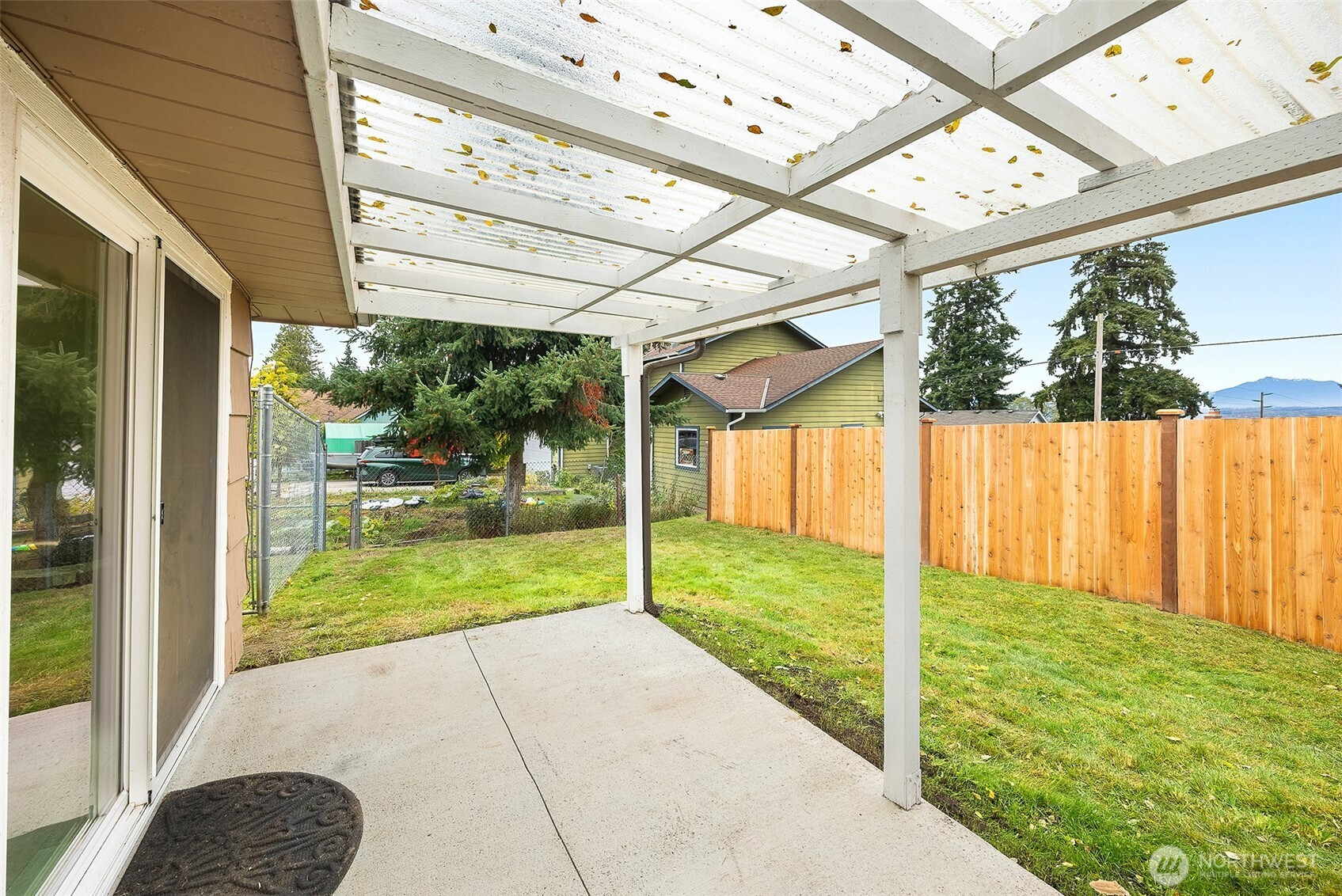 Charming rambler with zero access stairs in front or rear of the home offering easy, single-level living. This 2 bed, 1.75 bath home features a large living room with picture window overlooks the peaceful front yard. The kitchen has new countertops, single basin sink, new refrigerator in a fresh layout and opens to a covered patio—perfect for grilling, pets, or entertaining. The primary bedroom includes a walk-in closet, 3/4 bath and even backyard access. The guest bath features a jetted walk-in tub for added comfort and accessibility. Utility room has washer and dryer plus extra storage. Also, this home has a fully fenced backyard, carport, driveway & off street parking and is all located near I-5, Paine Field, Boeing, schools, & shopping.