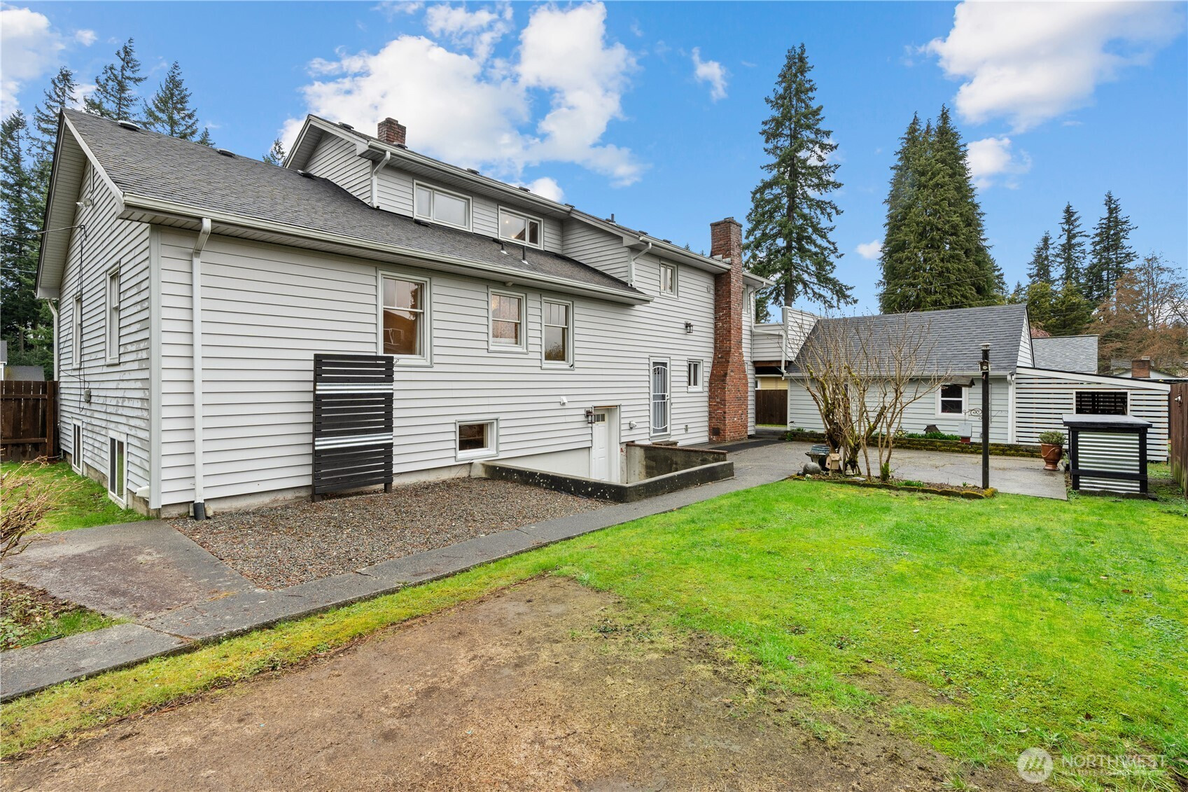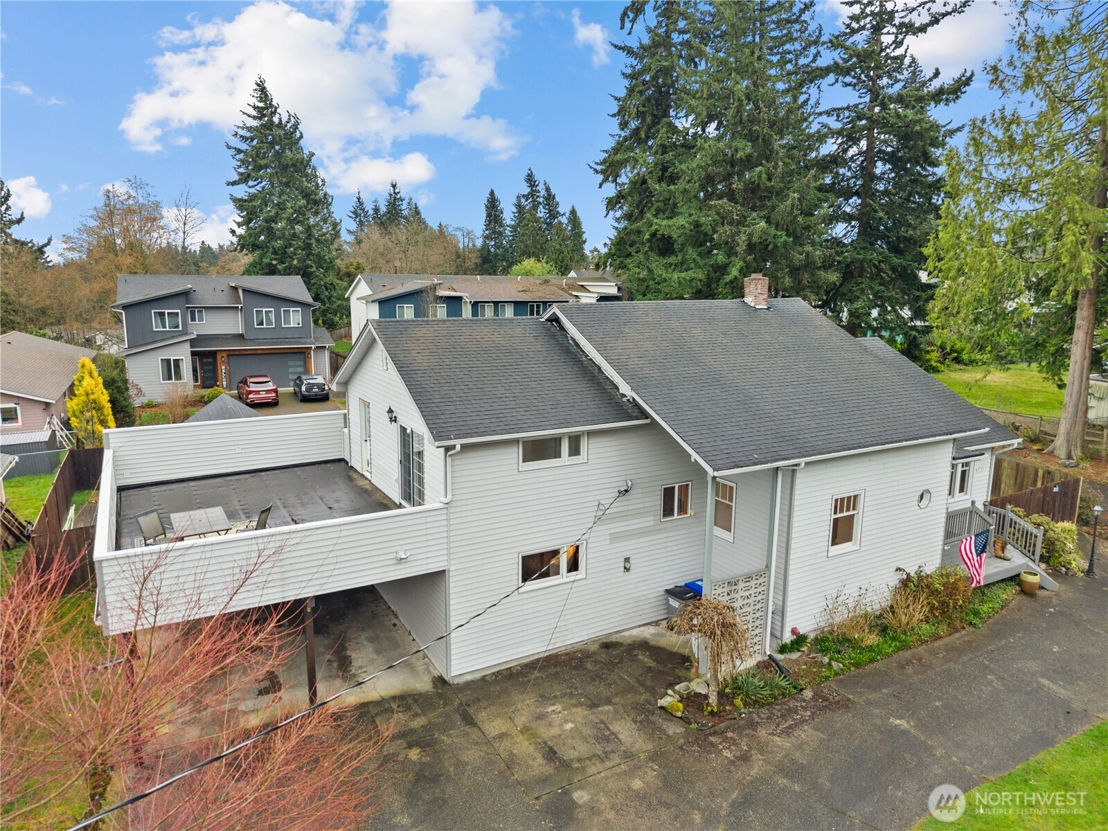 Generational living at its finest in this spacious 6 bedroom 2.5 bath Central Everett home! Offering 3,618 sq ft of flexible living space designed to accommodate multiple lifestyles under one roof. Full of 1940s charm, the main level features a formal living room, dining room & large spacious kitchen with oak cabinets, granite counters, and stainless appliances. 2 beds and a full bath are also located on the main floor. Upstairs, the private primary retreat offers access to a rooftop deck with stunning Mt. Pilchuck views, a perfect spot to enjoy morning coffee or unwind in the evening. The lower level showcases warm wood paneling, a cozy wood burning fireplace, and a large family room ideal for gathering. There is also a fully separate mother in law suite with private entrance that includes its own kitchen, living space, separate laundry, 2 additional beds, and a full bath, making it ideal for extended living or potential rental income. Situated on a large lot with a generous backyard a circular driveway, the property offers excellent parking with a detached two car garage with storage above + 2 covered carports. Recent updates include brand new hot water tank and new furnace. Located on a quiet dead end street with easy access to I-5 and just minutes to Boeing, this commuter friendly home offers space, versatility, and classic Everett charm. A must see opportunity!