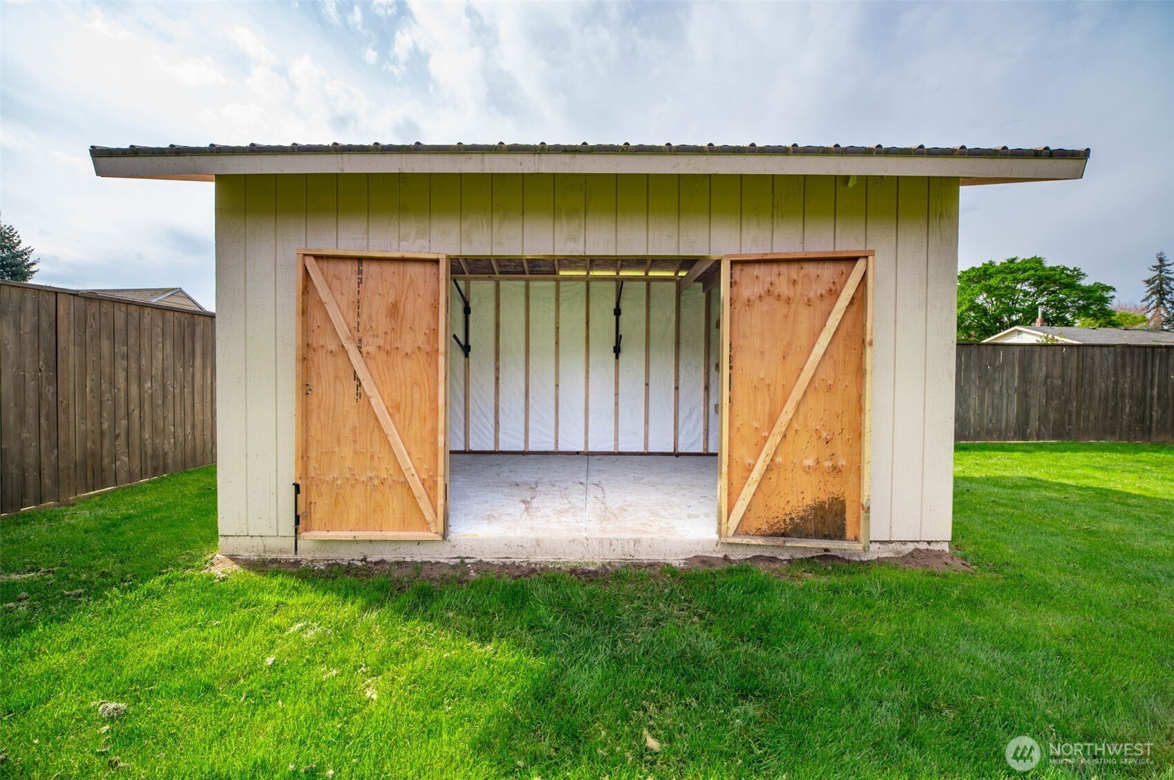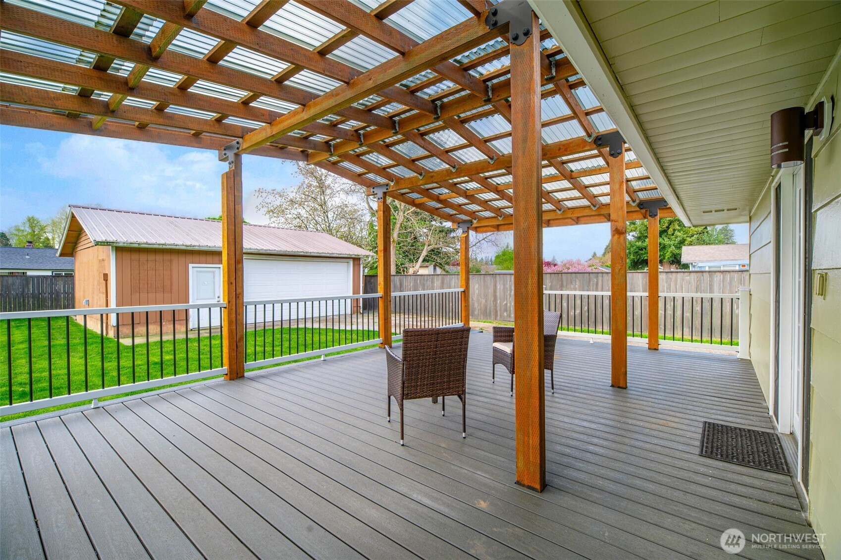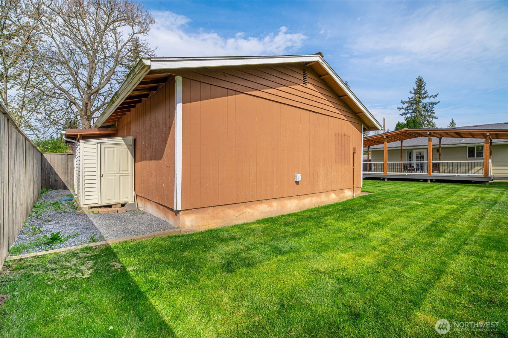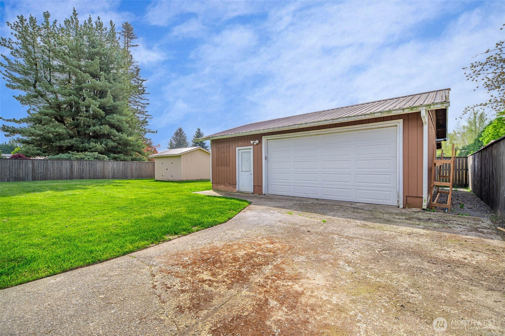 Updated and turnkey single story living with attached 2-car garage plus additional detached 720sf heated SHOP & RV/boat parking on large level lot! Great room style family room with freestanding pellet stove. High end remodeled kitchen with slab quartz counters, stainless steel appliances, under cabinet lighting & ample storage. Primary suite with updated bath including newer dual sink vanity and tile shower surround. Hall bath with newer tile floors, vanity and tile tub surround. Full size laundry room + guest 1/2 bathroom. Fresh white painted millwork and doors throughout. Newer electric heaters and thermostats. Updated fixtures throughout. New exterior paint. Newer roof, gutters, windows, 200amp breaker panel, fence w/concrete curbing. High end new covered composite decking and patio. Shop w/built-in air compressor, 2 propane tanks, 220 outlets & metal roof. Additional 12x16 garden shed. Fully fenced yard with sunny southern exposure. A rare find in convenient location.