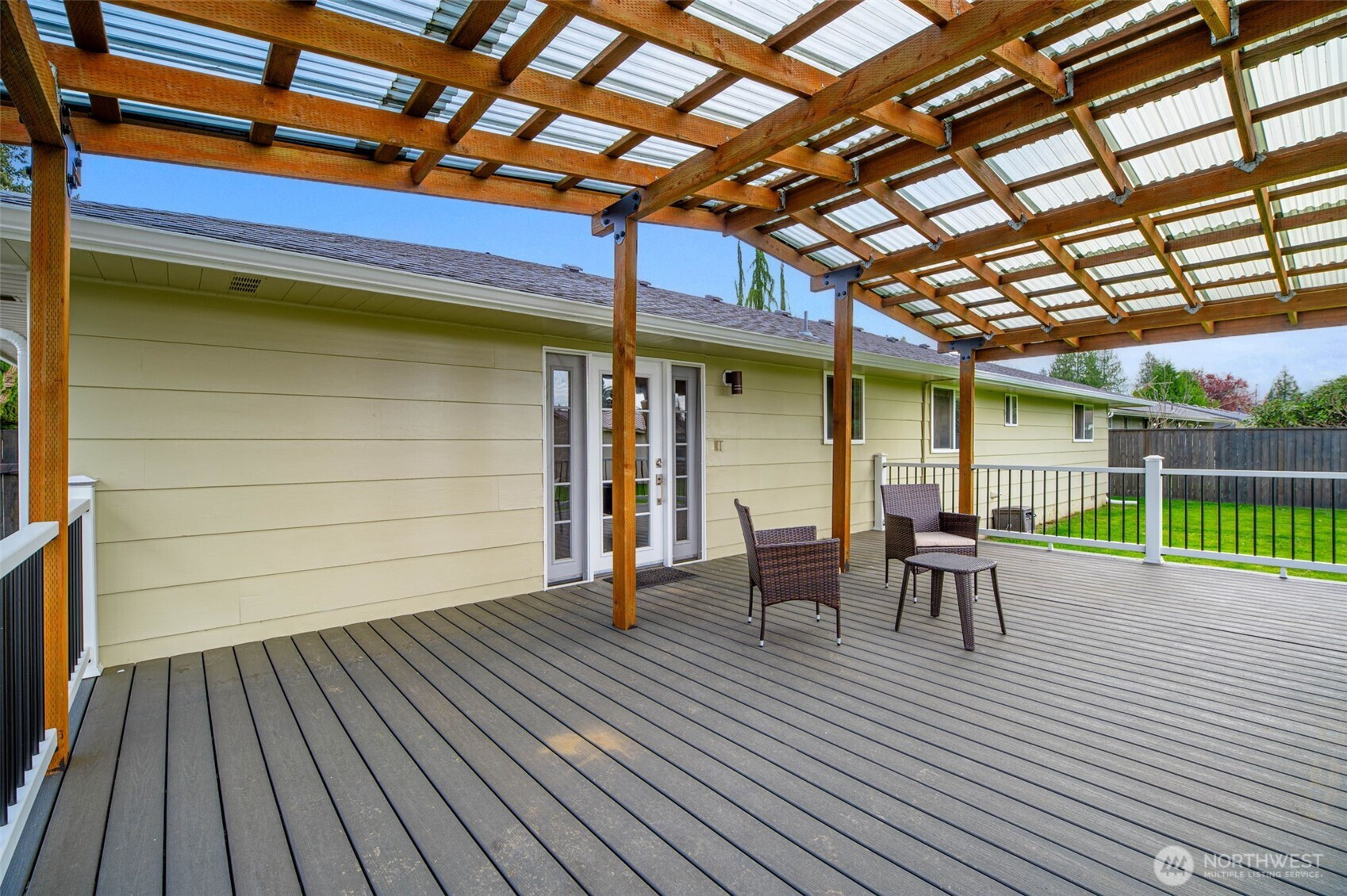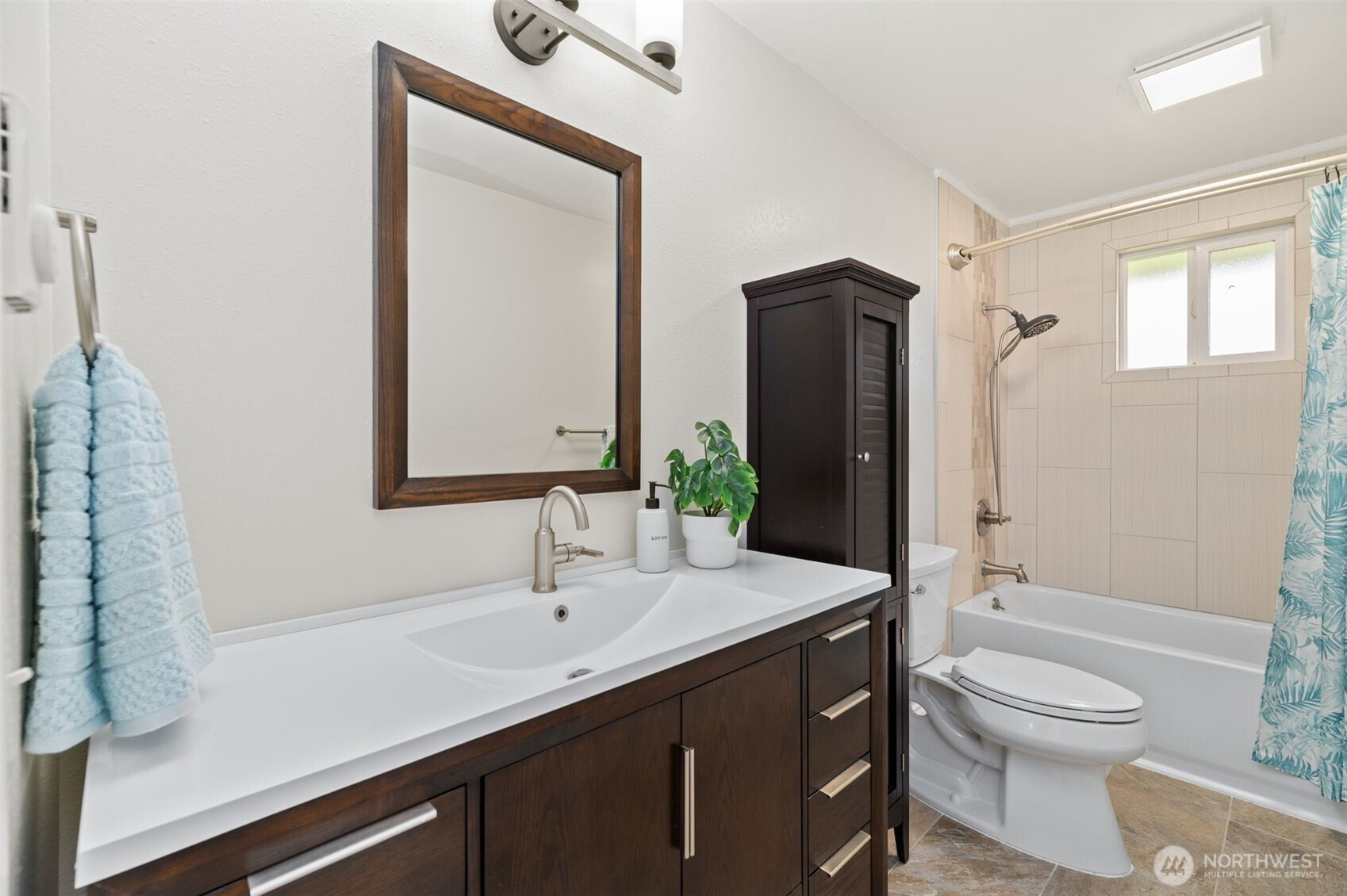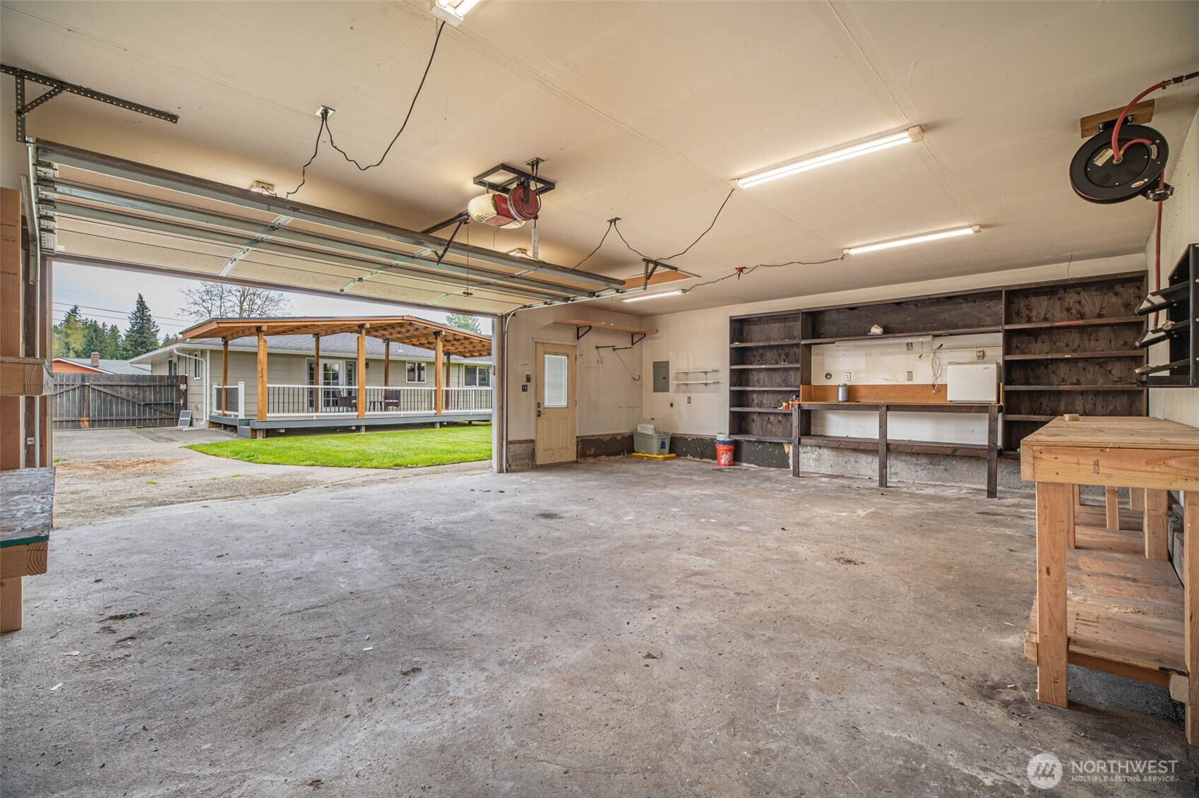 Updated and turnkey single story living with attached 2-car garage plus additional detached 720sf heated SHOP & RV/boat parking on large level lot! Great room style family room with freestanding pellet stove. High end remodeled kitchen with slab quartz counters, stainless steel appliances, under cabinet lighting & ample storage. Primary suite with updated bath including newer dual sink vanity and tile shower surround. Hall bath with newer tile floors, vanity and tile tub surround. Full size laundry room + guest 1/2 bathroom. Fresh white painted millwork and doors throughout. Newer electric heaters and thermostats. Updated fixtures throughout. New exterior paint. Newer roof, gutters, windows, 200amp breaker panel, fence w/concrete curbing. High end new covered composite decking and patio. Shop w/built-in air compressor, 2 propane tanks, 220 outlets & metal roof. Additional 12x16 garden shed. Fully fenced yard with sunny southern exposure. A rare find in convenient location.