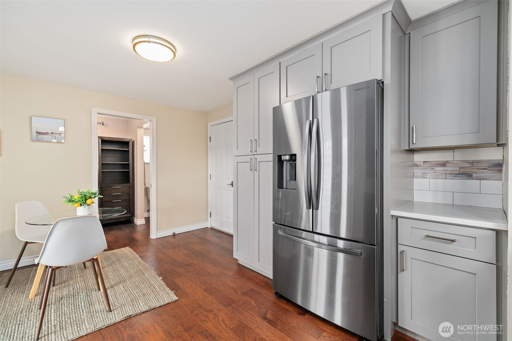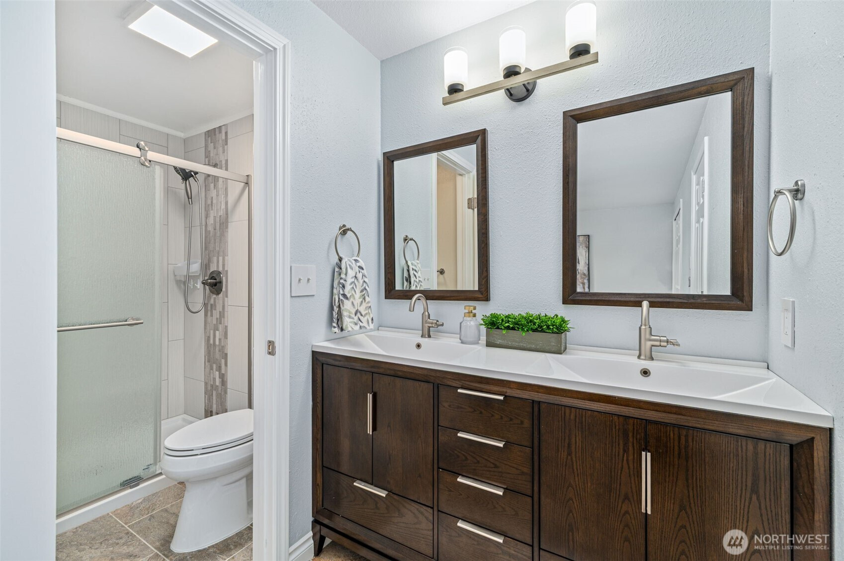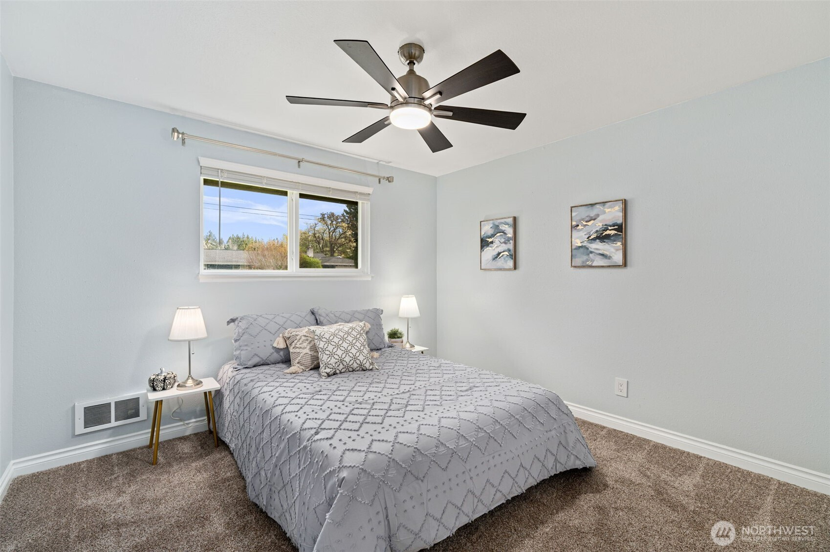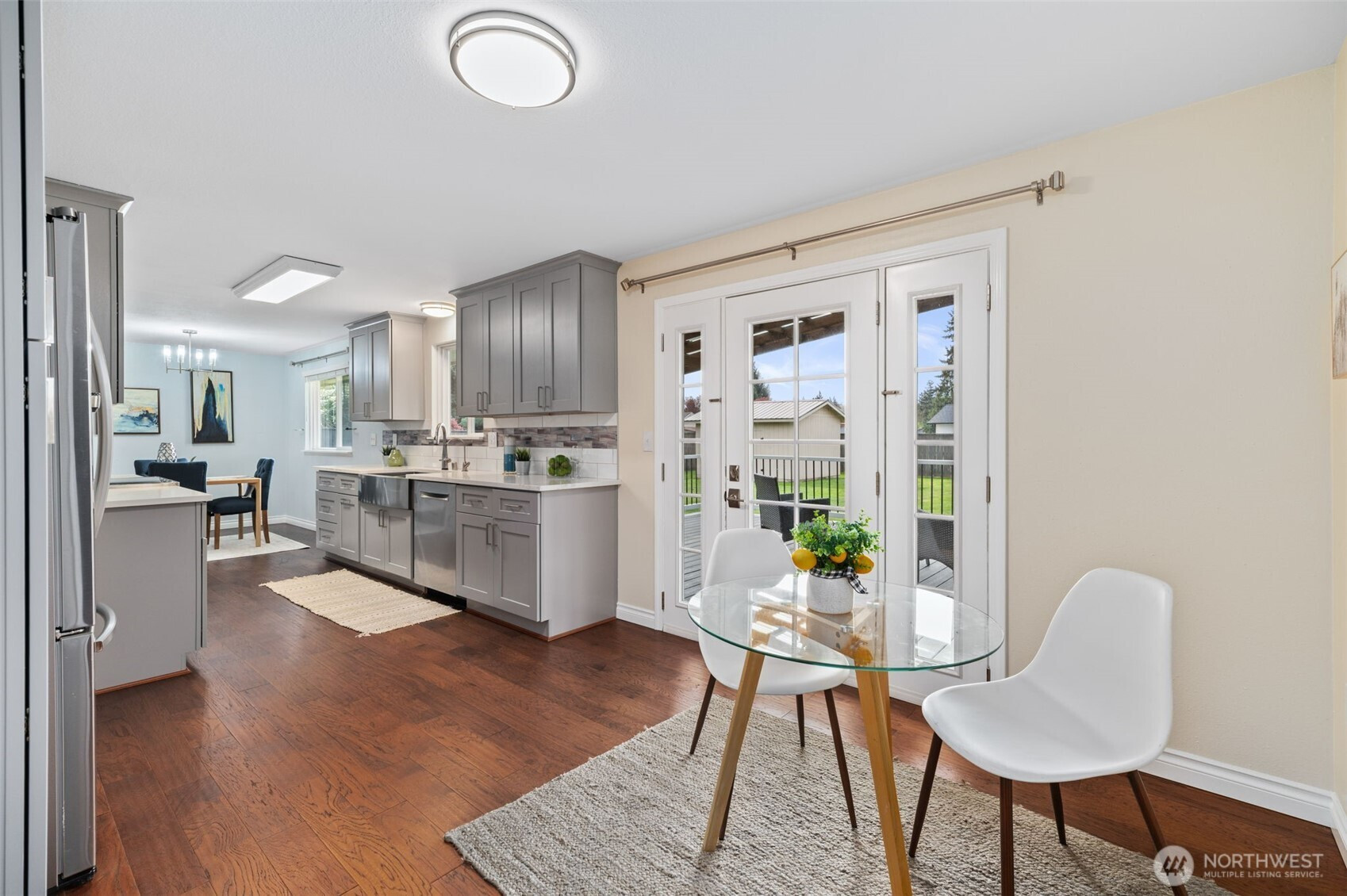 Updated and turnkey single story living with attached 2-car garage plus additional detached 720sf heated SHOP & RV/boat parking on large level lot! Great room style family room with freestanding pellet stove. High end remodeled kitchen with slab quartz counters, stainless steel appliances, under cabinet lighting & ample storage. Primary suite with updated bath including newer dual sink vanity and tile shower surround. Hall bath with newer tile floors, vanity and tile tub surround. Full size laundry room + guest 1/2 bathroom. Fresh white painted millwork and doors throughout. Newer electric heaters and thermostats. Updated fixtures throughout. New exterior paint. Newer roof, gutters, windows, 200amp breaker panel, fence w/concrete curbing. High end new covered composite decking and patio. Shop w/built-in air compressor, 2 propane tanks, 220 outlets & metal roof. Additional 12x16 garden shed. Fully fenced yard with sunny southern exposure. A rare find in convenient location.