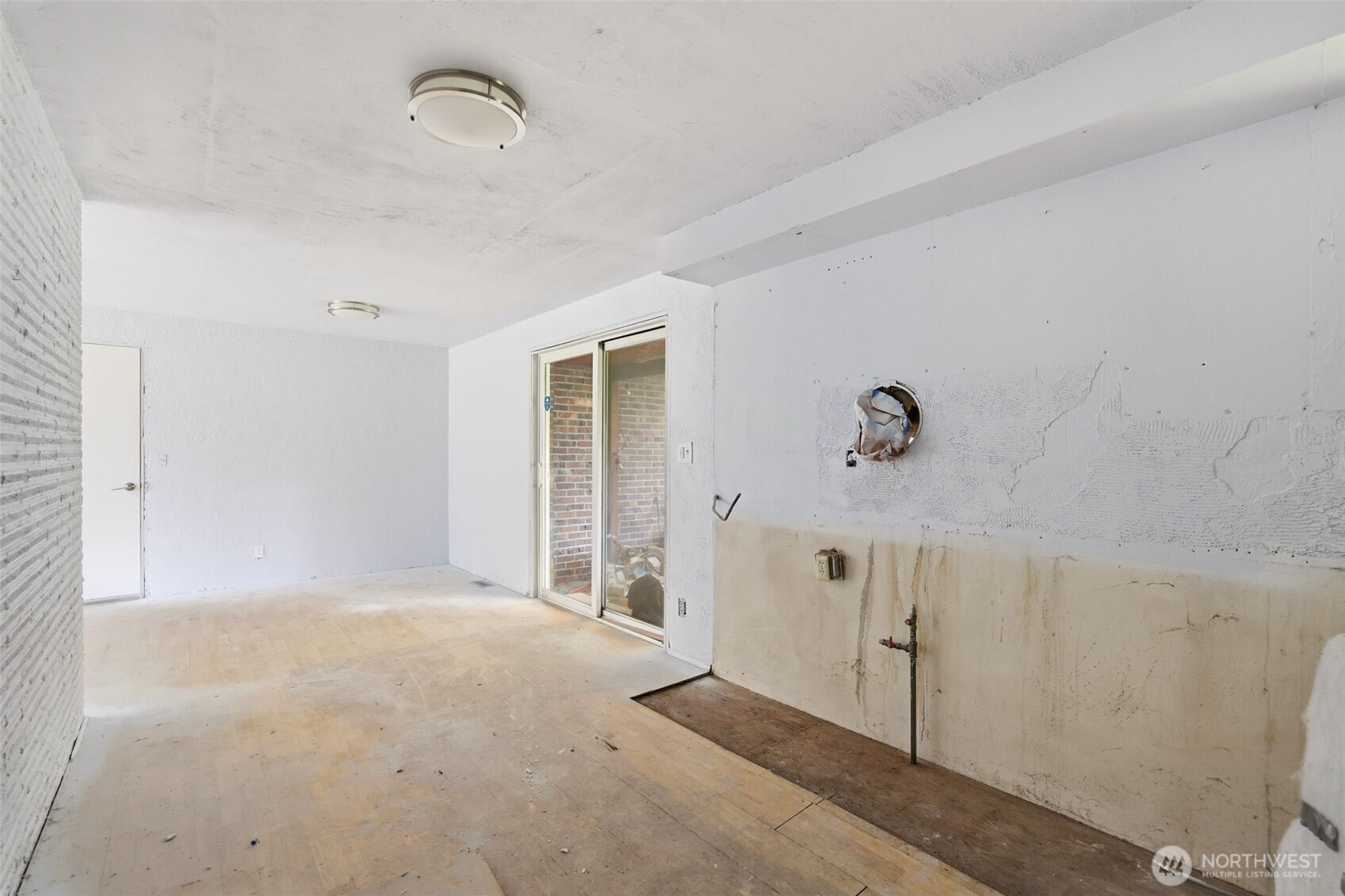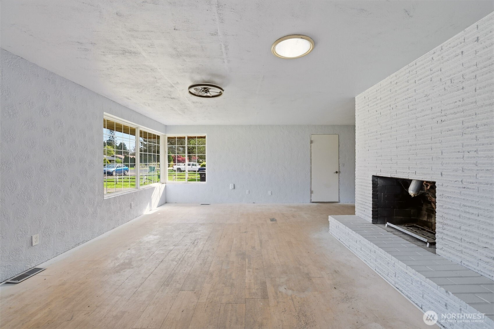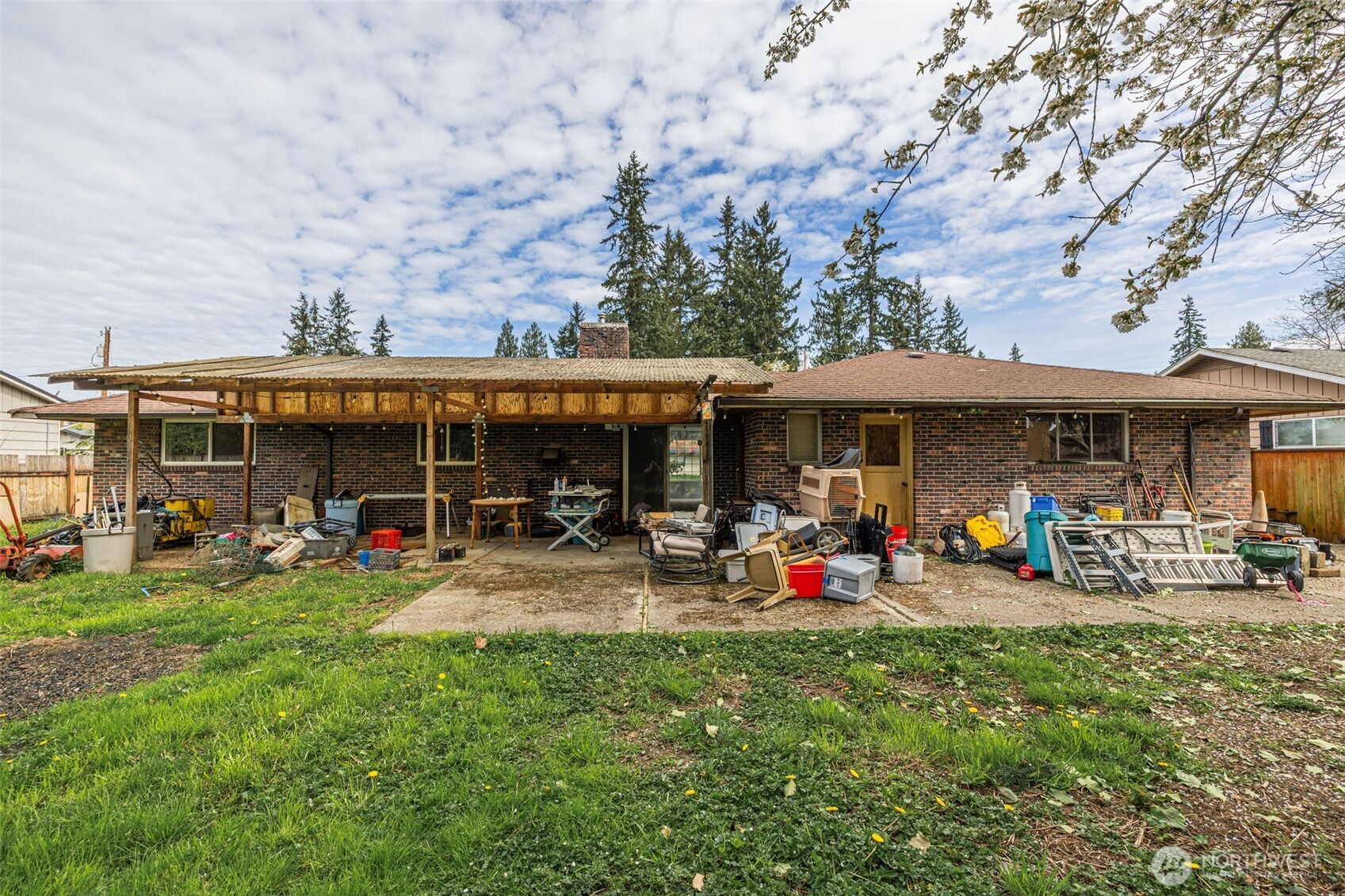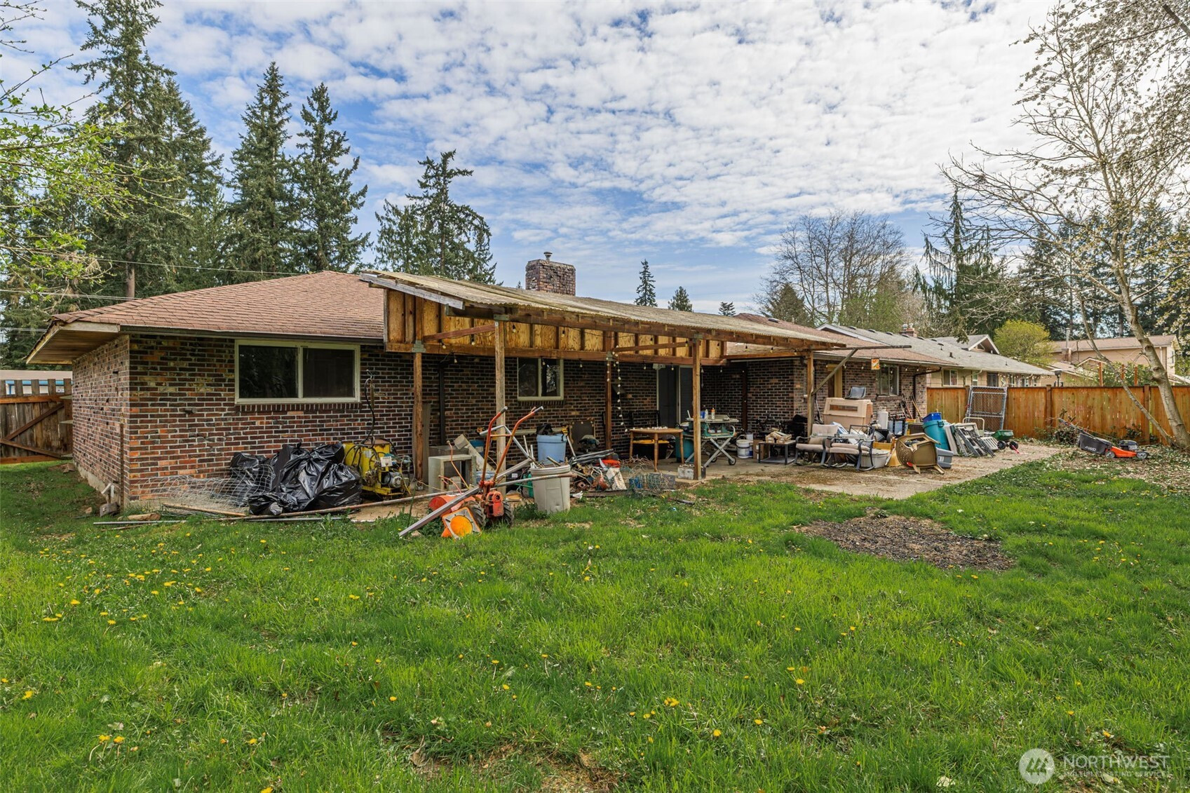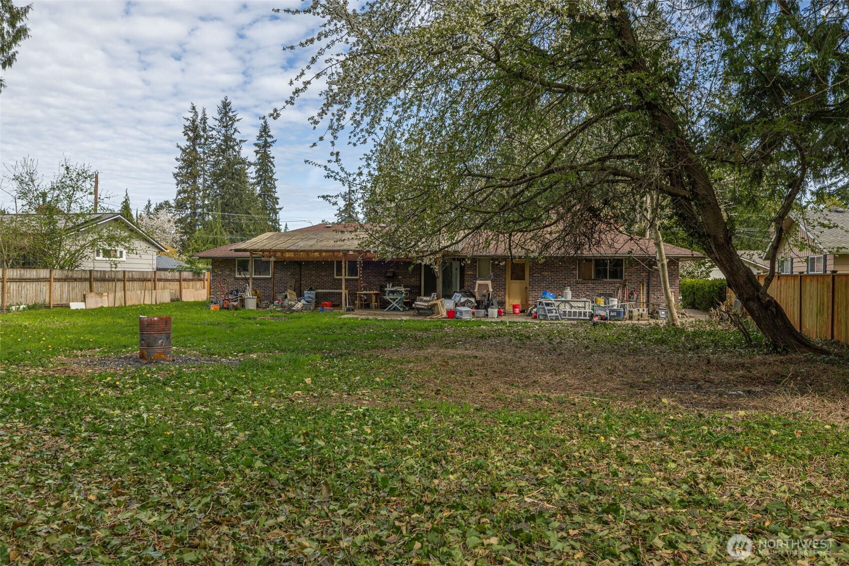 Investor opportunity! Solid brick rambler situated on nearly half an acre in a well-established neighborhood, offering incredible potential for customization and value growth. Work has already been started, creating a clean slate for your vision and finishing touches. A beautiful brick fireplace with gas hook-up is ready for a new stove, adding warmth and character to the main living space. Large windows provide abundant natural sunlight and overlook the front yard, creating a bright and inviting atmosphere throughout. The kitchen features a convenient slider leading directly to the backyard, making BBQ nights and indoor-outdoor entertaining effortless. The oversized garage includes a half bath and offers excellent space for mechanics, hobbyists, storage, or workshop needs. Step outside to a huge fully fenced backyard with endless entertainment potential, plenty of room for gatherings, gardening, pets, or play. RV parking in the front yard provides added flexibility for recreational vehicles or extra parking. Septic has been pumped. Excellent location close to freeway access, restaurants, shopping, and everyday amenities. A fantastic opportunity to create something truly special and build equity in a desirable area.