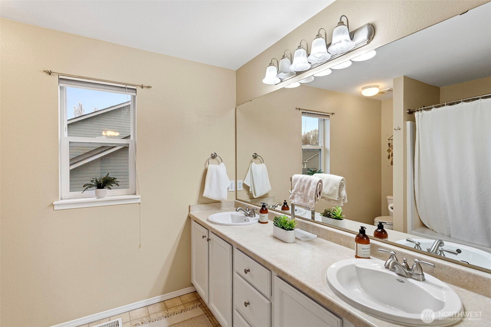 Beautiful freshly painted 4-bedroom, 2.5-bath home. This 1,914 sq ft two-story offers a bright, open layout that is truly move-in ready. The spacious primary suite features a walk-in closet, private bath, & dual sinks. The main level includes a formal dining room & inviting living spaces that flow seamlessly for everyday living & entertaining. The kitchen offers ample cabinetry, stainless steel appliances, Corian countertops, & a convenient eat-in bar. Thoughtfully maintained w/brushed nickel hardware & updated light fixtures throughout. Enjoy a sidewalk-lined neighborhood close to Jennings Park, the YMCA, & Allen Creek Elementary. Prime location w/quick access to I-5 and Hwy 9 for easy commute. Newer roof (2023).