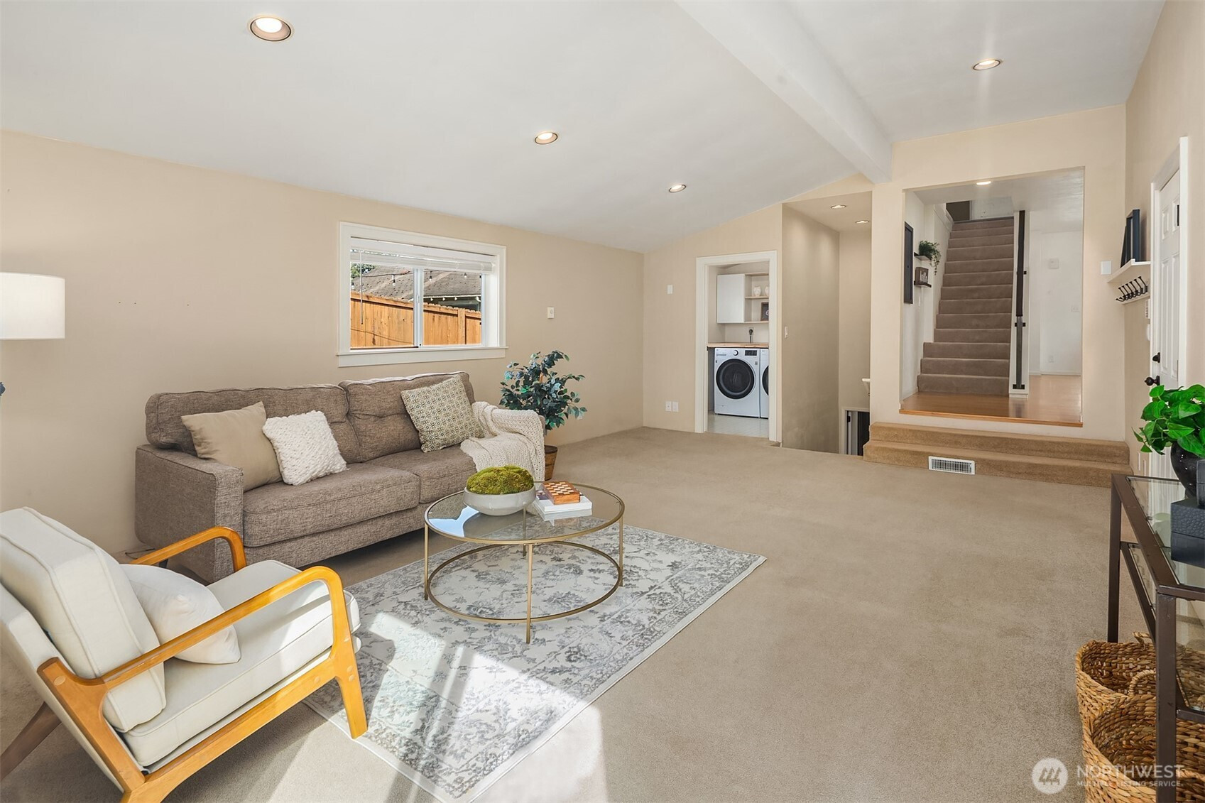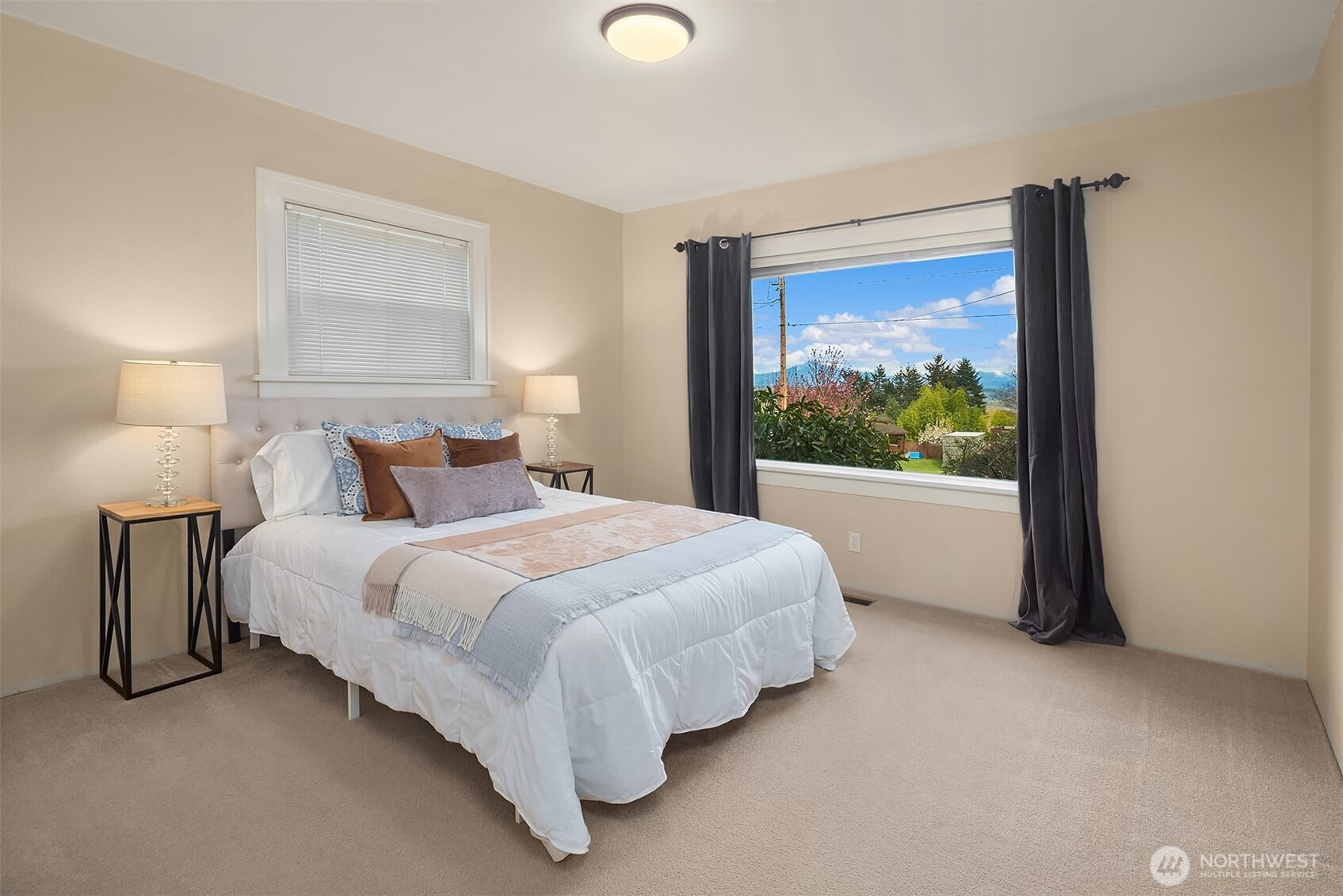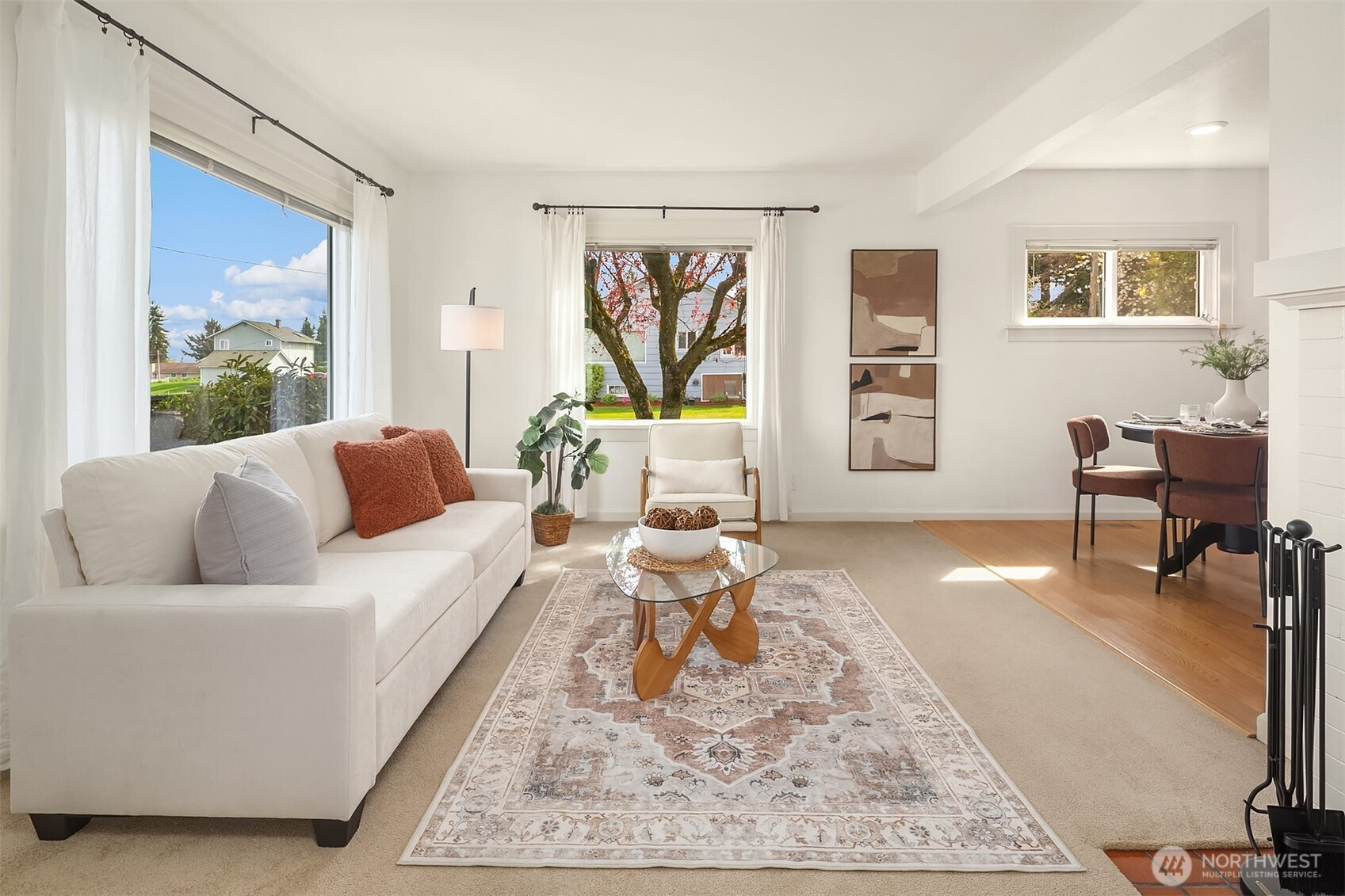 Gorgeous craftsman home, well maintained and ideally located. Corner lot on a quiet street with easy access to I-5, Paine Field, parks + the Interurban Trail just moments away. This well-maintained 4 bed, 1.75 bath home has thoughtful updates throughout and offers views of the Cascades. Remodeled kitchen with quartz counters, white soft-close cabinetry, stainless appliances + large island that opens to main living spaces. Two living rooms including a vaulted space with wood-burning fireplace. Lower level offers additional bedroom, bath + flexible bonus/office space with generous storage. Fenced backyard with patio, spacious 2-car garage + additional secured parking, ideal for RV or extra vehicles. Bonuses include 7 on/off street parking spots, large storage area in basement, and a new W/D.