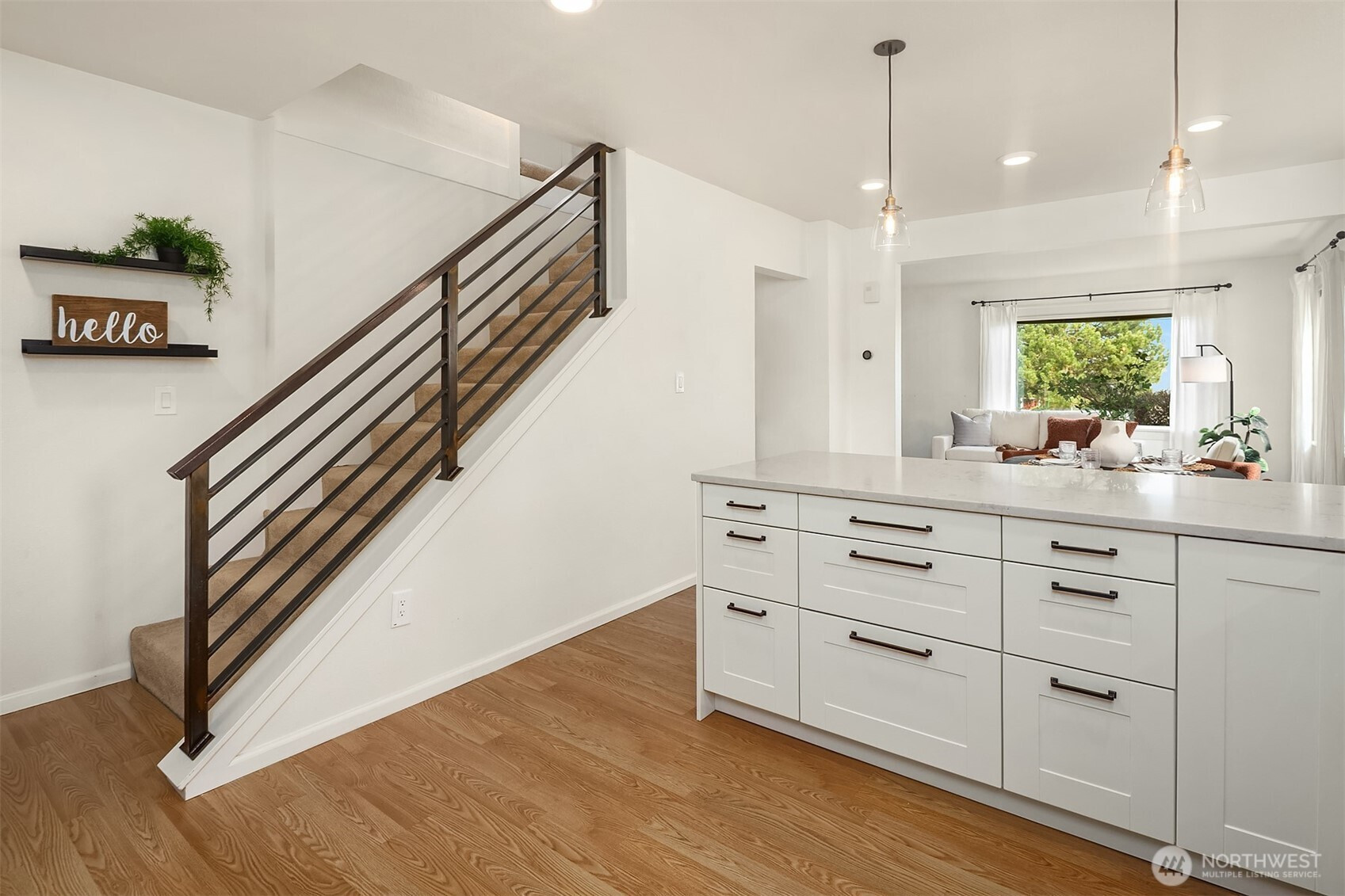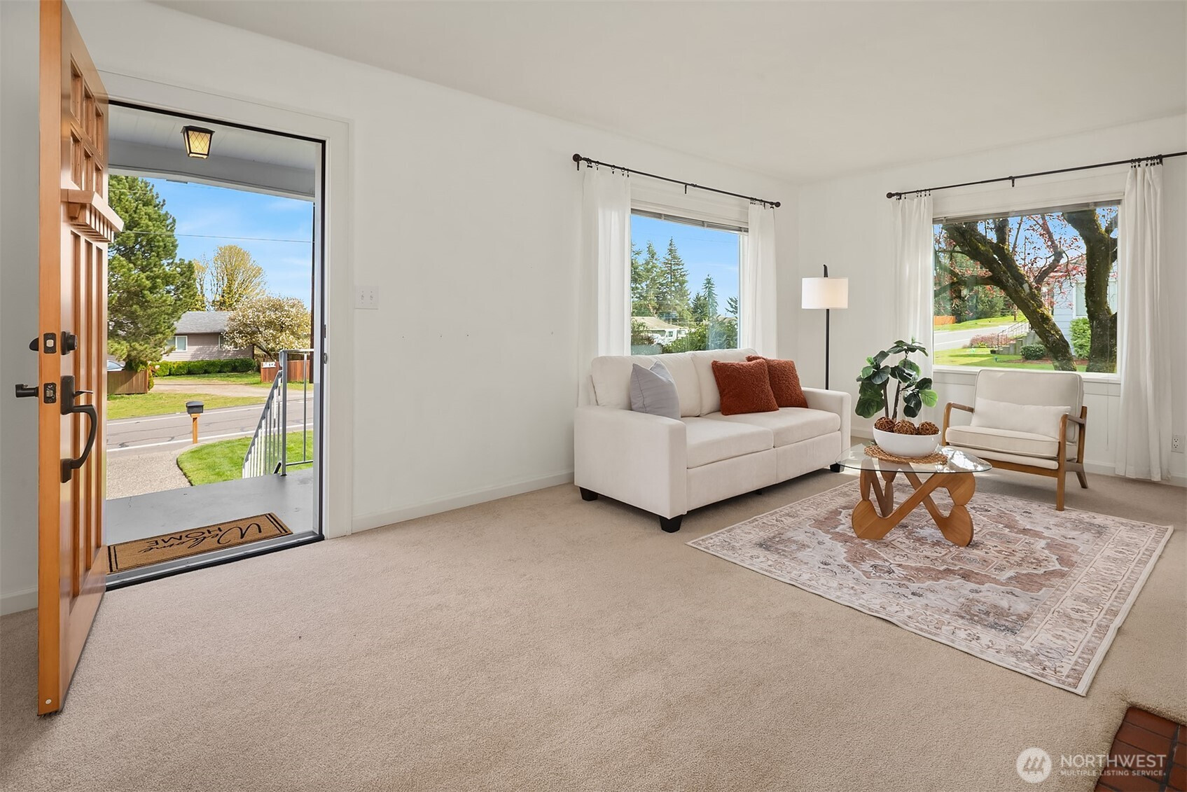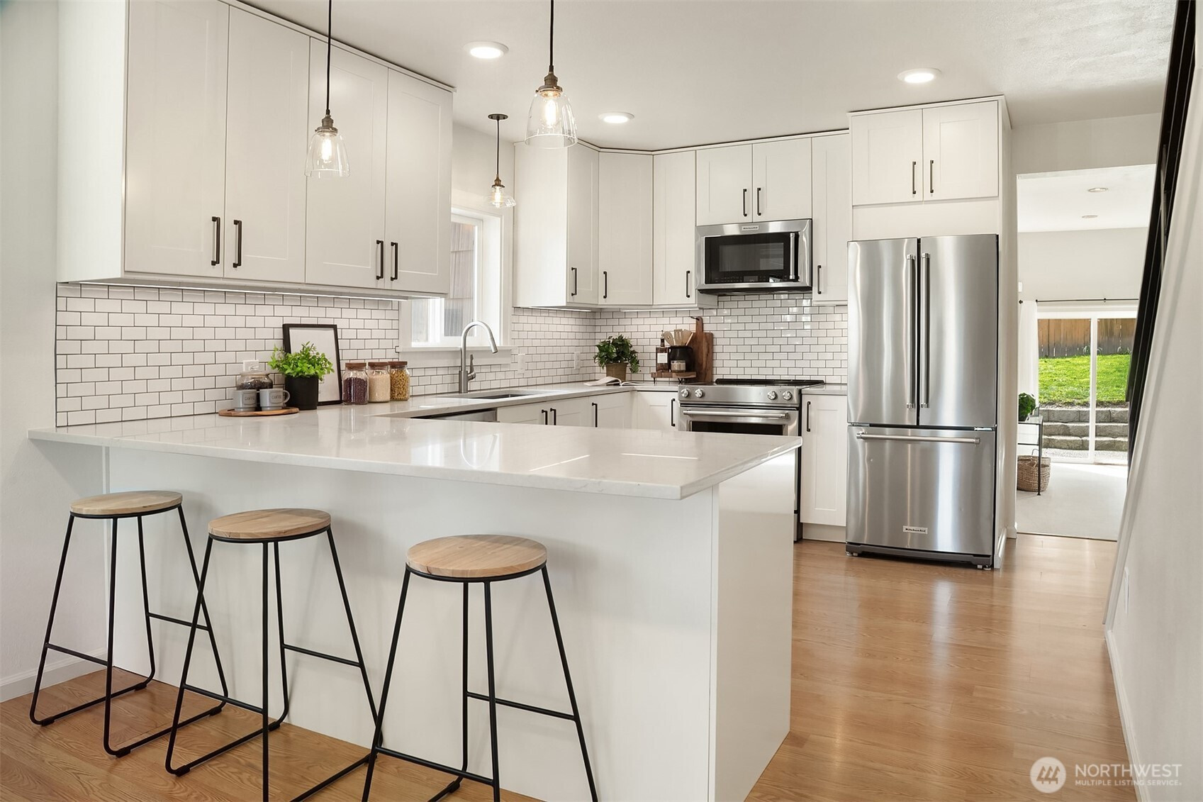 Gorgeous craftsman home, well maintained and ideally located. Corner lot on a quiet street with easy access to I-5, Paine Field, parks + the Interurban Trail just moments away. This well-maintained 4 bed, 1.75 bath home has thoughtful updates throughout and offers views of the Cascades. Remodeled kitchen with quartz counters, white soft-close cabinetry, stainless appliances + large island that opens to main living spaces. Two living rooms including a vaulted space with wood-burning fireplace. Lower level offers additional bedroom, bath + flexible bonus/office space with generous storage. Fenced backyard with patio, spacious 2-car garage + additional secured parking, ideal for RV or extra vehicles. Bonuses include 7 on/off street parking spots, large storage area in basement, and a new W/D.