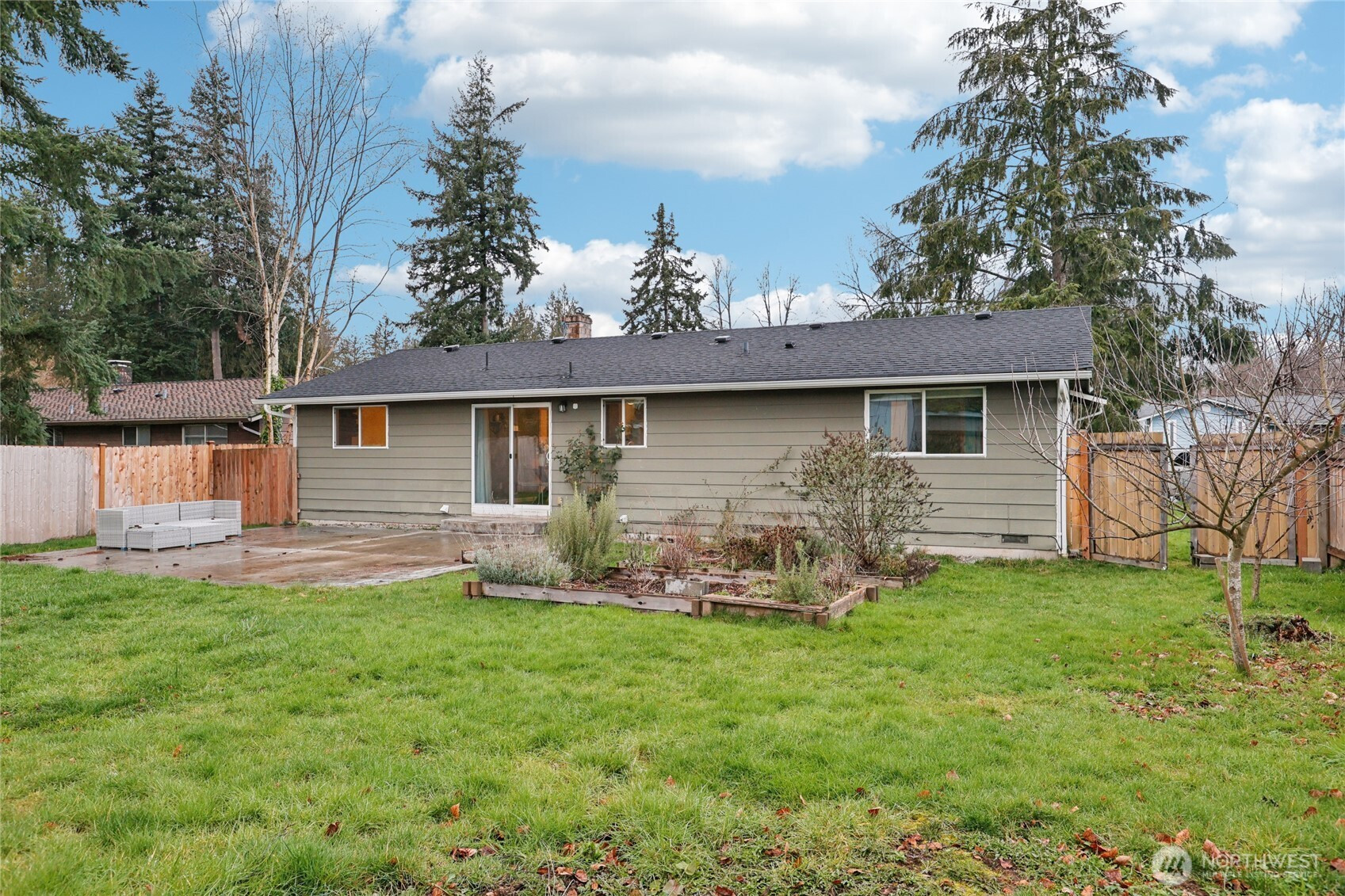 Tucked away at the end of a peaceful cul-de-sac, this inviting home offers a wonderful blend of comfort and convenience just minutes from shopping, bus lines, and easy access to I-5. Sunlight pours through the windows, filling the main living areas with warmth and creating a bright, welcoming atmosphere. A cozy pellet fireplace anchors the living room, providing the perfect place to unwind. The kitchen combines style and function with stainless steel appliances and granite countertops. The former one-car garage has been thoughtfully converted into a spacious rec room with a utility area, offering flexibility for a home office, media room, or hobby space. This versatile space can also be converted back to a garage if desired. Step outside to an oversized, fully fenced yard designed for relaxation and entertaining. Enjoy fruit trees and raised garden beds.