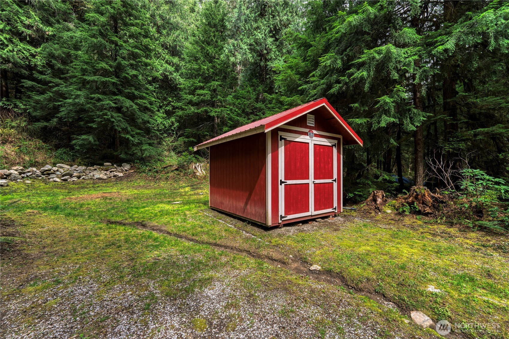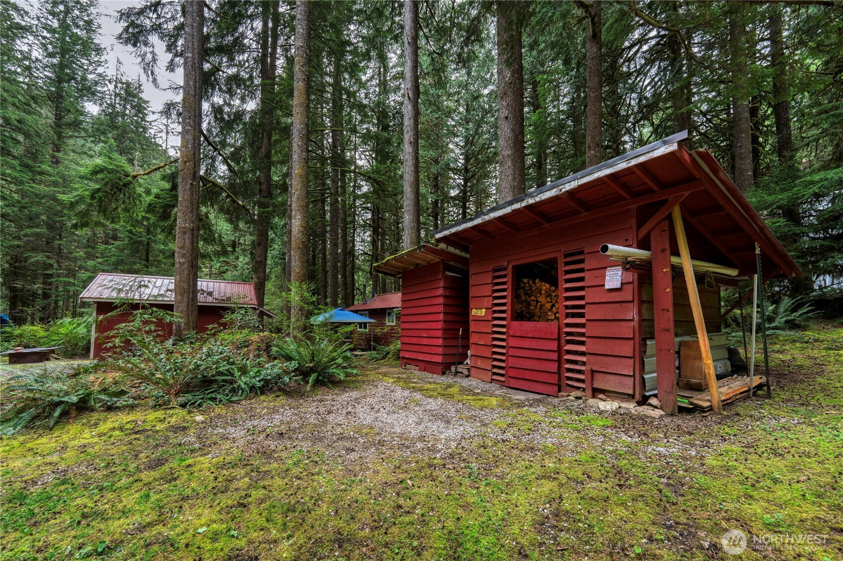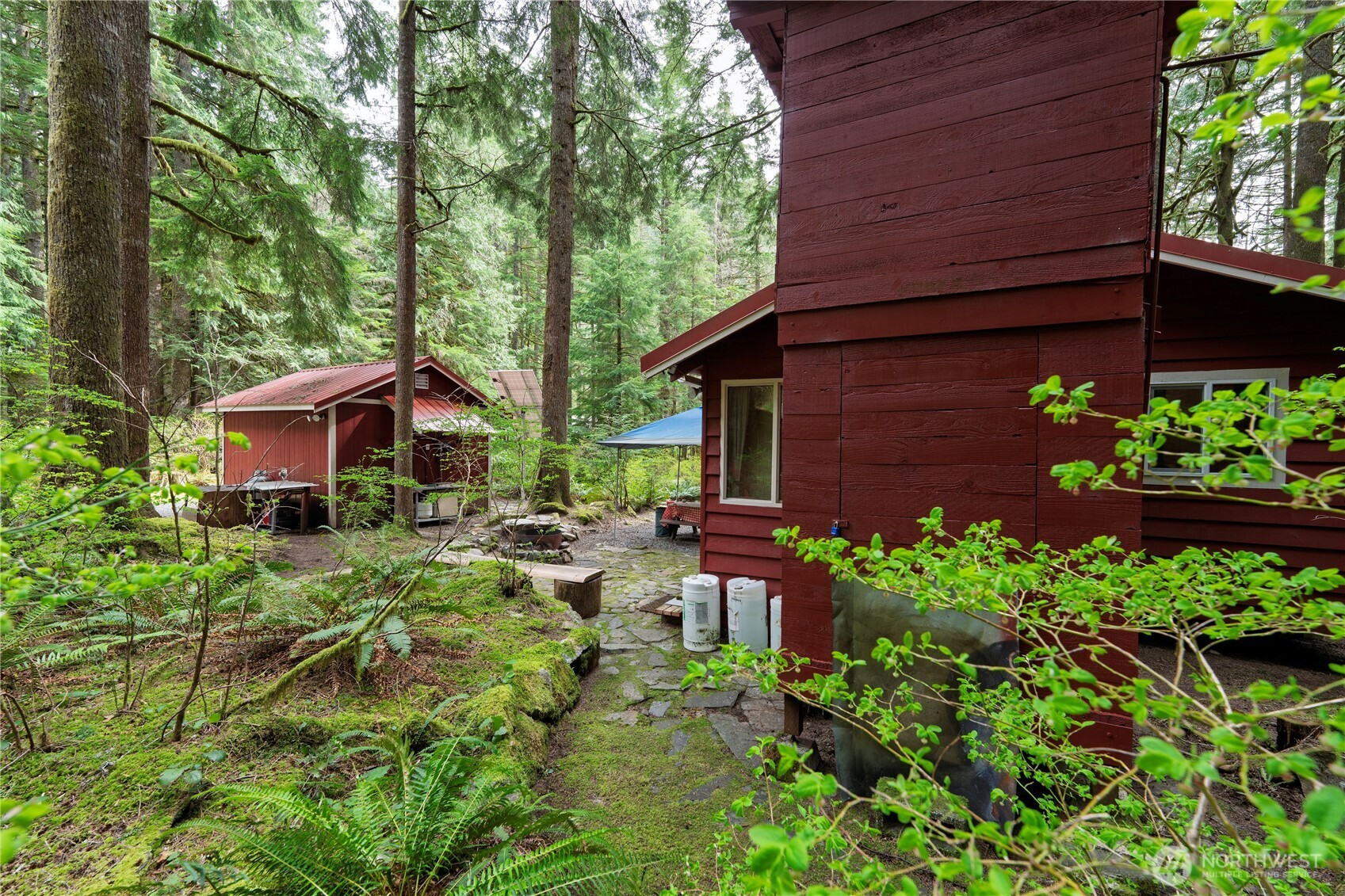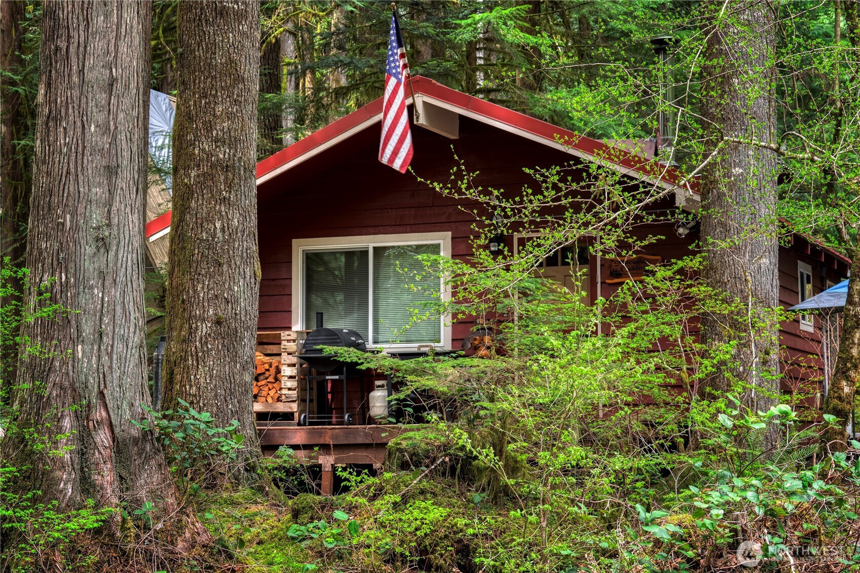 ECO ~ REMOTE MTN CABIN! Escape to a sanctuary where the rhythm of the river dictates the pace of the day. Tucked away in the wild beauty outside of Index, this off grid retreat offers a rare invitation to trade the hum of the City for the song of the N Fork. Designed for true independence of utilities ~ this self-sustaining property boasts its own power, water & waste systems. A lifestyle that functions perfectly ~ smart solar panel, robust multi plus battery system, 500-gal propane tank, lopi wood stove, efficient propane wall heaters & lighting, LED lighting, back-up generator & newer gas appliances offer everything you need without sacrificing comfort. Inside, you'll find all the warmth and comfort you'd expect in a cabin design, with natural wood interior, spacious living room, main floor bdrm, inviting kitchen w/top-of-the-line Amish built fridge, 3/4 bath utilizing a "high output" on-demand hot water heater & loft sleeping accessible by ladder. An attached utility room neatly houses essential systems out of sight. Two NEW outbuildings, one boasts propane heat & venting, providing flexible space for bunkhouse/studio/shop! Property showcases ultra-chill outdoor spaces w/extensive hardscaping & set-up for entertaining {two firepits}, deck, patio + an outdoor kitchen w/sink, stove & fridge. This is more than a cabin, it's a self-reliant lifestyle wrapped in natural beauty delivering quality comfort, capability & the quiet you've been craving. New roof/windows/sheds. 2 lots.