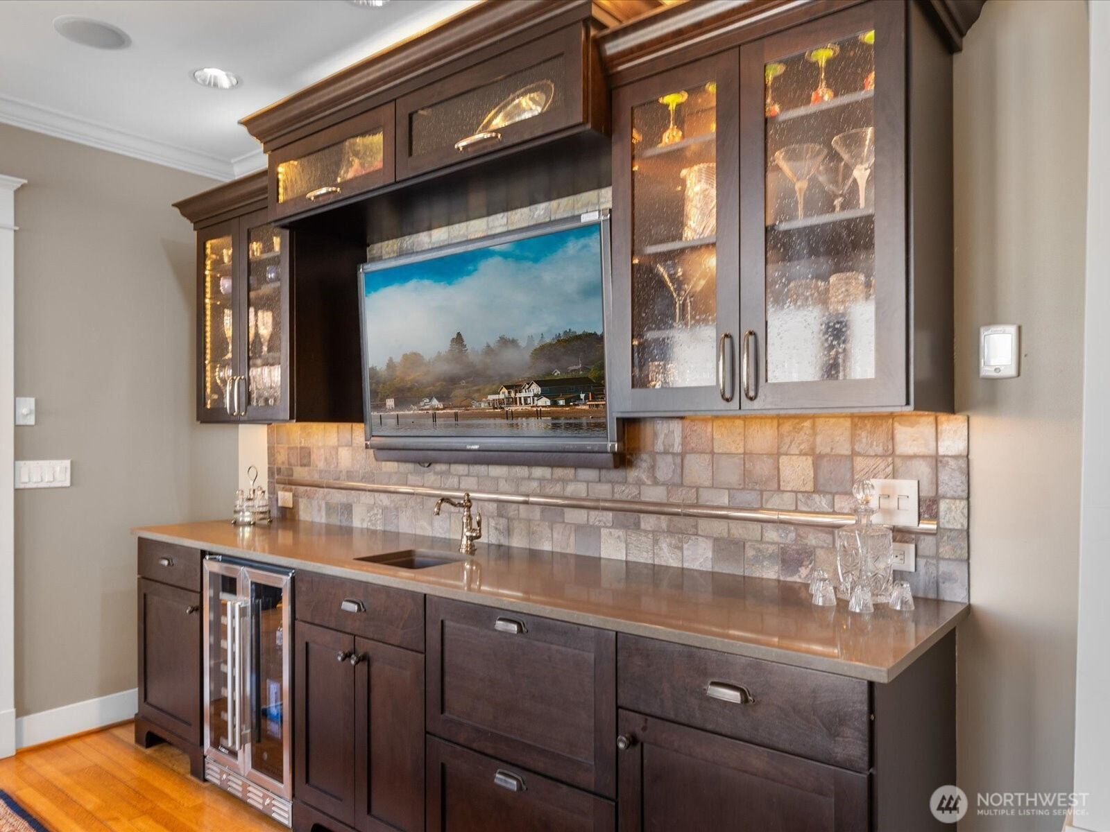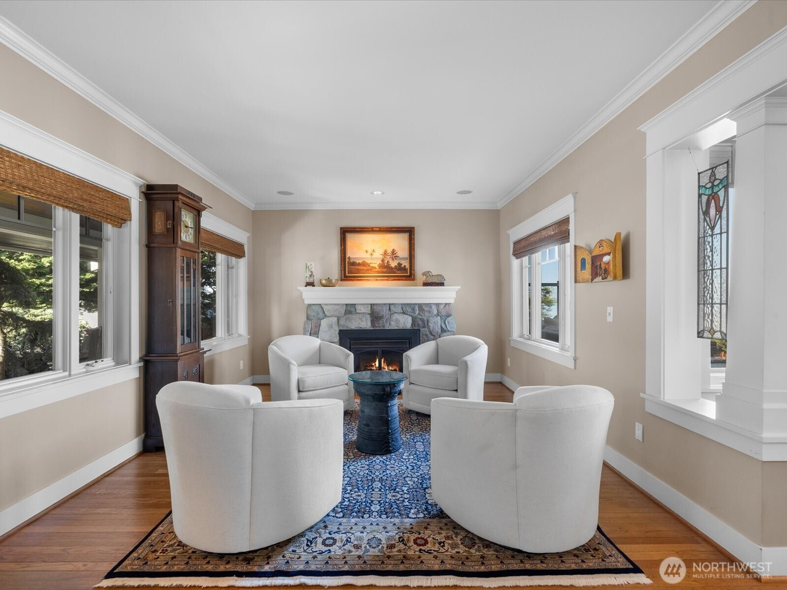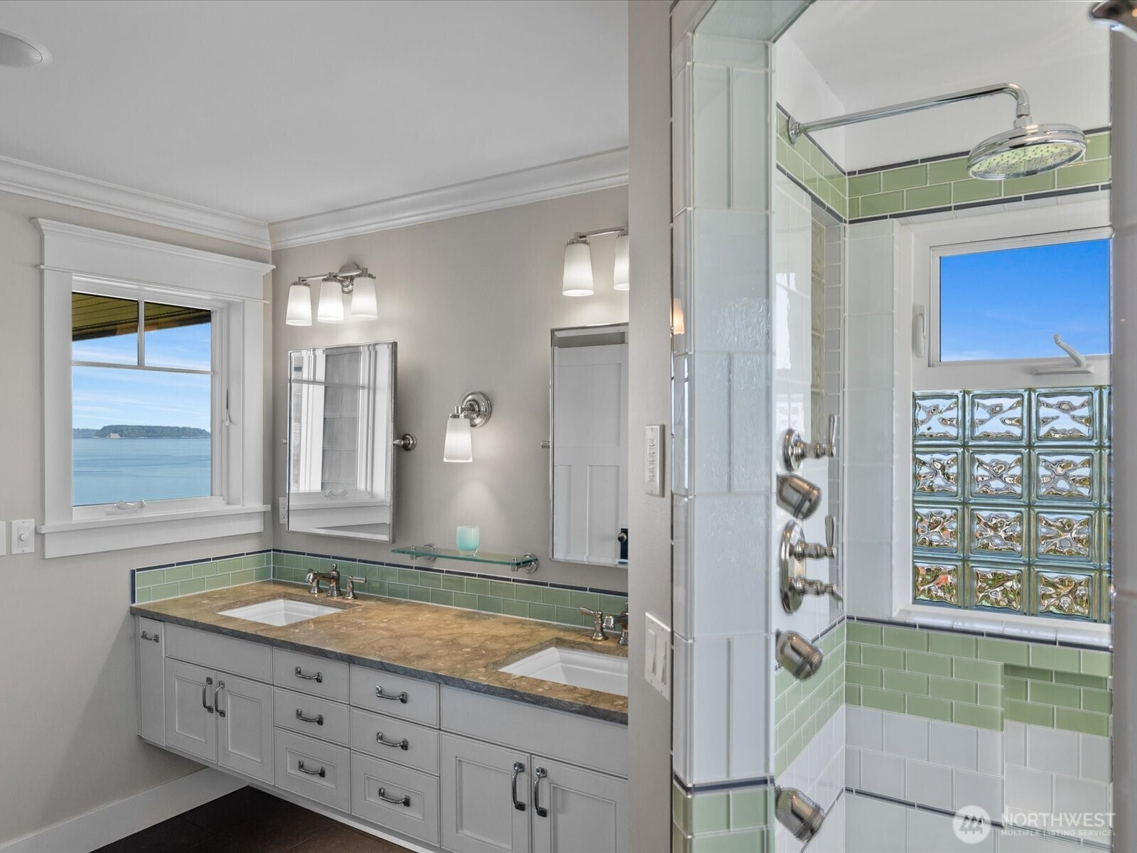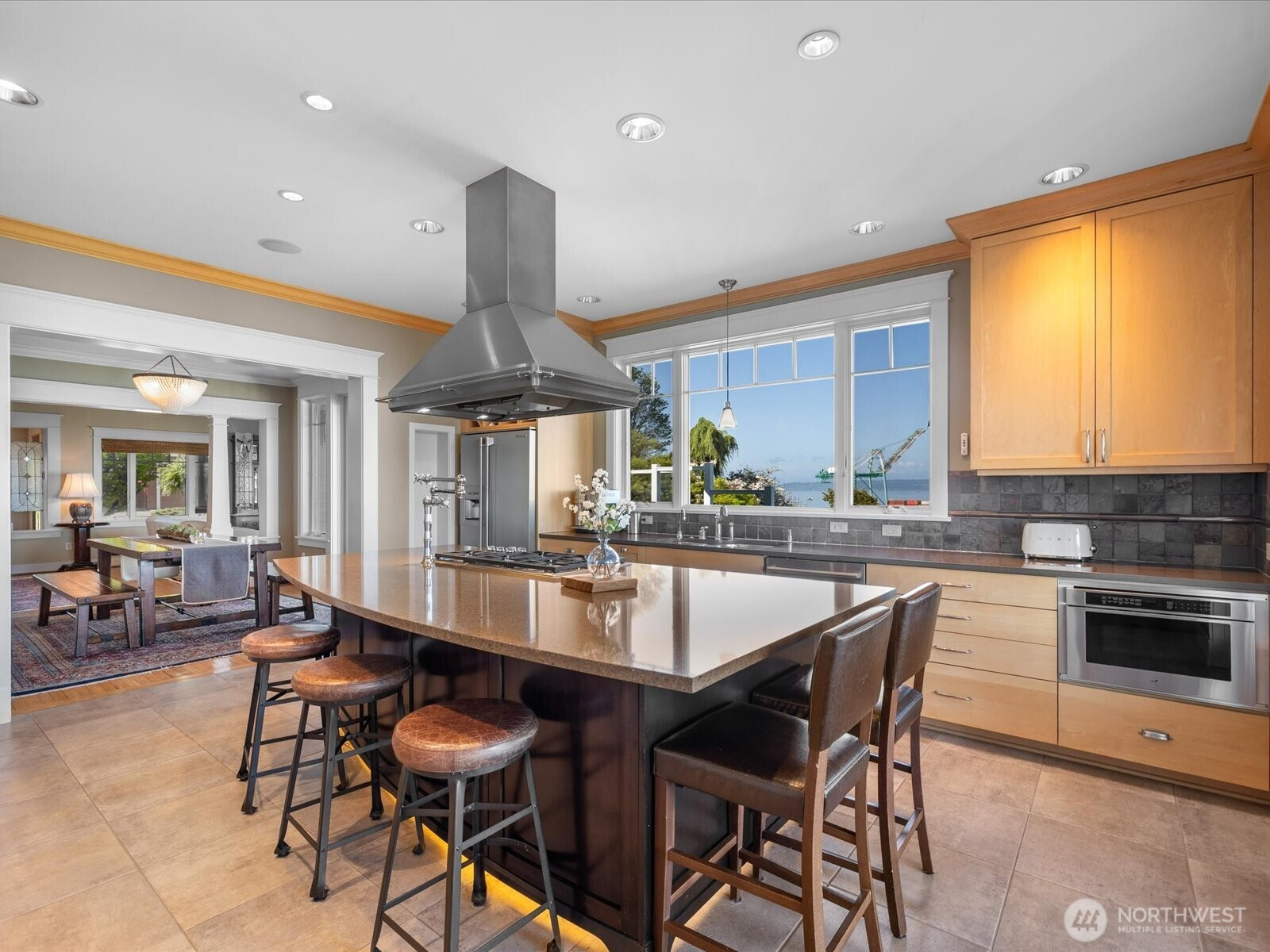 Perched in Everett’s coveted Historic Rucker Hill neighborhood, this gated luxury estate captures sweeping mountain and water views just moments from the marina. Extensively reimagined with a full studs-out remodel, every detail was specially curated to blend timeless elegance with modern comfort. Designed for both refined living and effortless entertaining, the home features a stunning custom chef’s kitchen with premium finishes, an inviting wet bar, rich oak flooring, and seamless indoor-outdoor flow to the expansive glass panel view deck. The spa-inspired primary retreat offers an over-sized shower, soaking tub and beautifully designed custom closets. Enjoy year-round entertaining with a covered and paved outdoor living area complete with gas fireplace and gas BBQ hookup, all surrounded by mature landscaping, fruit trees, and garden bushes. Additional highlights include whole-house audio, generator, steam shower, greenhouse, gated entry, rec room with flex space, energy efficient geothermal heat, whole house vac system and an oversized 3-car garage plus attached carport for exceptional storage and flexibility. A rare opportunity to own a truly exceptional Rucker Hill residence offering privacy, refinement, and breathtaking views in one of Everett’s most sought-after locations.