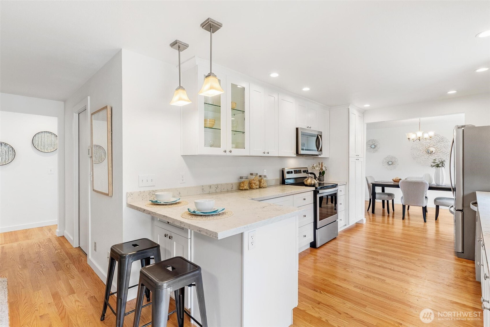 Welcome to this inviting home in the heart of the Edmonds Bowl, where location and lifestyle come together effortlessly. Light-filled living spaces include a welcoming living room with a cozy fireplace, a dedicated dining area, and a spacious family room—ideal for both everyday living and entertaining.The updated kitchen features quartz counters, stainless steel appliances, and flows seamlessly into the main gathering areas, creating a functional and connected layout. Beautiful hardwood floors add warmth and timeless appeal throughout the main living spaces.The primary suite offers a peaceful retreat with a private bath and walk-in closet, while additional bedrooms provide flexibility for guests, work-from-home, or hobbies.Step outside to a fenced backyard with a deck—perfect for relaxing, entertaining, or enjoying outdoor living. A two-car garage adds convenience along with extra storage.Located in one of Edmonds’ most sought-after neighborhoods, just moments from local schools and an easy stroll to downtown Edmonds, with its shops, restaurants, and waterfront parks. A wonderful opportunity to enjoy comfortable living in a vibrant, established community.