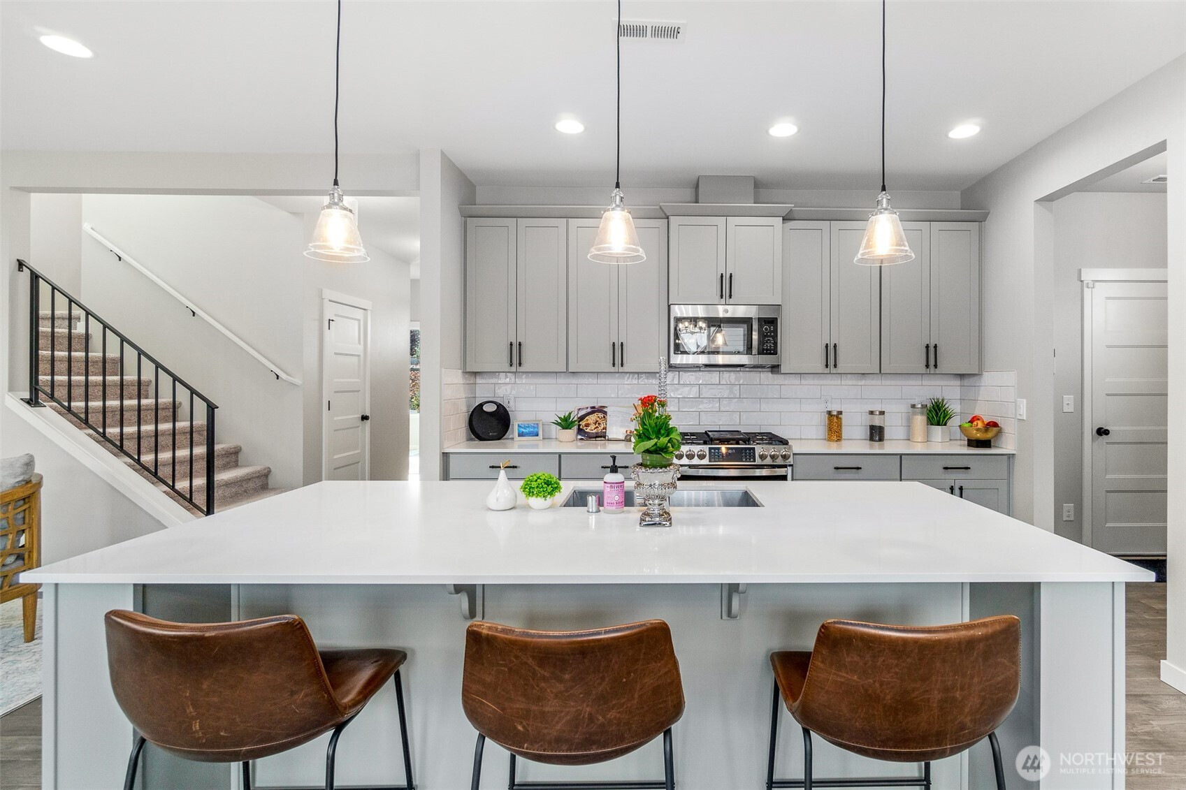 Welcome to this stunning contemporary home nestled in a desirable Marysville neighborhood called Bellewood Ridge. This very well maintained house feels like new and has a nice flow on the main floor with 9 ft. ceilings. It's bathed in natural light & offers many extra special features. Two private offices one looking out to the street with southern view & a 2nd office pocket by the kitchen for study & crafting. A walk in pantry, bonus room upstairs, spacious 3 car garage one with a bump out, air conditioning, elaborate security system, Bluetooth Leviton lighting & luxurious honeycomb blinds throughout. Fenced backyard with a covered lit patio. Walking distance to the Olympic View Park & Harbor View Park. Only 8 minutes from Ebey Waterfront.
