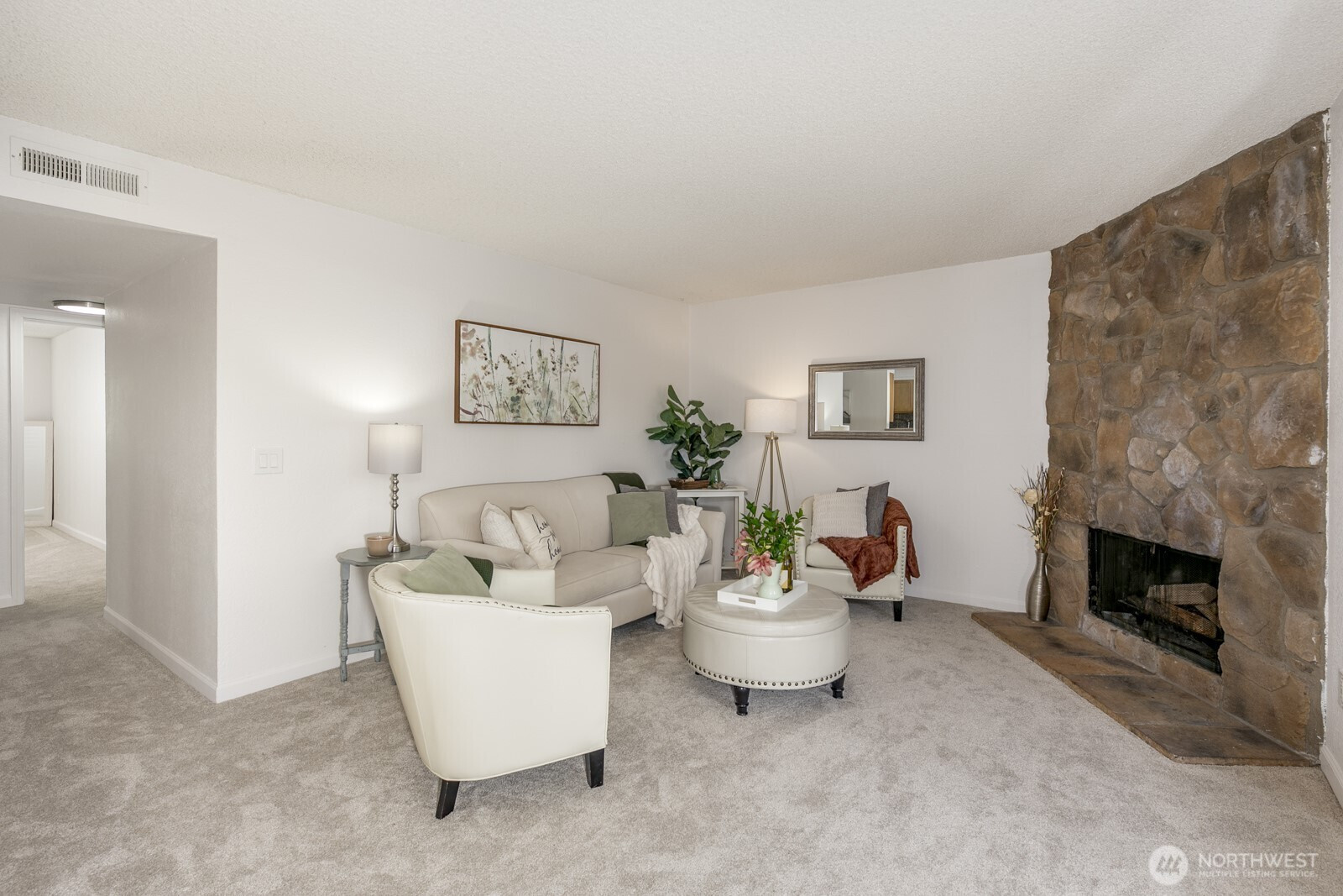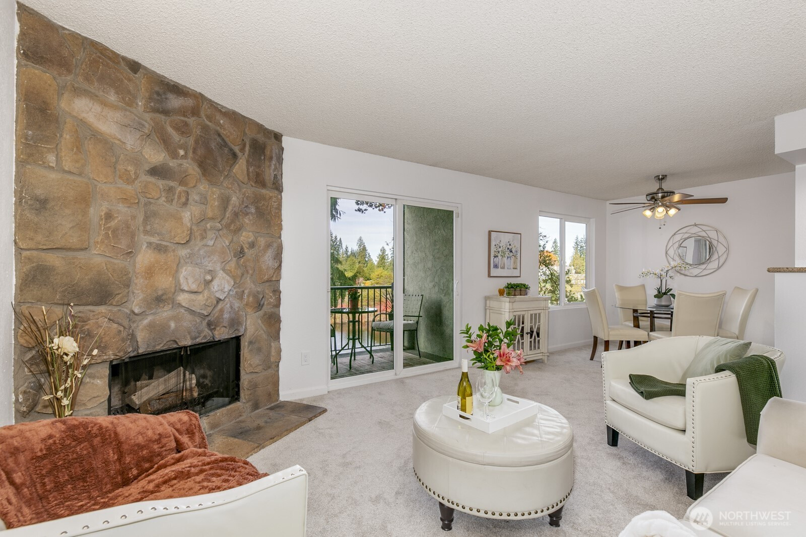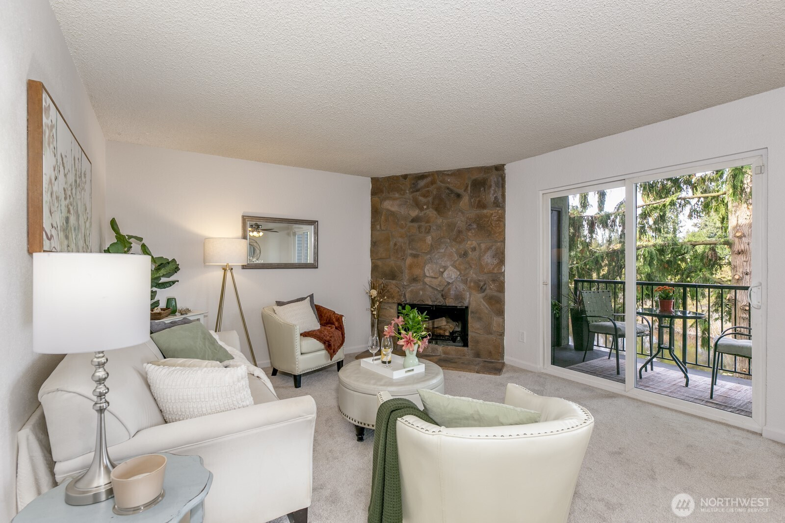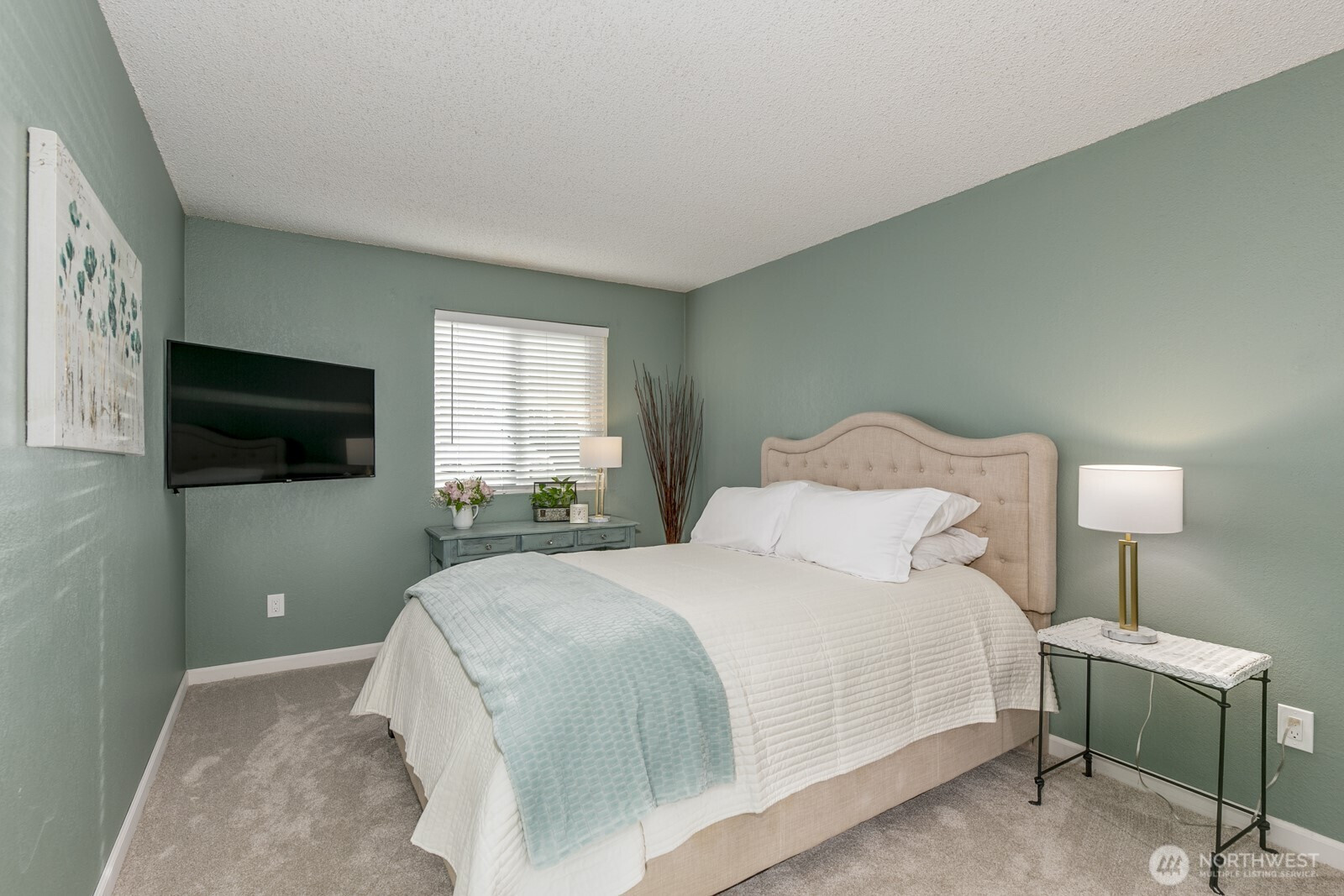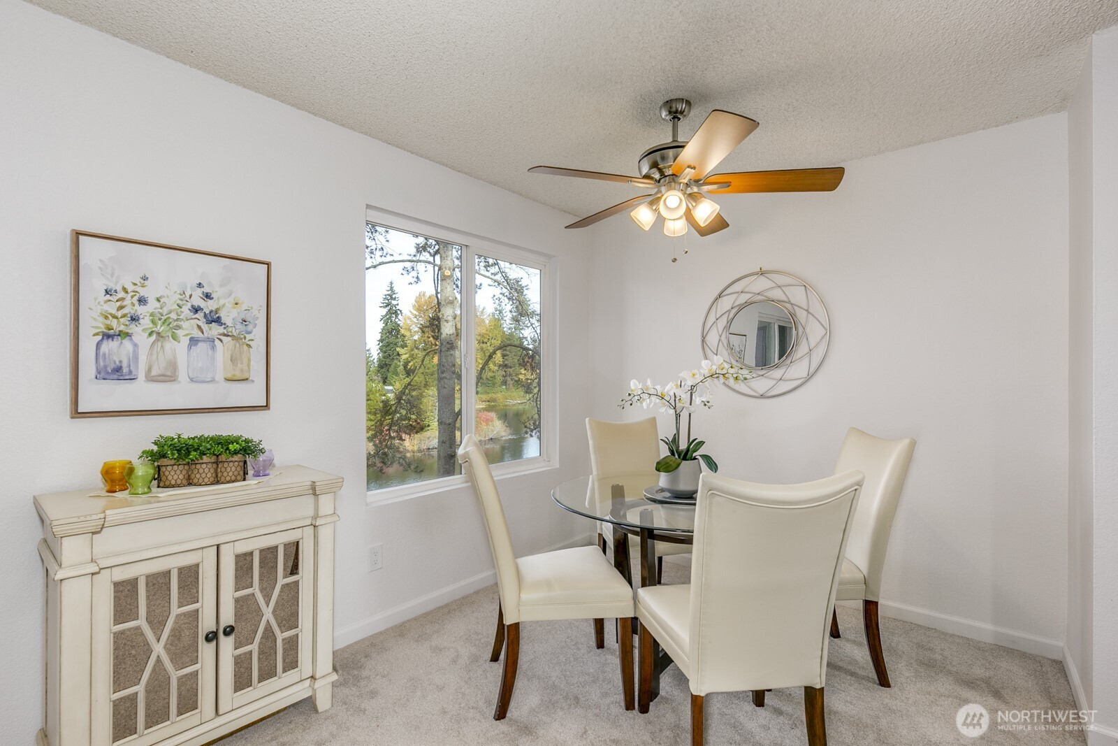 Fall in love w/the lake views from this updated & peaceful condo. Enjoy watching waterfowl & wildlife from the windows or even better on your private balcony overlooking Beverly Lake. Inside is new carpet, paint & lighting; updated kitchen & bathroom. Kitchen has ample space, SS appliances & open to dinning/living rms. Primary w/walk-in closet plus second large bedrm. Full bath & washer/dryer complete the space. NO stairs, just a single step for entry from the level parking lot. 2 parking spaces & plenty of visitor parking. HOA dues are low & no assessments. Well run HOA w/solid reserves & well maintained buildings. Community areas include beach front & lake access, go paddling or fishing! EZ commute to Boeing or freeway. Walk to Starbucks!