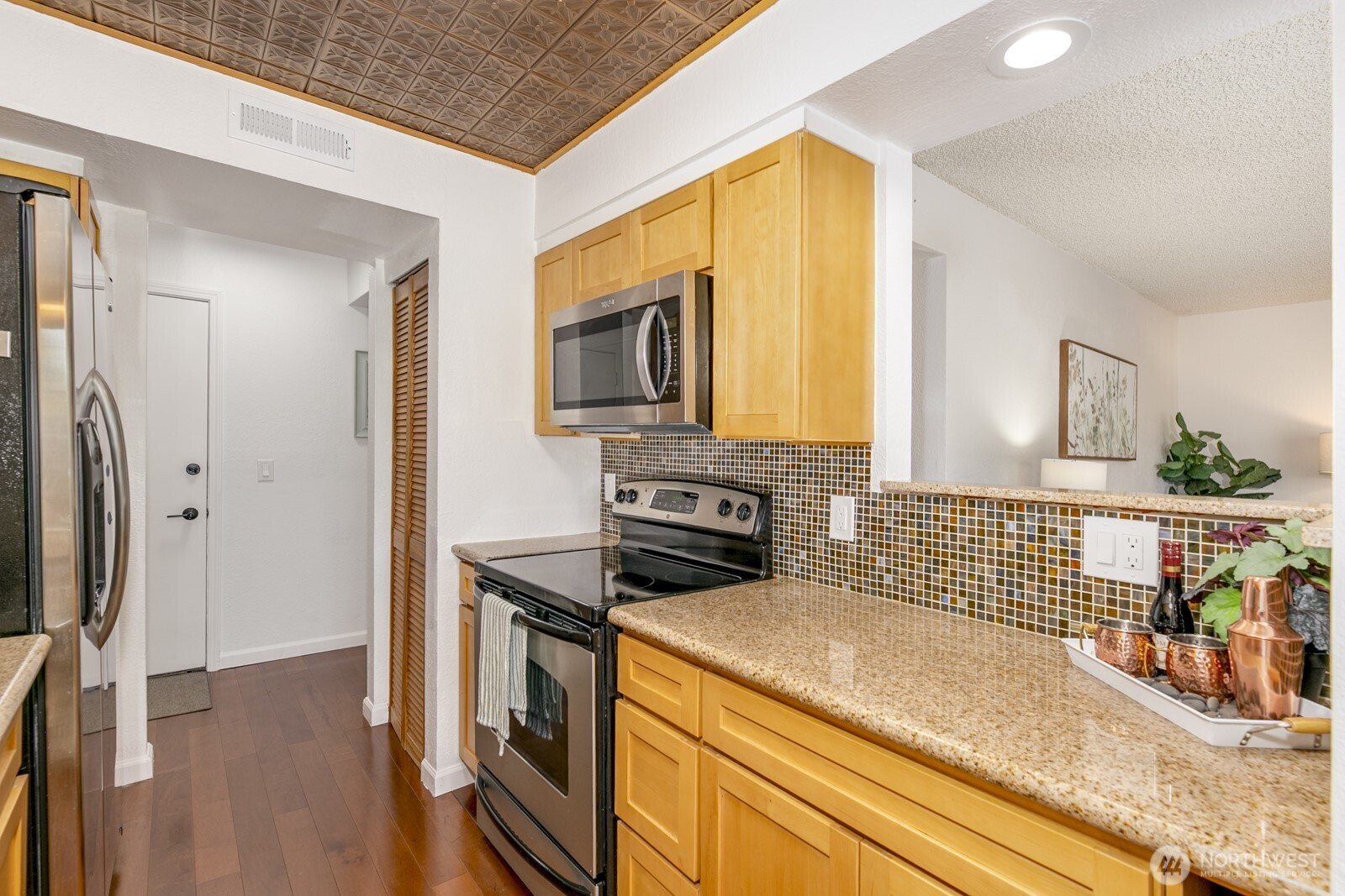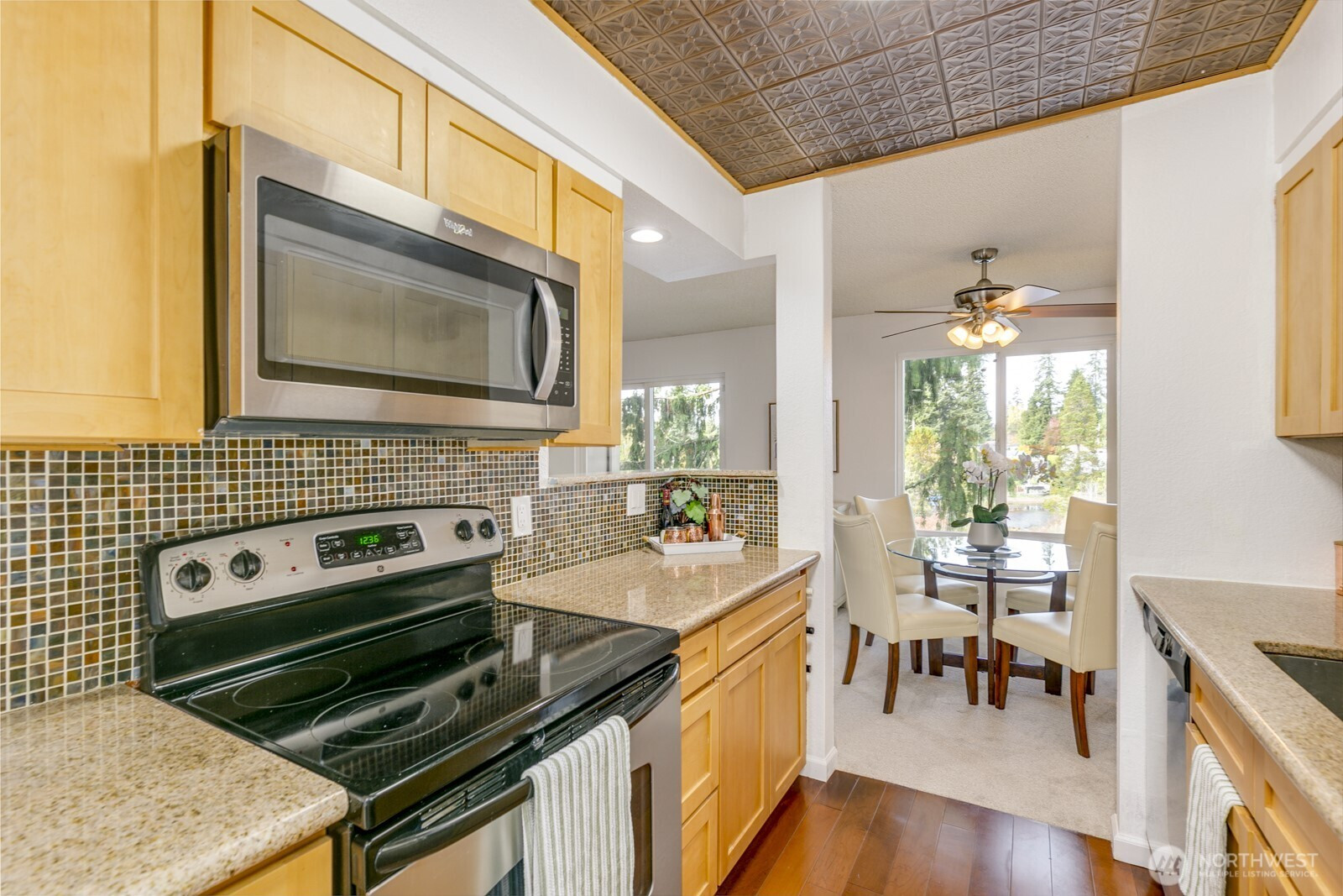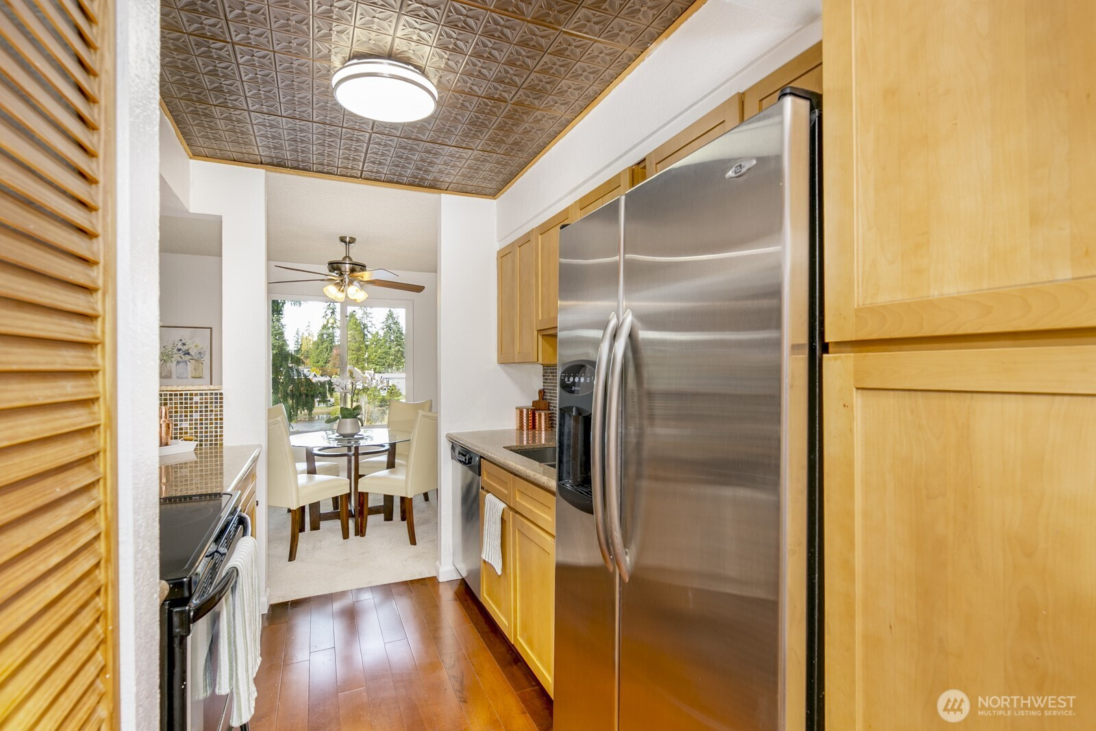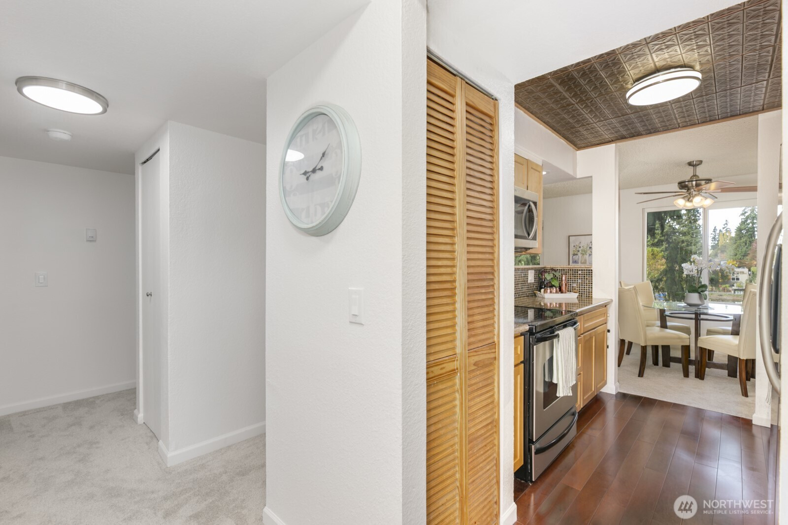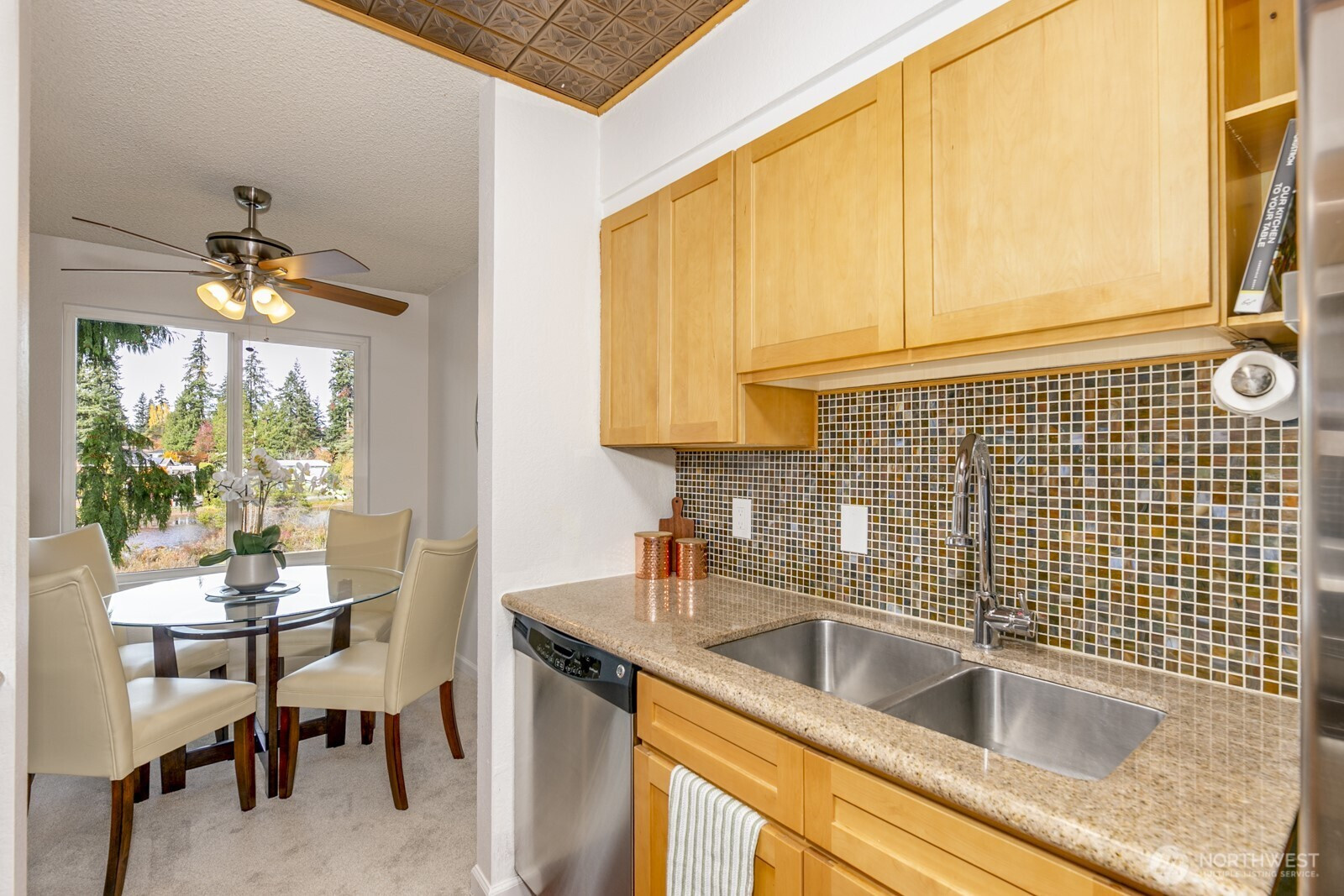 Fall in love w/the lake views from this updated & peaceful condo. Enjoy watching waterfowl & wildlife from the windows or even better on your private balcony overlooking Beverly Lake. Inside is new carpet, paint & lighting; updated kitchen & bathroom. Kitchen has ample space, SS appliances & open to dinning/living rms. Primary w/walk-in closet plus second large bedrm. Full bath & washer/dryer complete the space. NO stairs, just a single step for entry from the level parking lot. 2 parking spaces & plenty of visitor parking. HOA dues are low & no assessments. Well run HOA w/solid reserves & well maintained buildings. Community areas include beach front & lake access, go paddling or fishing! EZ commute to Boeing or freeway. Walk to Starbucks!