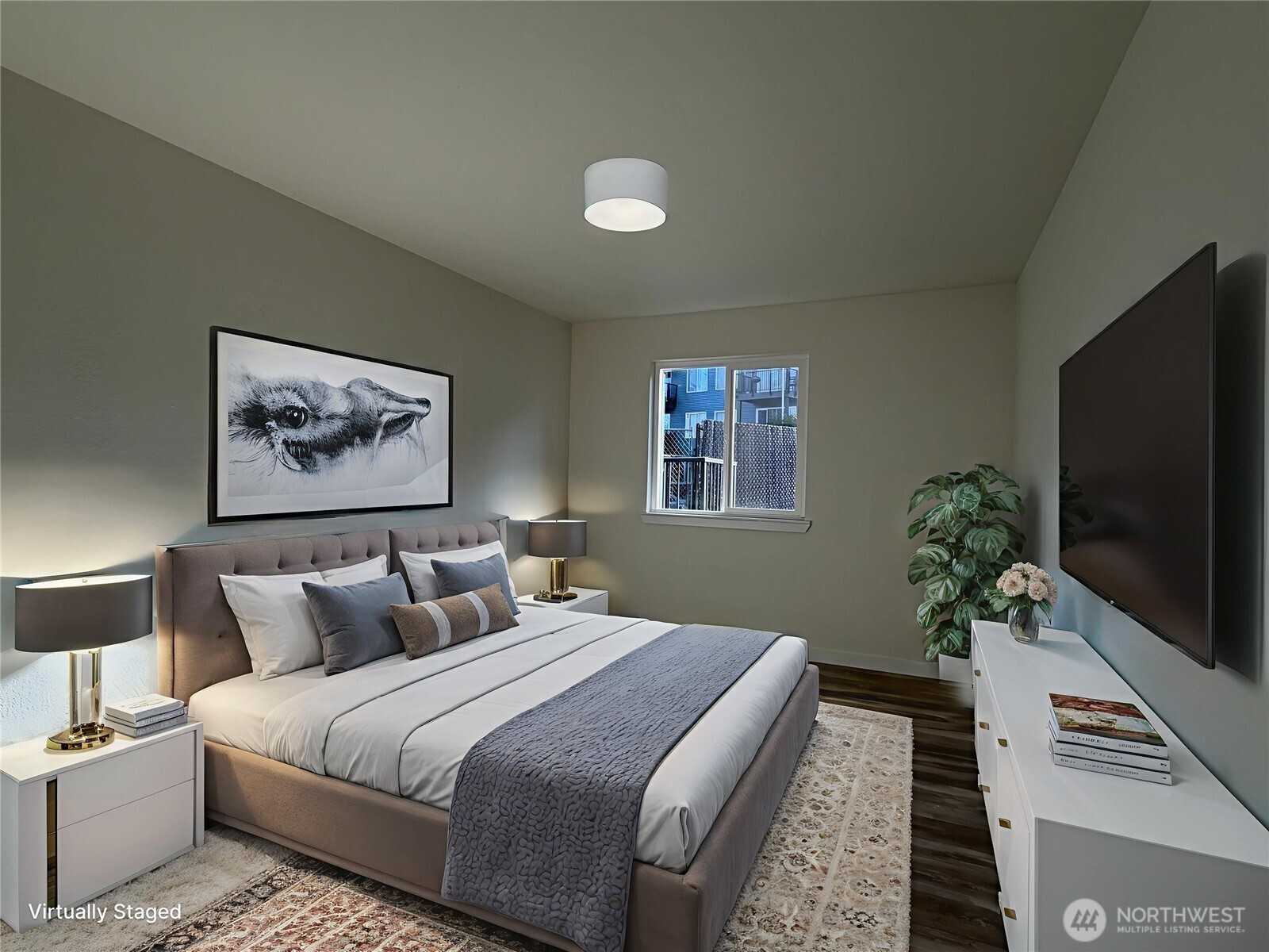 Enjoy an unobstructed view of your own quiet lake paradise. Take in the view from your comfortable living room with wood burning fireplace or your private deck. This well appointed, affordable home features two storage units, assigned parking, two bedrooms and one bathroom with full size walk-in shower and laundry in unit. Home has been freshly painted, newer wide plank flooring thru-out, as well as an updated bathroom & kitchen. Home is turn key and ready for move-in. Amenities include a dog run, picnic area and community deck. Great HOA with 92% reserve funding. With proximity to Boeing, Paine Field Airport, I-5, downtown, and the Everett waterfront, this home is in a prime location.