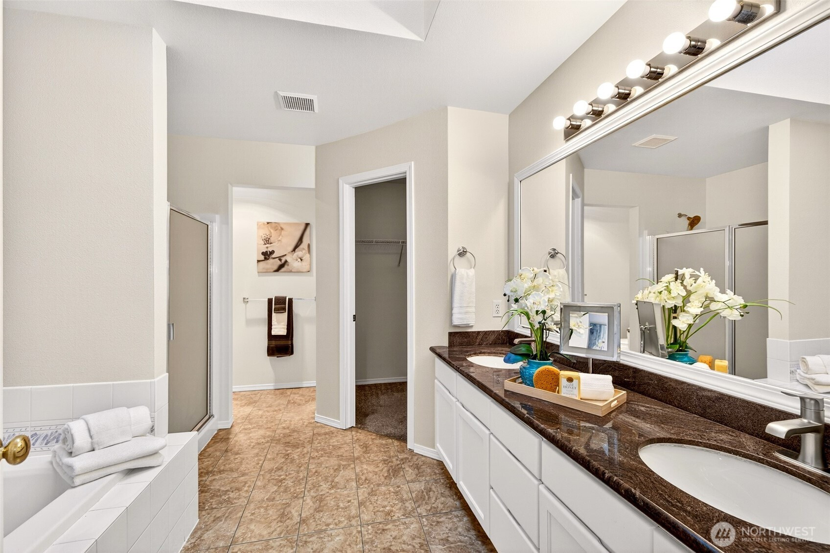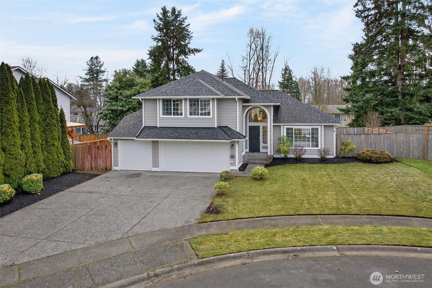 Tucked on a quiet cul de sac in North Bothell, this 3 bedroom, 2.5 bath home offers 1,987 square feet of comfortable living on a 6,098 square foot lot in Northshore School District. A 2022 roof with a 10 year warranty and air conditioning add confidence and year round comfort. Step inside to vaulted ceilings and a bright living room that flows to a dedicated dining space. The kitchen is the heart of the home with stone counters, a generous island, stainless appliances, abundant cabinetry, and a skylight for all day natural light. The adjacent dining nook opens to the deck for easy indoor to outdoor meals. Downstairs, a spacious bonus room with a fireplace and slider to the covered patio creates a flexible second living area for movie nights, hobbies, or work from home. Upstairs, the primary suite features built in storage, a walk in closet, dual vanity, soaking tub, and separate shower, plus two additional bedrooms and a full hall bath. Enjoy a fenced yard with raised garden beds, patio seating space, and low maintenance lawn. Convenient to shopping, dining, and key commute routes.