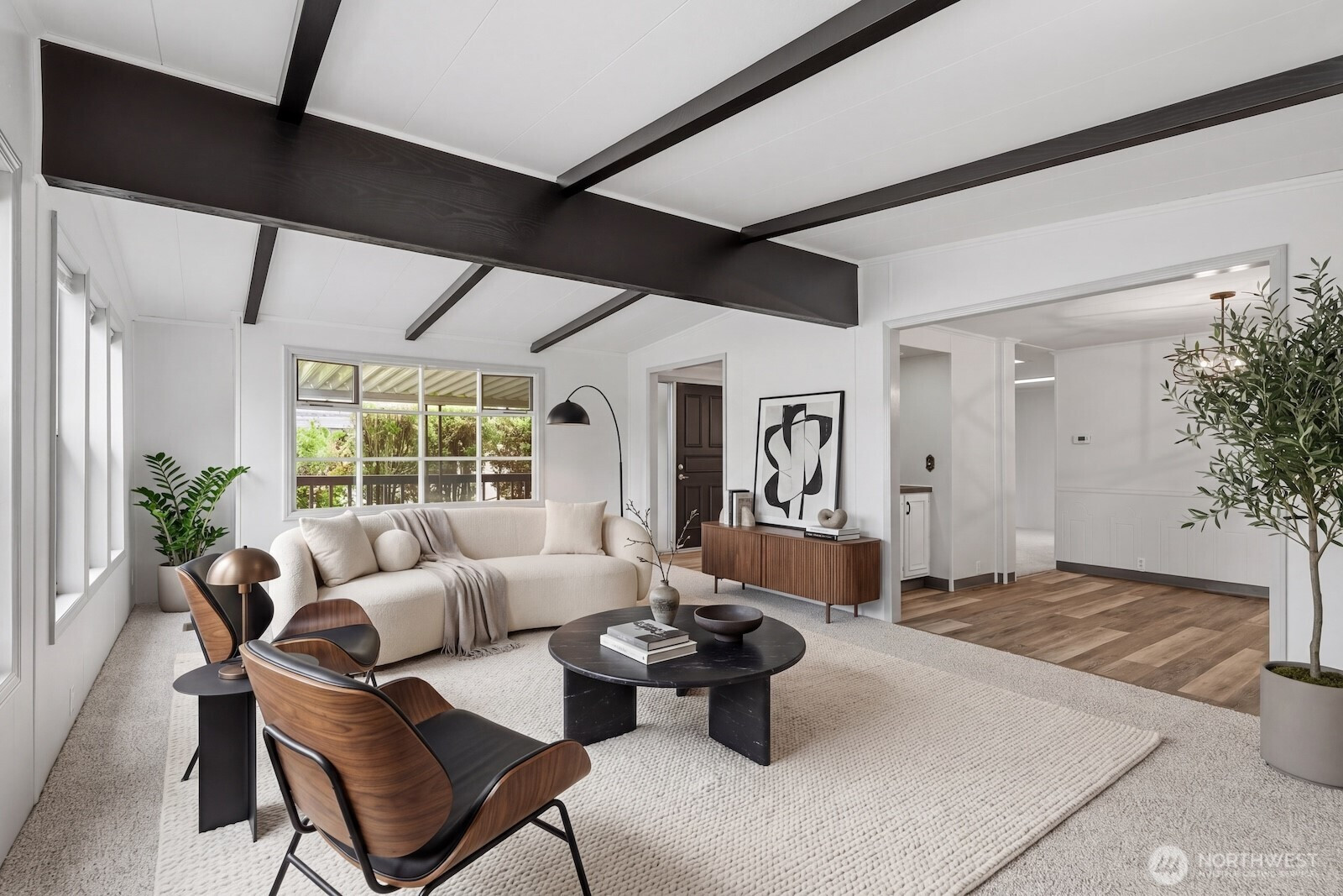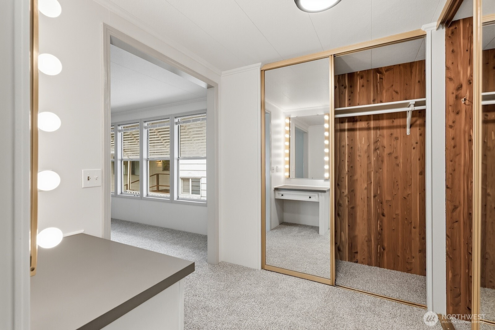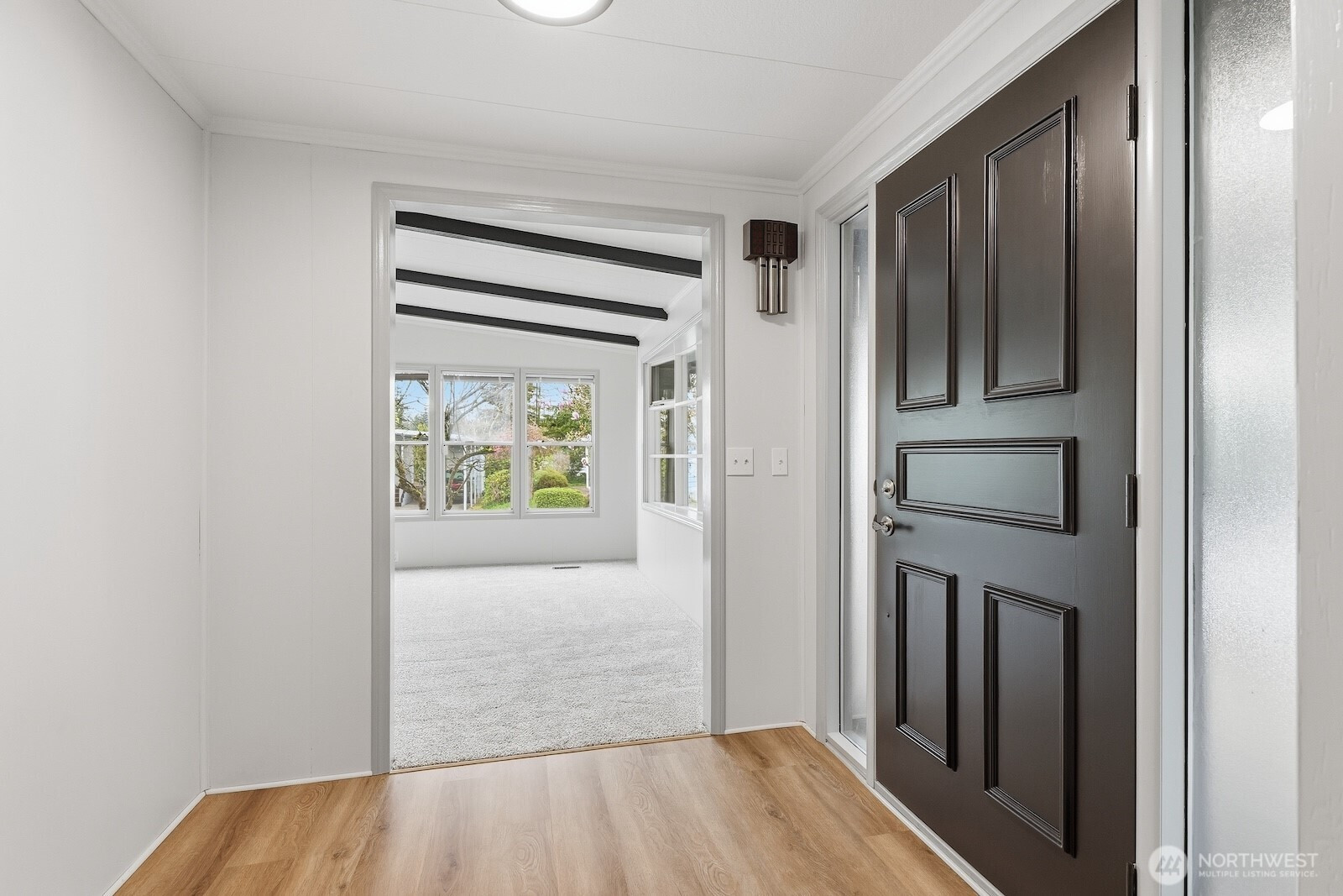 Better than new and truly one-of-a-kind, this beautifully updated triple-wide home offers spacious, refined living in a desirable 55+ community. Featuring 2 oversized bedrooms and 1.75 baths, including a luxurious primary suite with a large en suite and oversized walk-in shower. Designed for both comfort and entertaining, the home boasts a large family room with a cozy wood-burning fireplace, formal dining area with a wet bar, and an expansive living room filled with natural light. The open kitchen offers abundant counter space and functionality for everyday living. Extensive updates include all-new LVP flooring and carpet, fresh interior paint throughout (walls, ceilings, trim, doors, and cabinets), updated exterior trim and doors, plus new lighting, blinds, and hardware throughout. Professionally cleaned and truly move-in ready. The roof is approximately 5 years old for added peace of mind. Enjoy outdoor living with a huge covered deck, ample storage, and covered parking for two vehicles. Community amenities include a clubhouse, pool, dog park, and RV parking. Conveniently located near a lake, walking trails, parks, shopping, dining, public transit, and Costco. Financing available—don’t miss this exceptional opportunity!