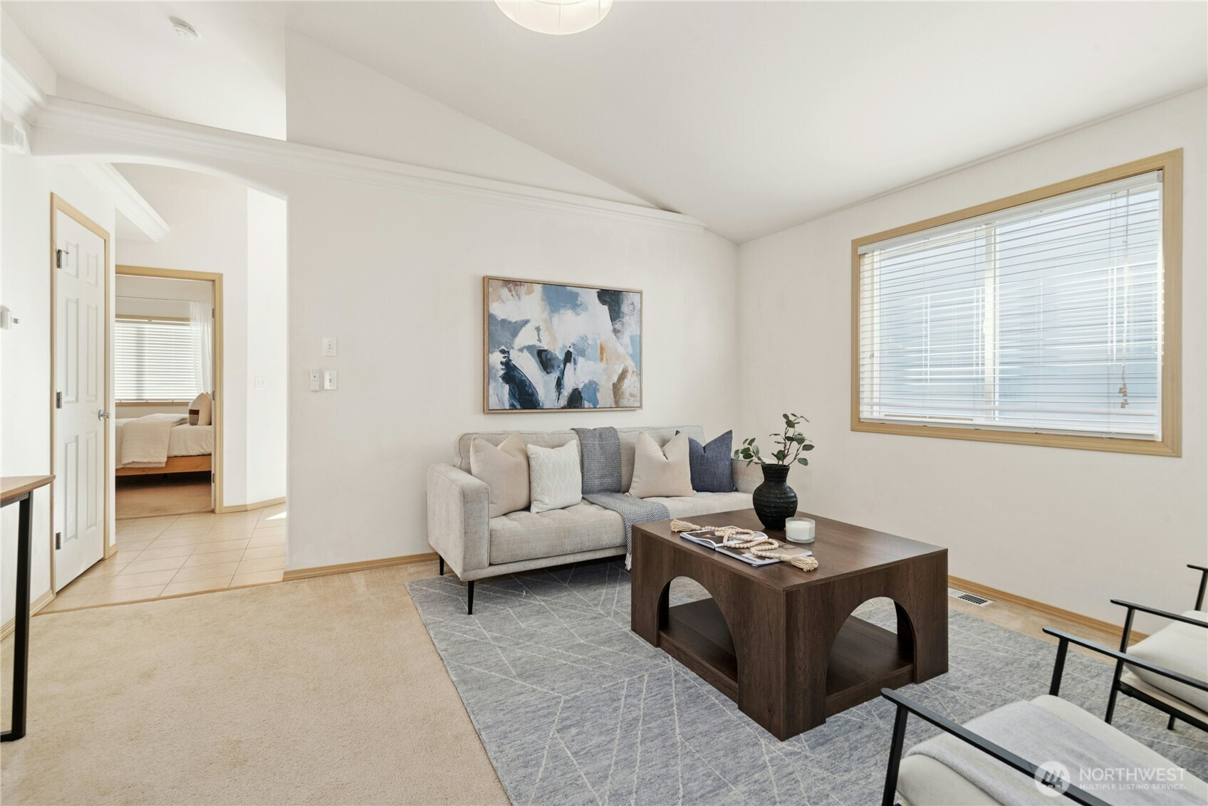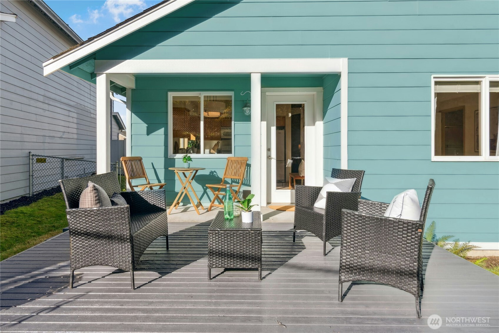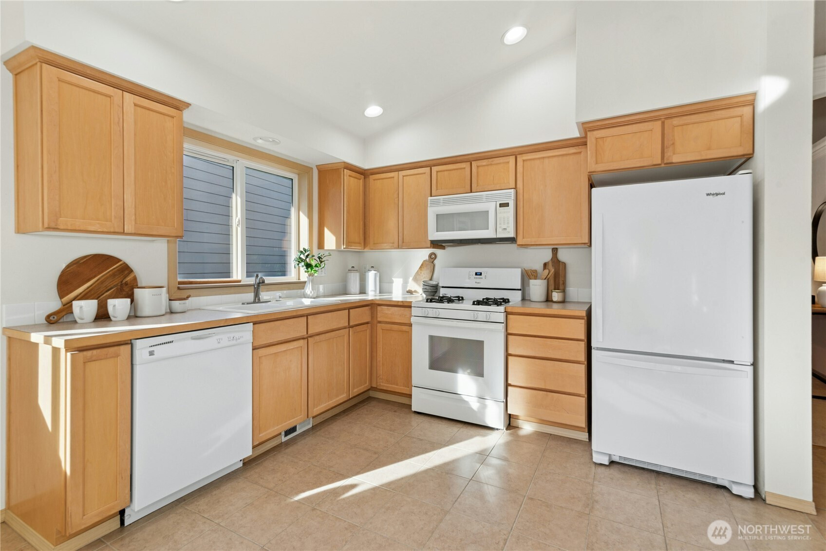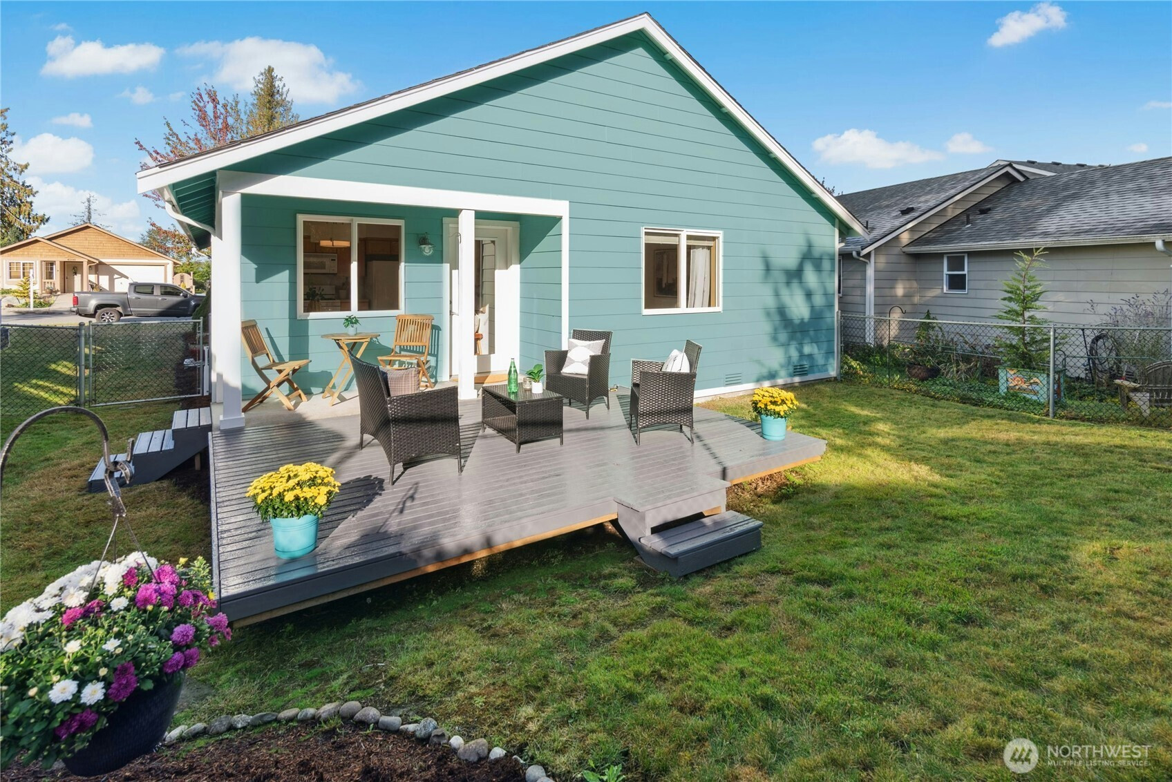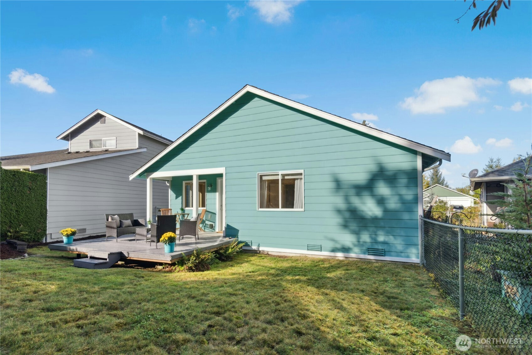 Charming rambler in the welcoming Birch Creek 55+ community in Marysville. Enjoy comfortable single-level living in this one-bedroom home with flexible bonus room. Vaulted ceilings throughout the living areas give a bright, airy feel. Spacious kitchen/dining area opens to a private deck, perfect for morning coffee or evening relaxation. Entry foyer includes a coat closet & half bath. Large primary suite has walk-in closet, safe in closet, & full ensuite bath with Jacuzzi tub. Full-size washer & dryer in laundry room with garage access and storage shelving. Fully fenced backyard with gate. Well-maintained, low-maintenance home in a quiet, friendly community with walking trails and clubhouse — move-in ready! Low HOA dues and pre-inspected.