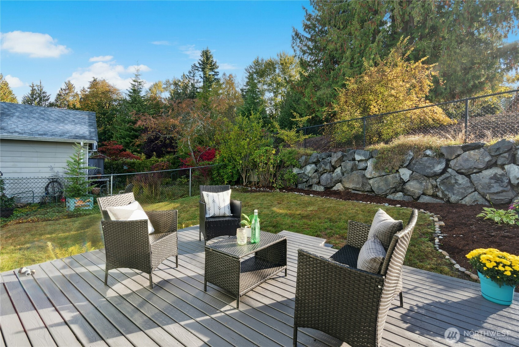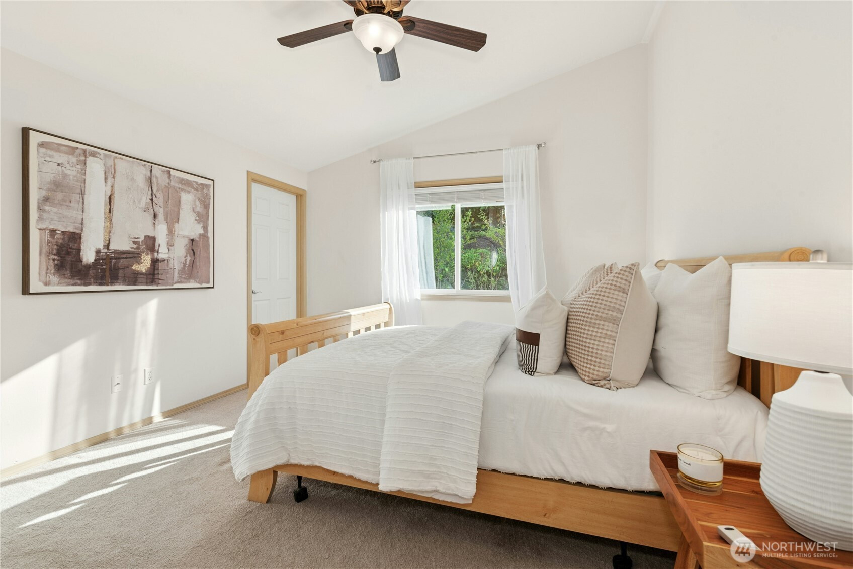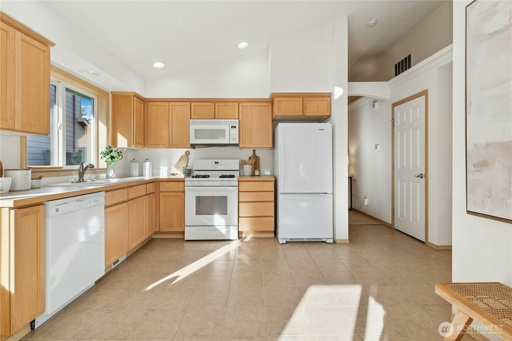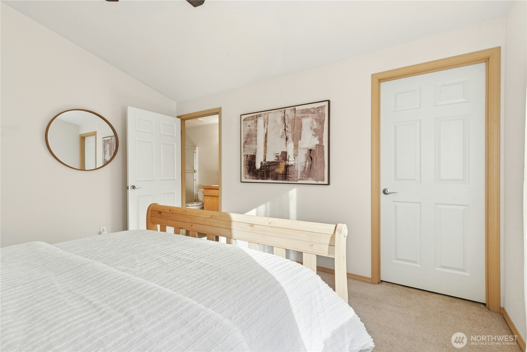 Charming rambler in the welcoming Birch Creek 55+ community in Marysville. Enjoy comfortable single-level living in this one-bedroom home with flexible bonus room. Vaulted ceilings throughout the living areas give a bright, airy feel. Spacious kitchen/dining area opens to a private deck, perfect for morning coffee or evening relaxation. Entry foyer includes a coat closet & half bath. Large primary suite has walk-in closet, safe in closet, & full ensuite bath with Jacuzzi tub. Full-size washer & dryer in laundry room with garage access and storage shelving. Fully fenced backyard with gate. Well-maintained, low-maintenance home in a quiet, friendly community with walking trails and clubhouse — move-in ready! Low HOA dues and pre-inspected.
