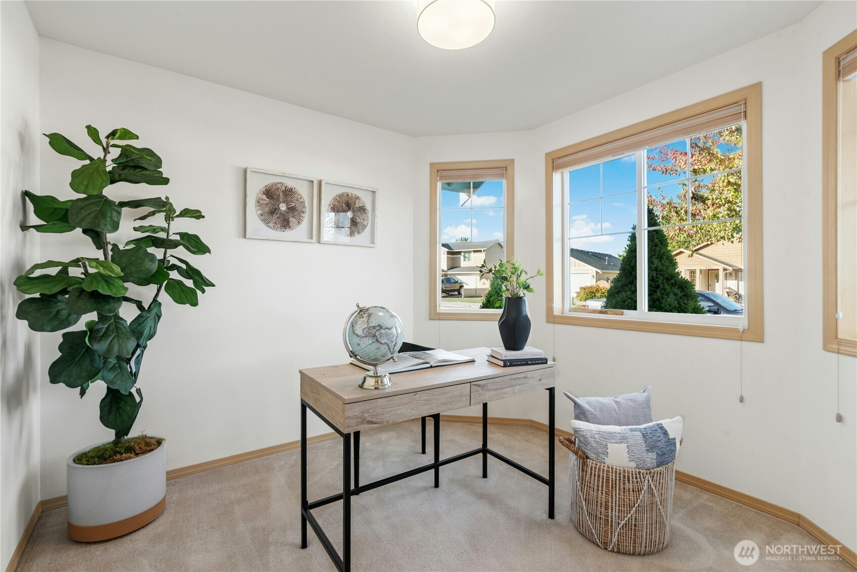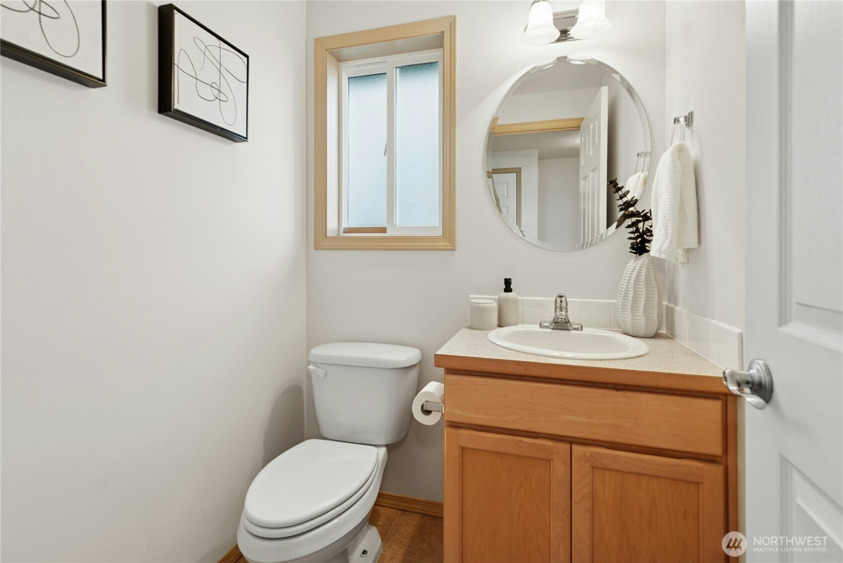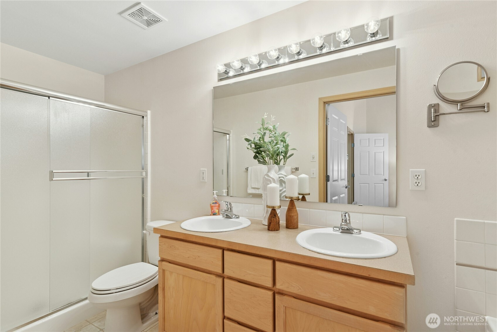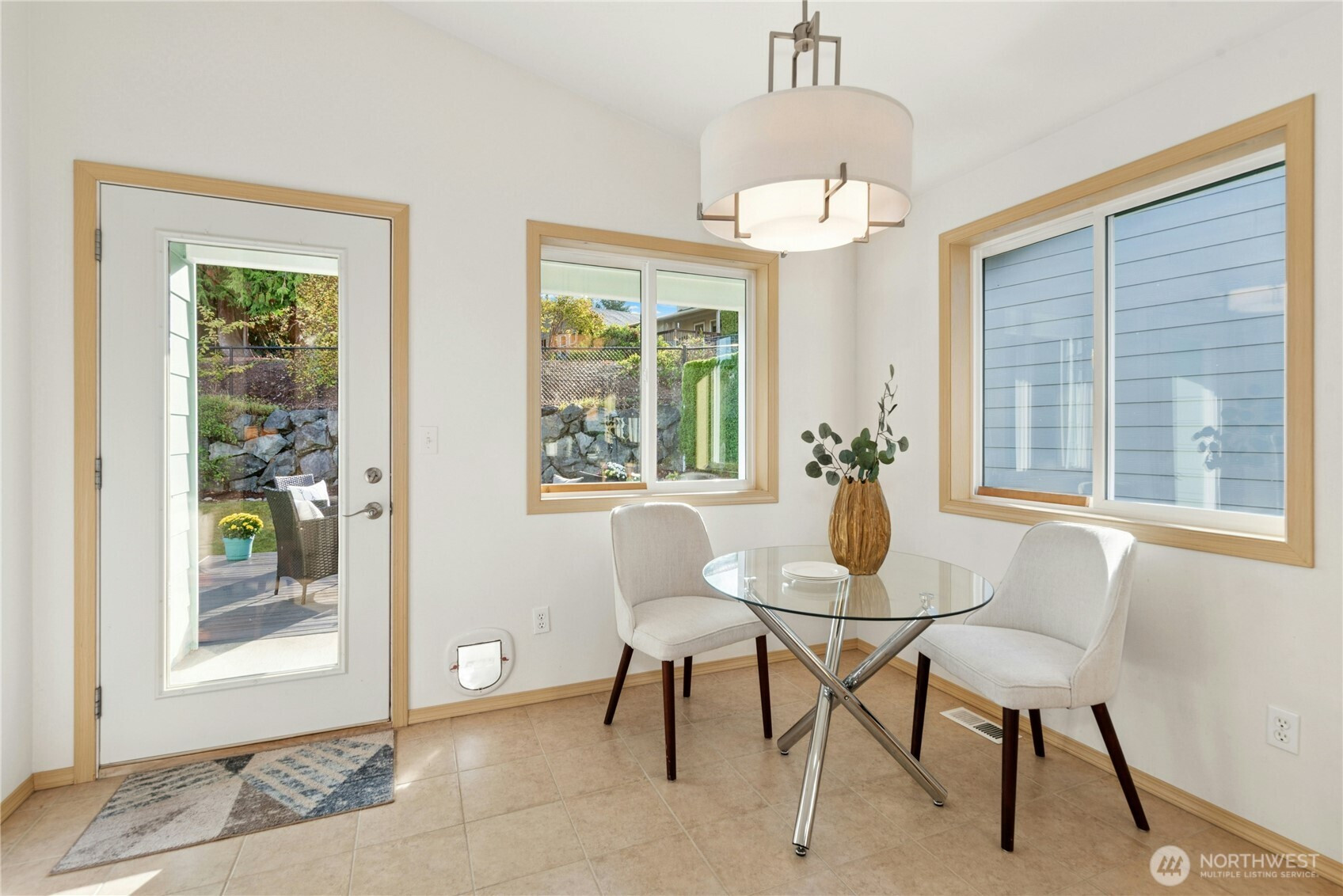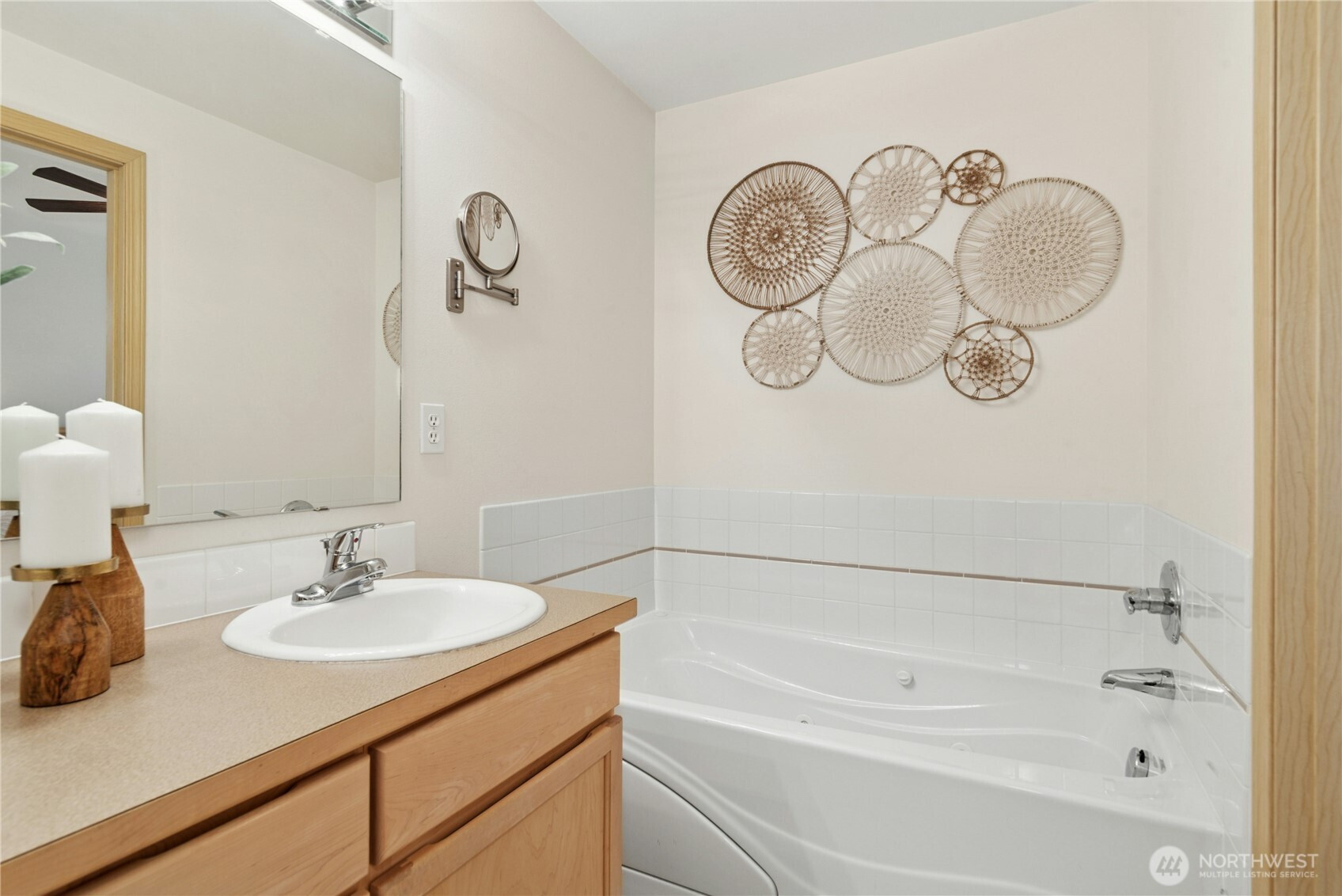 Charming rambler in the welcoming Birch Creek 55+ community in Marysville. Enjoy comfortable single-level living in this one-bedroom home with flexible bonus room. Vaulted ceilings throughout the living areas give a bright, airy feel. Spacious kitchen/dining area opens to a private deck, perfect for morning coffee or evening relaxation. Entry foyer includes a coat closet & half bath. Large primary suite has walk-in closet, safe in closet, & full ensuite bath with Jacuzzi tub. Full-size washer & dryer in laundry room with garage access and storage shelving. Fully fenced backyard with gate. Well-maintained, low-maintenance home in a quiet, friendly community with walking trails and clubhouse — move-in ready! Low HOA dues and pre-inspected.