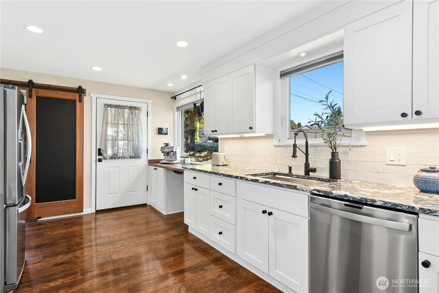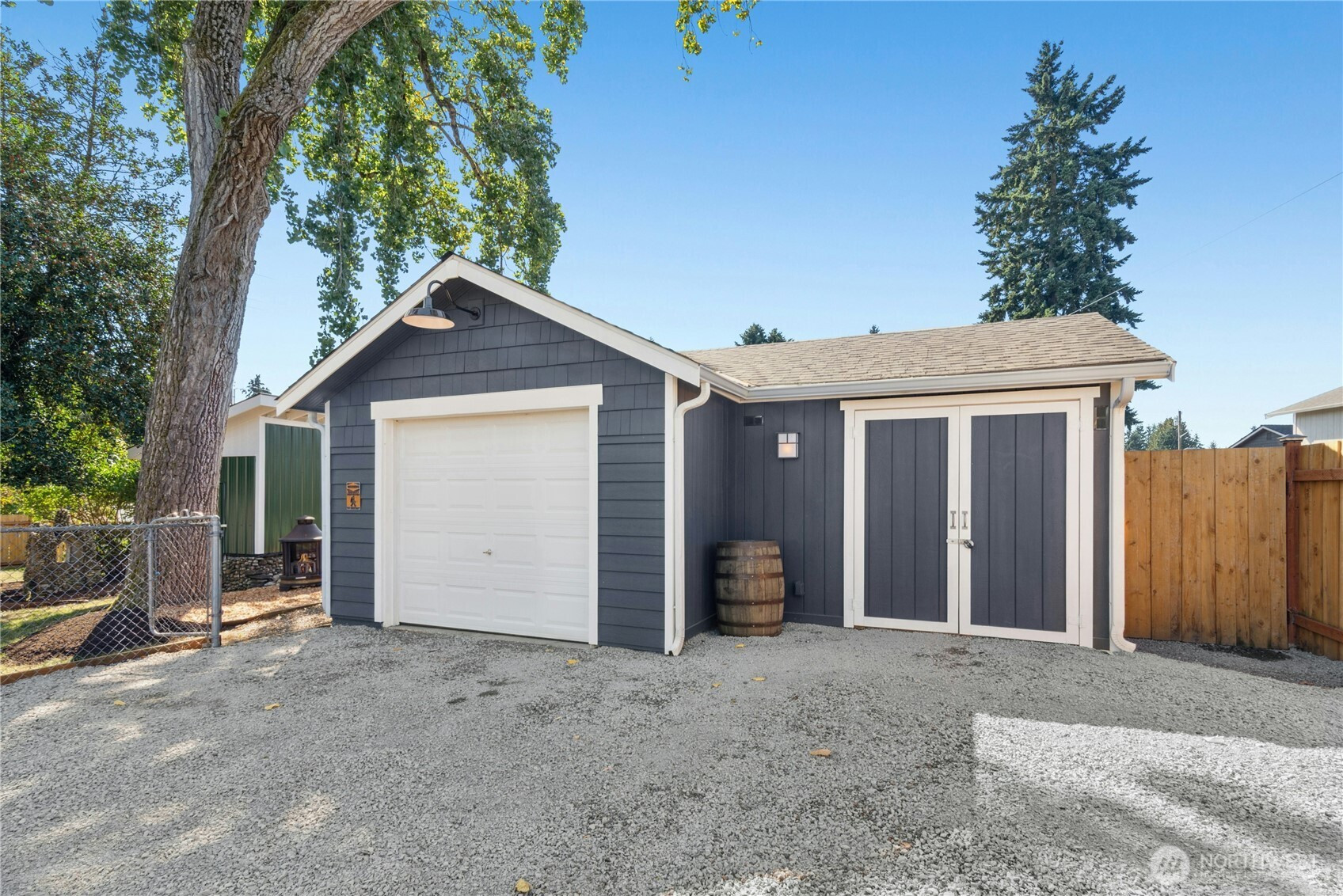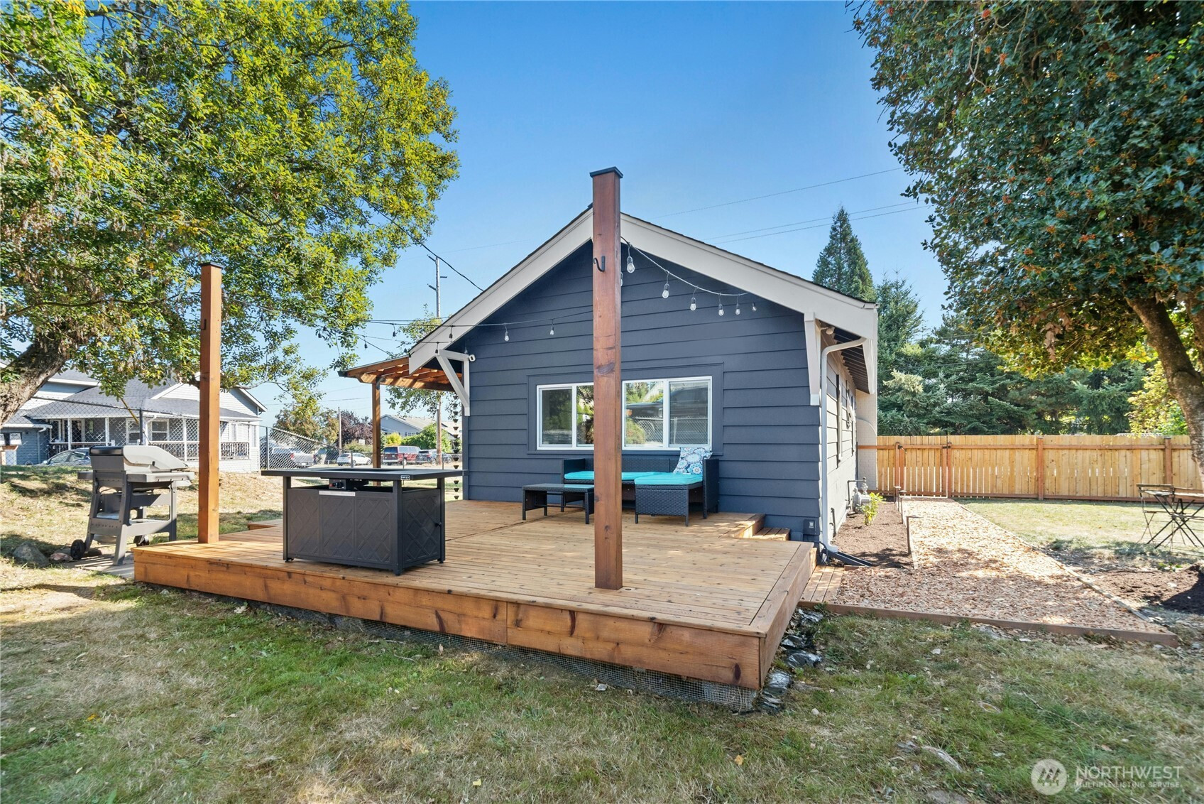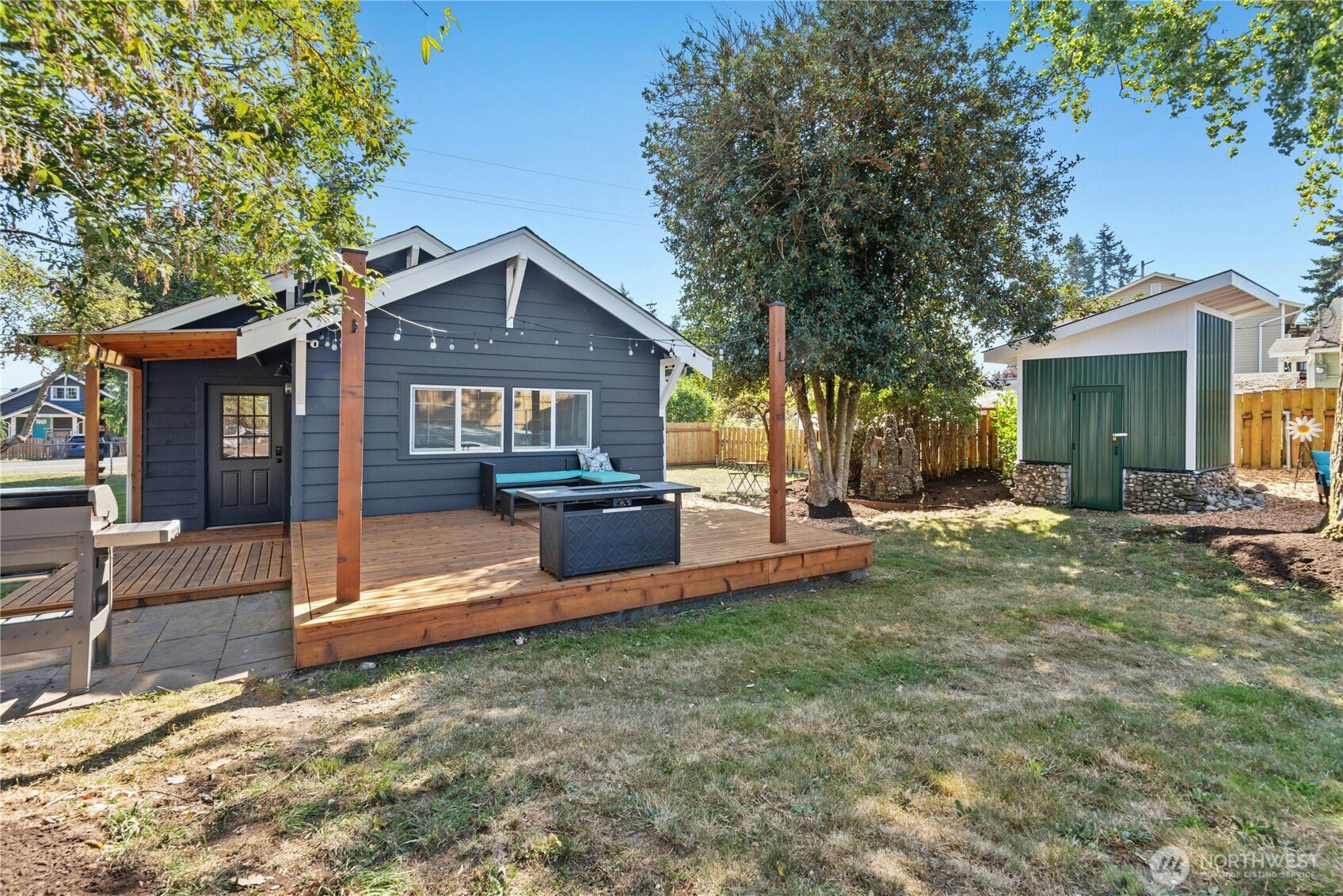 Cozy cottage on corner lot...oozing with charm! This move-in ready gem offers a rare mix of location, lifestyle + livability. Step into a light-filled living room that welcomes with warmth. The updated kitchen offers stainless steel appliances, coffee bar and a cozy eating area—perfect for casual meals or morning coffee. All on one level, you'll find 3 bedrooms and a stylishly updated bath. Another standout is the incredible outdoor space! Whether hosting friends or unwinding under the stars, this backyard retreat is ready year-round. Too many updates to list! Detached garage with shop. Enjoy the convenience of nearby amenities, and quick access I-5 and commuter routes.