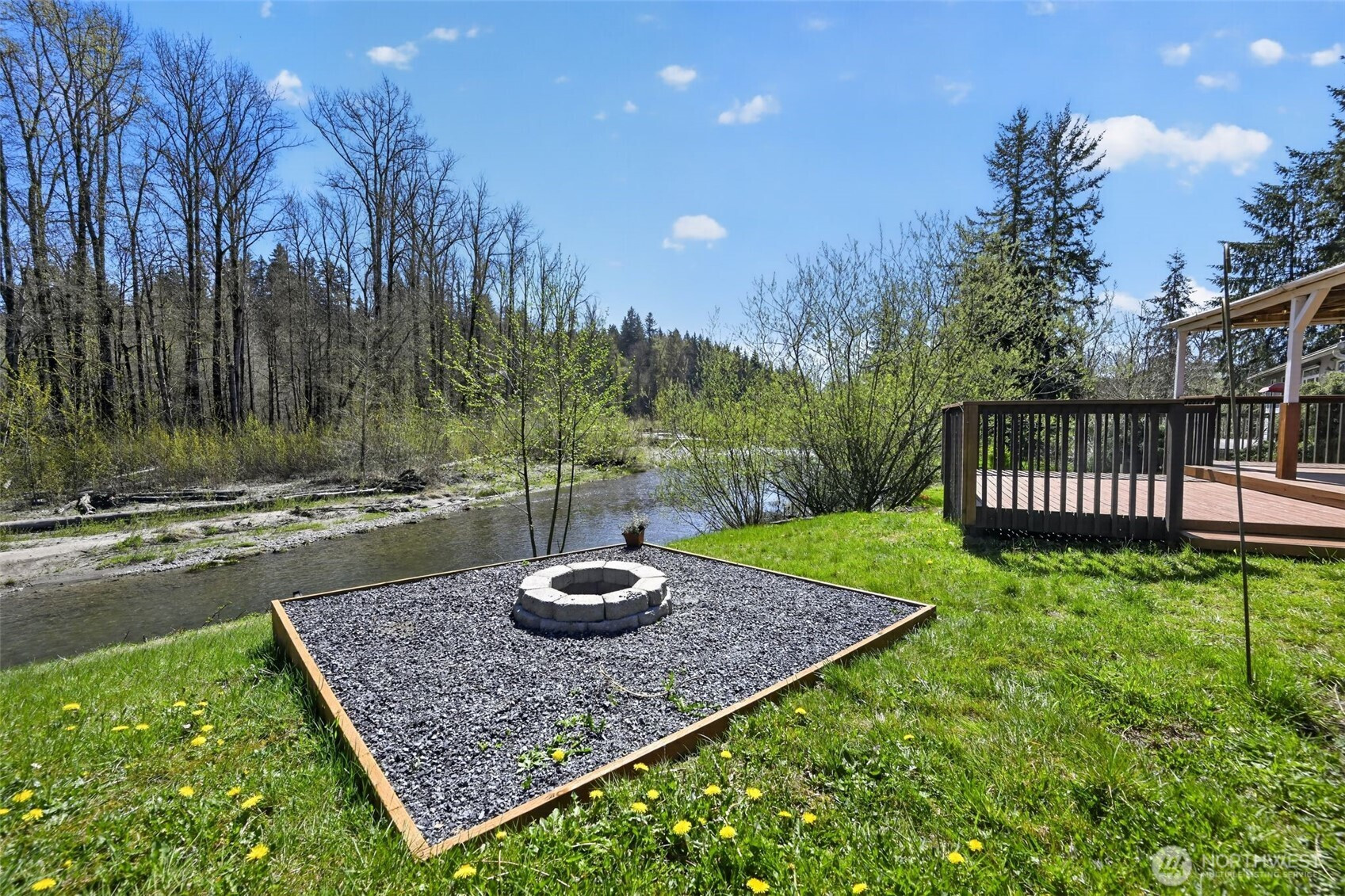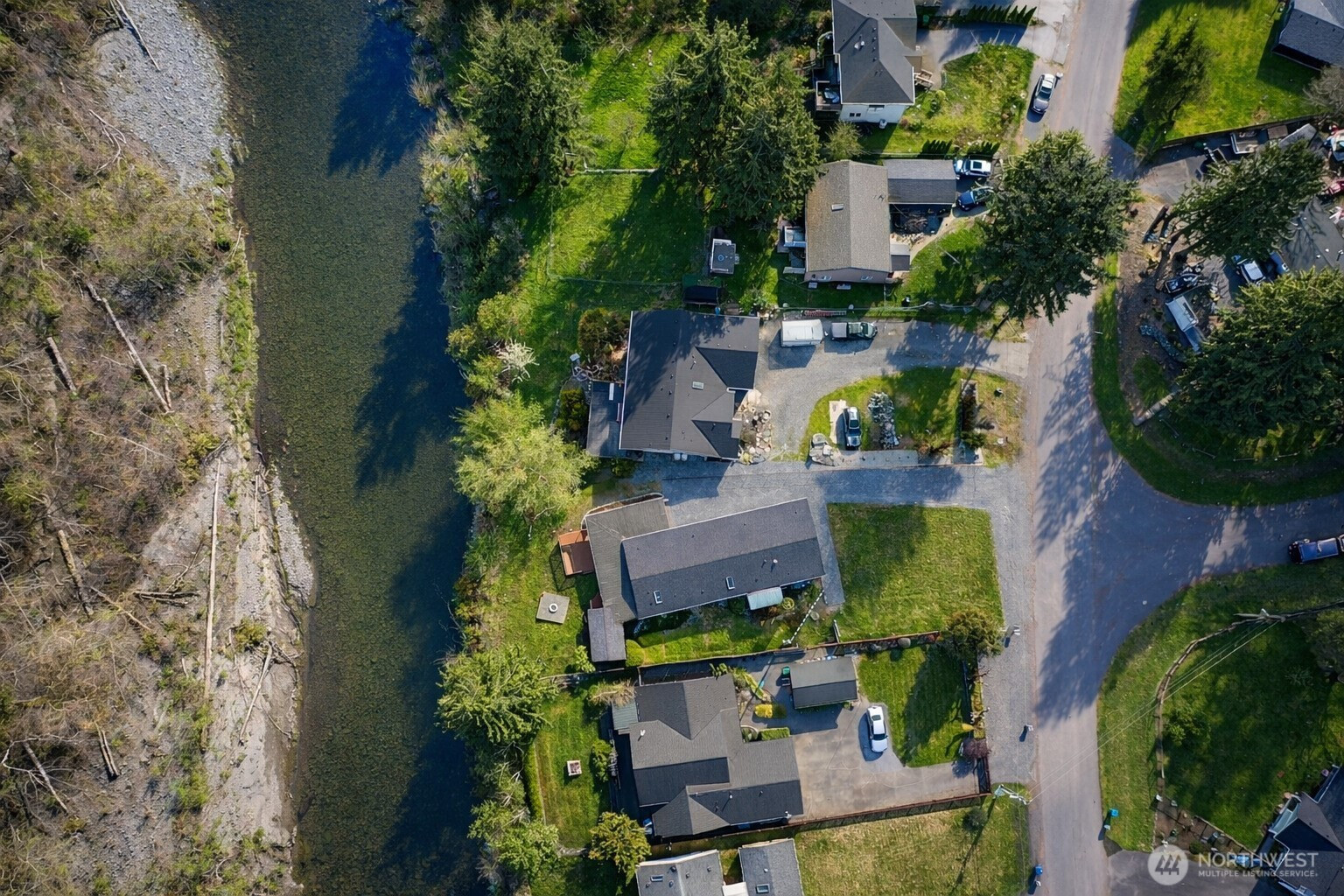 Fish from your own back yard. Shy 1/2 acre home situated on the beautiful Pilchuck River. Open floor plan with large 4 bedrooms, 2 full baths. Kitchen has eat in bar and butlers pantry. Brand new roof installed. Master bedroom with walk in closet. Bath off the master bedroom with jetted tub. Huge deck for entertaining and BBQ. Shed outside. Excellent school district. Septic tank has been inspected & pumped recently.