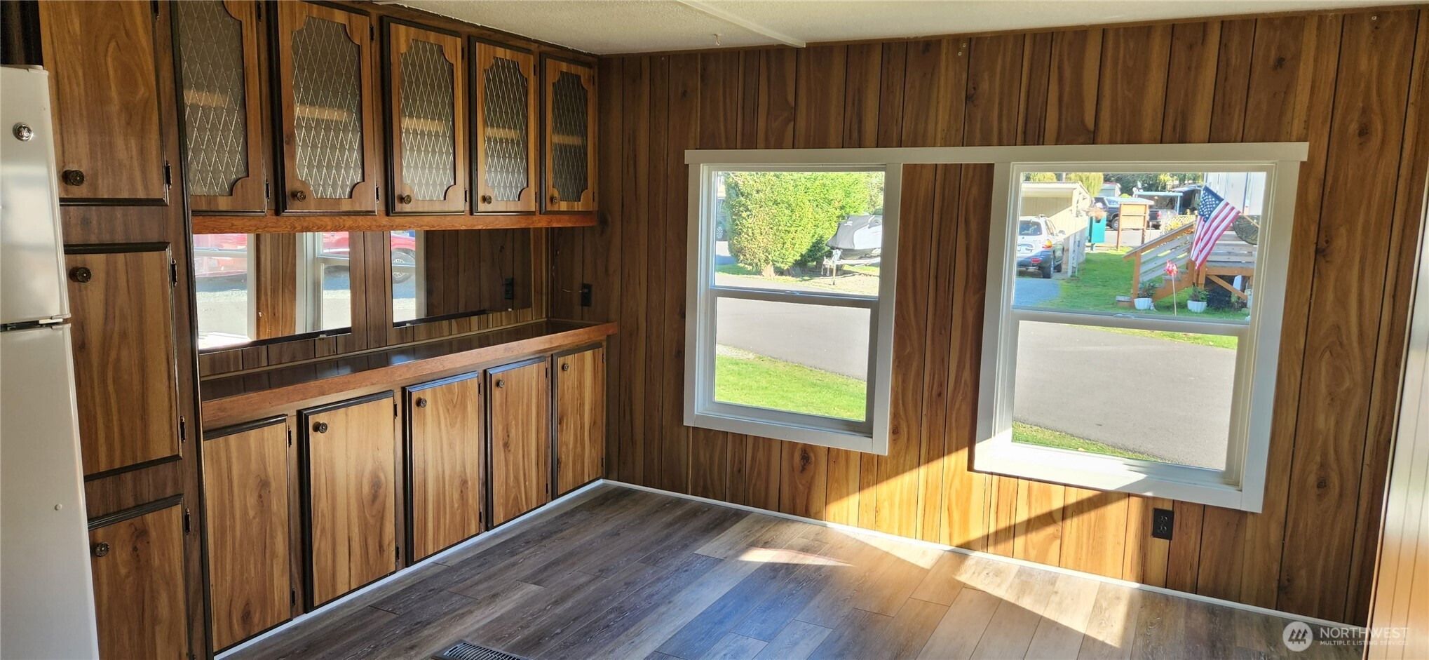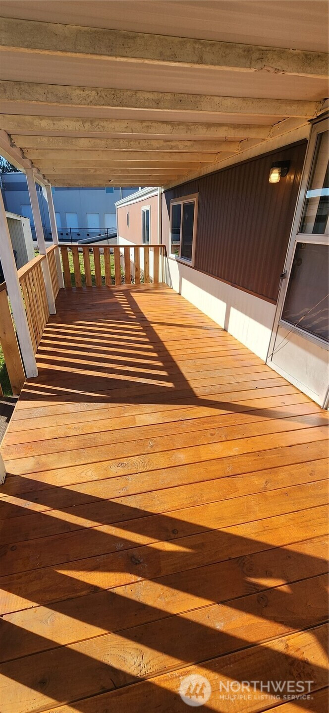 Discover this newly refreshed home, ready for its next owner. A brand-new covered front porch welcomes you - perfect for enjoying year-round outdoor living. Inside, the spacious kitchen offers abundant cabinetry for effortless storage and flows seamlessly into the bright, open dining area, framed by large windows that fill the space with natural light. The primary bedroom is comfortably sized, complemented by a second bedroom ideal for guests, a hobby room, or a dedicated home office. Recent updates include new LVP flooring throughout, new closet doors, energy-efficient double-pane windows, and freshly retextured ceilings. Stay cozy in cooler months with the warm ambiance of the wood stove, and enjoy summer comfort with the newly installed wall A/C unit. All appliances are included for added convenience. Outside, the covered carport provides protected parking, and the spacious shed offers an excellent workshop space or extra storage for gardening tools and equipment. Situated in a quiet, friendly 55+ community, this location offers easy access to parks, shopping, healthcare, and more. Park-approved pets are welcome, up to two cats or dogs, 25 lbs. max. Space rent remains affordable, with metered water, septic, and garbage billed to residents as a pass-thru charge through the park. Come see why this comfortable, move-in-ready home is the perfect place to start your next chapter.