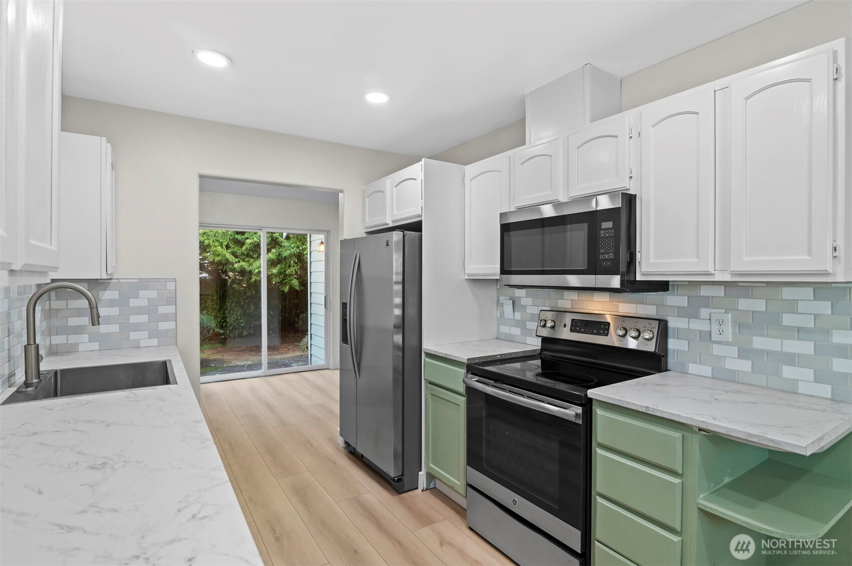 Updated Everett townhome with 3 bedrooms, 2.5 baths, and 1,315 sq ft of bright, open living space. Recent upgrades include new flooring, fresh interior paint, and refreshed bathrooms. Main level features an open kitchen, dining, and living area. Upper level offers a spacious primary suite plus two additional bedrooms and a full bath. Attached 2-car garage, two driveway spaces, and abundant guest parking. Community amenities include a playground and basketball court. Convenient location near I-5, Park & Ride (0.8 mi), and Trader Joe’s (1 mi). Great opportunity for first-time buyers.