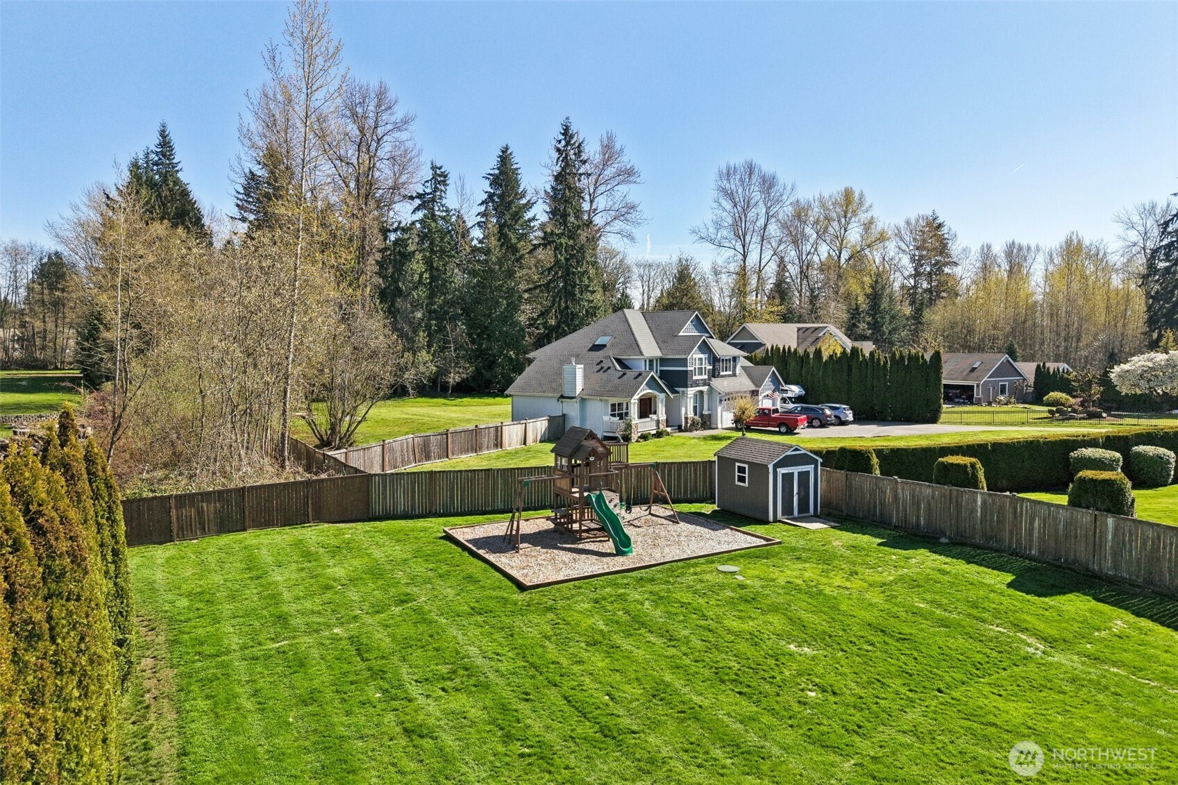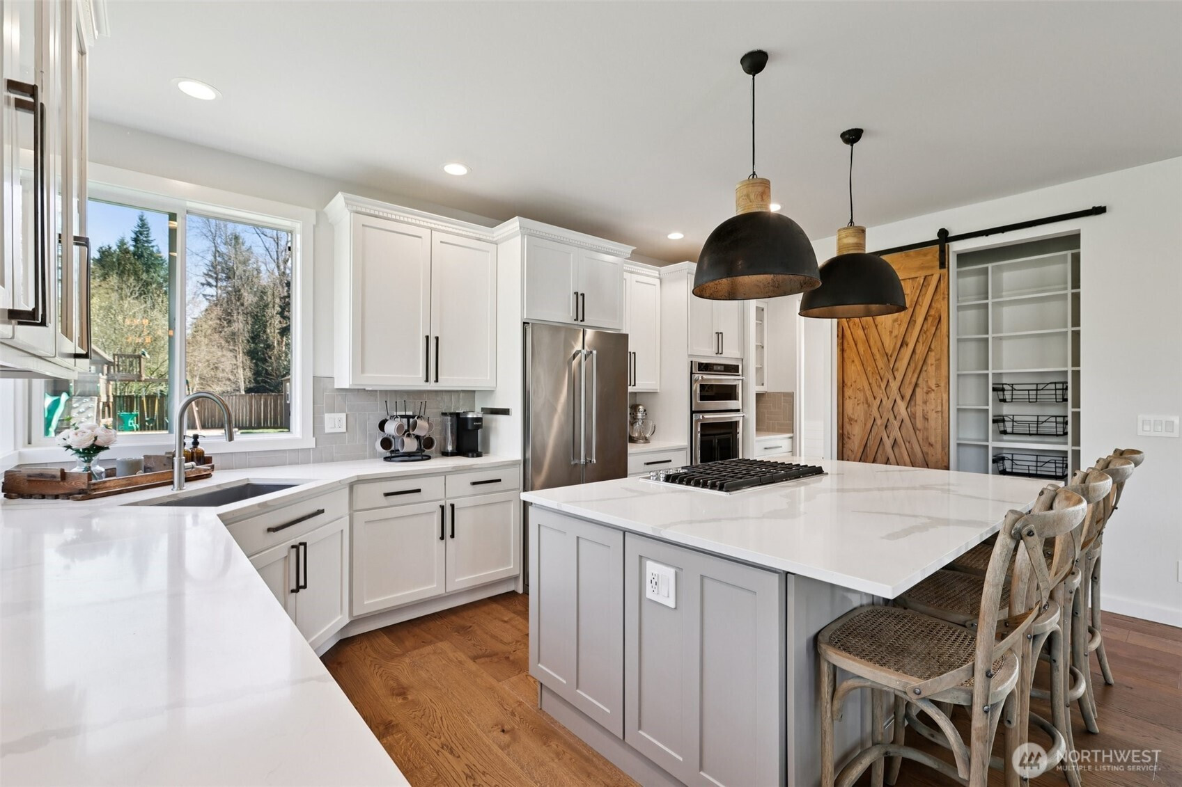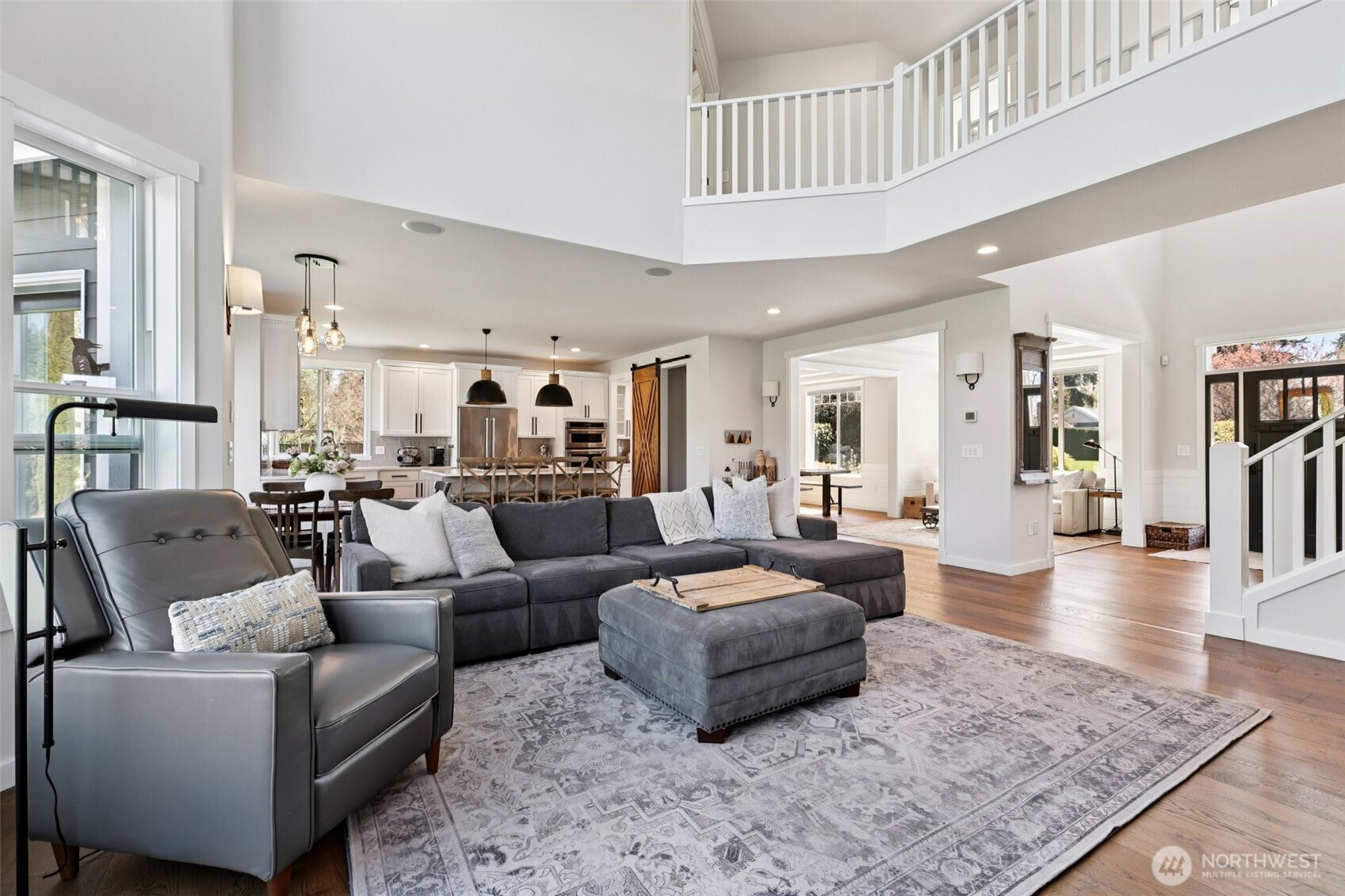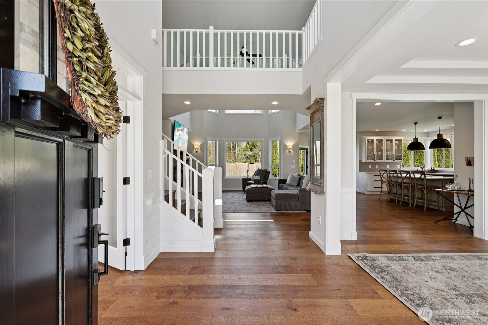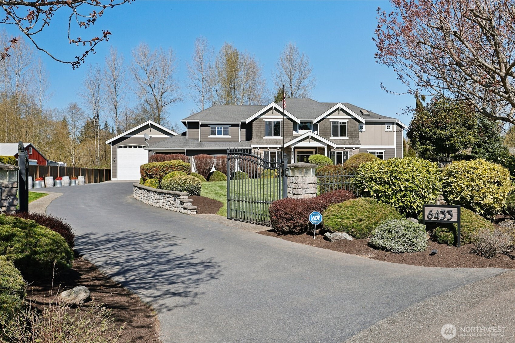 Pristine gated estate nestled on a private, level 1-acre fenced setting in coveted Fordham Meadows, where refined design and exceptional craftsmanship create a truly elevated living experience. A dramatic 18-foot entry sets an impressive tone, while expansive windows bathe the interiors in natural light. The main level unfolds with graceful formal living and dining spaces, complemented by a spacious family room centered around a striking fireplace—perfect for both intimate gatherings and everyday comfort. The updated kitchen is thoughtfully designed with engineered hardwood floors, sleek quartz countertops, and a stunning wood barn door pantry that adds both charm and function, creating an ideal space for cooking and entertaining. A sophisticated den with custom built-ins and an expansive bonus room offer remarkable flexibility for a variety of lifestyles. Outdoors, the grounds are equally captivating, featuring a relaxing hot tub and open space to enjoy year-round. A substantial 30x42 shop with 14-foot doors and a 7-car garage provides abundant room for hobbies, storage, and more. Complete with air conditioning and convenient access to I-405, this exceptional property offers a rare blend of privacy, luxury, and convenience.