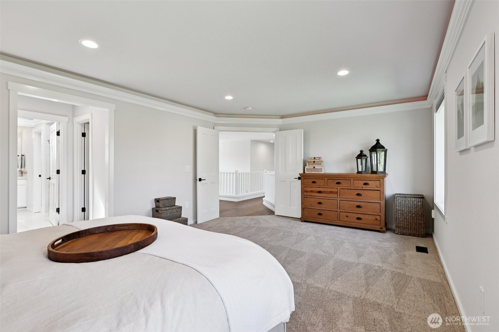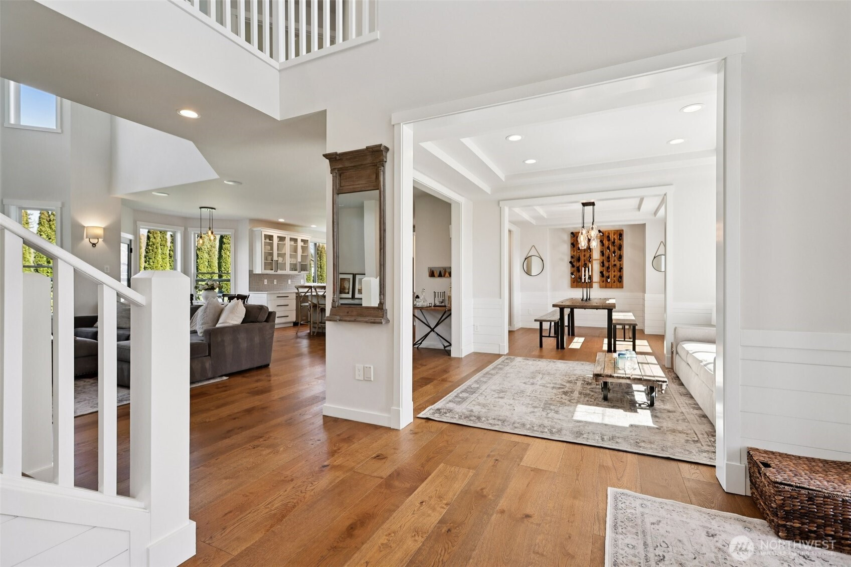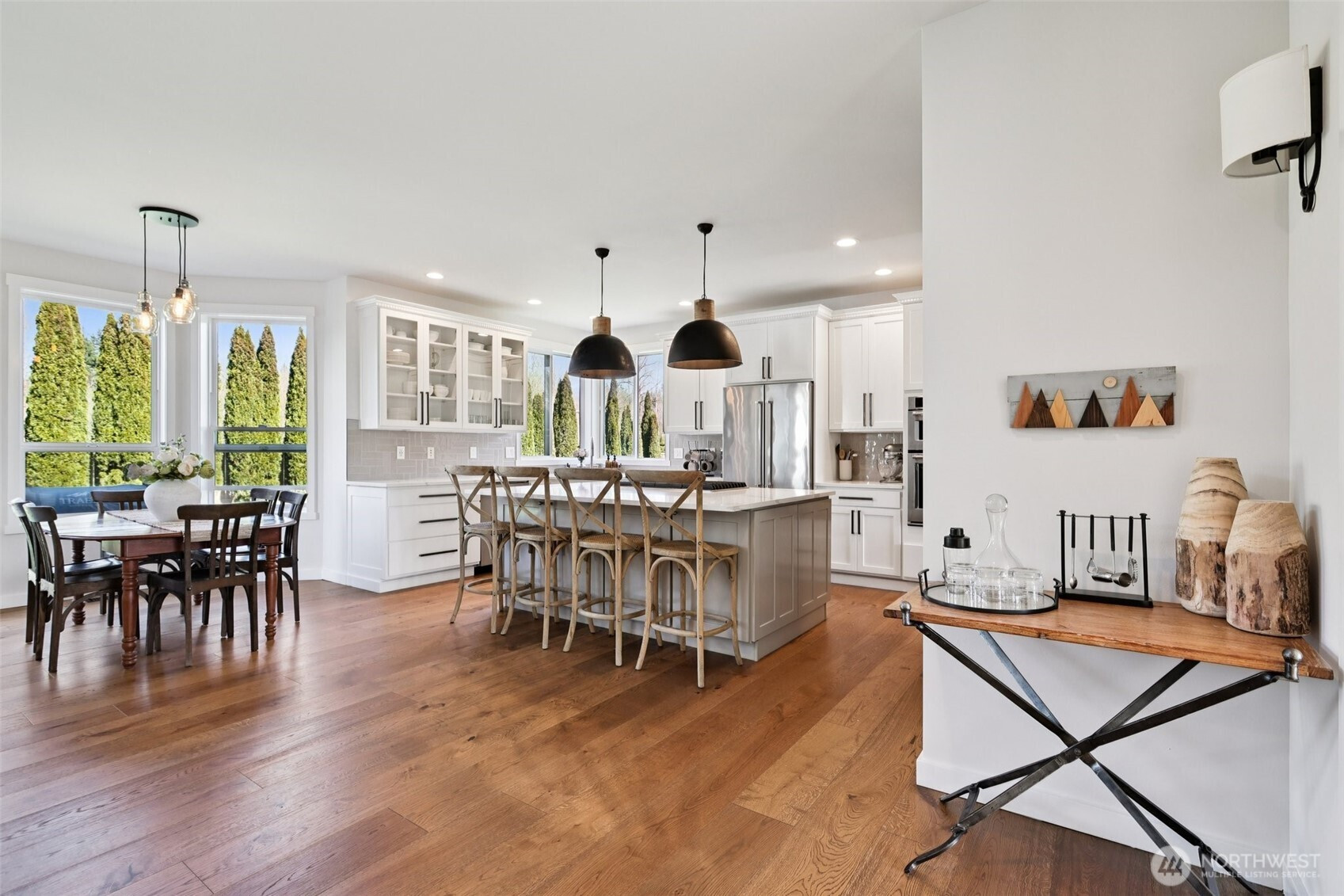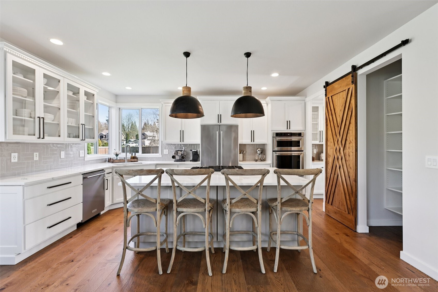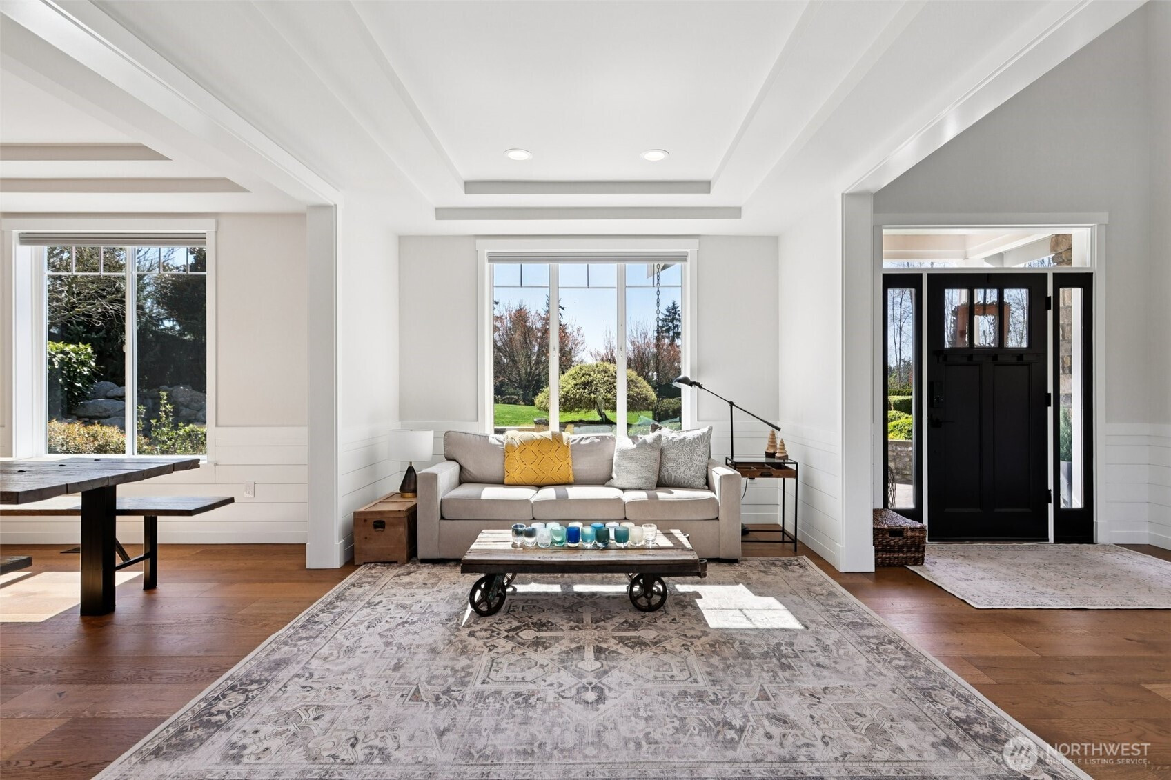 Pristine gated estate nestled on a private, level 1-acre fenced setting in coveted Fordham Meadows, where refined design and exceptional craftsmanship create a truly elevated living experience. A dramatic 18-foot entry sets an impressive tone, while expansive windows bathe the interiors in natural light. The main level unfolds with graceful formal living and dining spaces, complemented by a spacious family room centered around a striking fireplace—perfect for both intimate gatherings and everyday comfort. The updated kitchen is thoughtfully designed with engineered hardwood floors, sleek quartz countertops, and a stunning wood barn door pantry that adds both charm and function, creating an ideal space for cooking and entertaining. A sophisticated den with custom built-ins and an expansive bonus room offer remarkable flexibility for a variety of lifestyles. Outdoors, the grounds are equally captivating, featuring a relaxing hot tub and open space to enjoy year-round. A substantial 30x42 shop with 14-foot doors and a 7-car garage provides abundant room for hobbies, storage, and more. Complete with air conditioning and convenient access to I-405, this exceptional property offers a rare blend of privacy, luxury, and convenience.