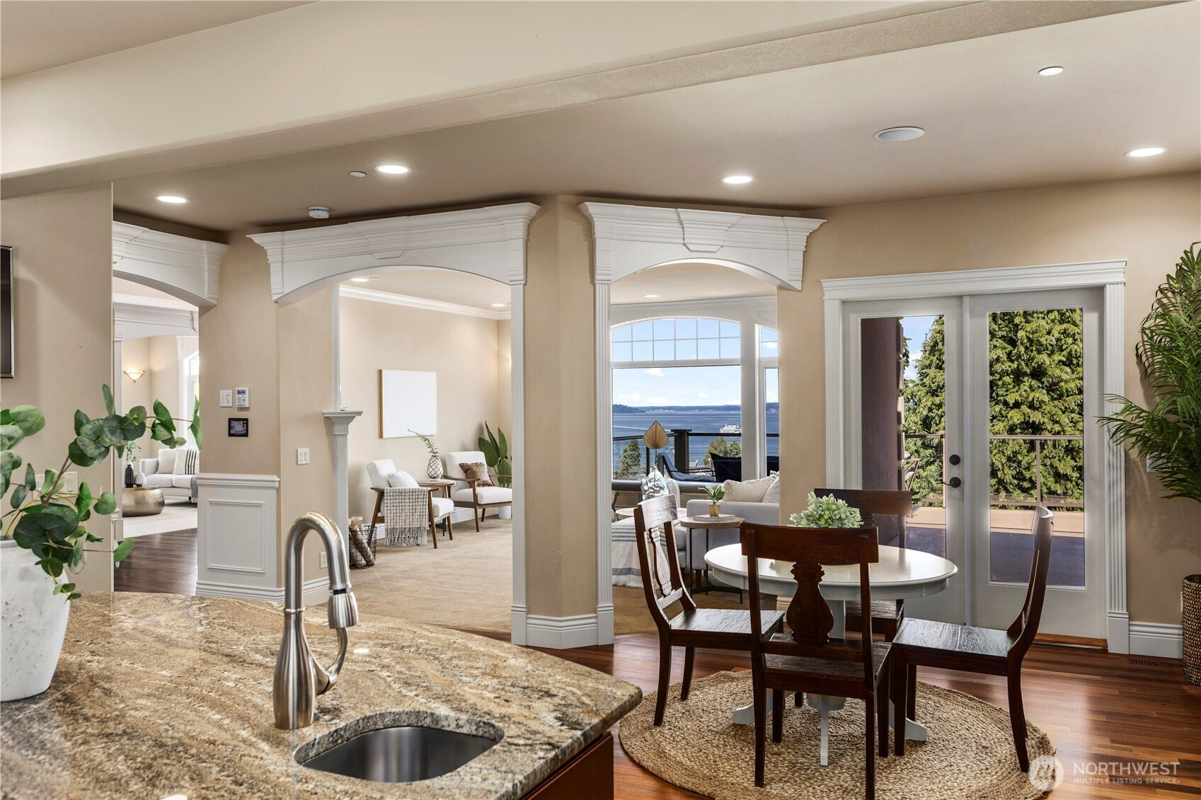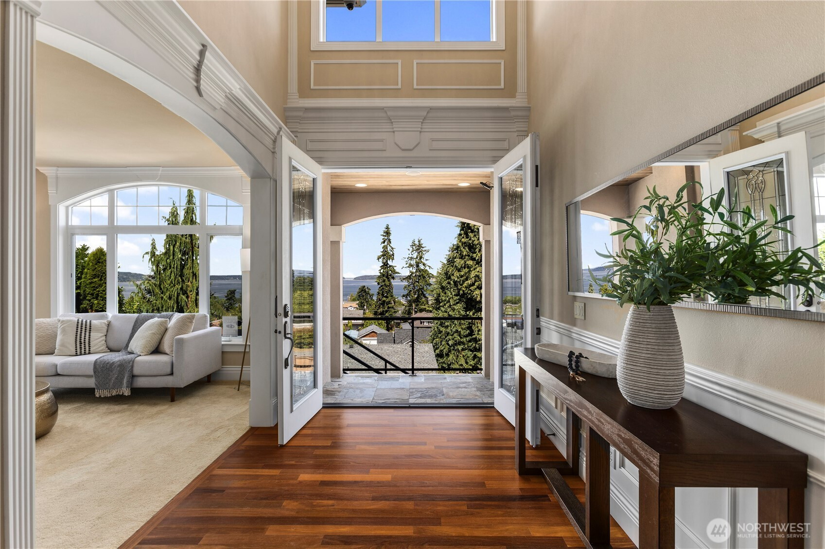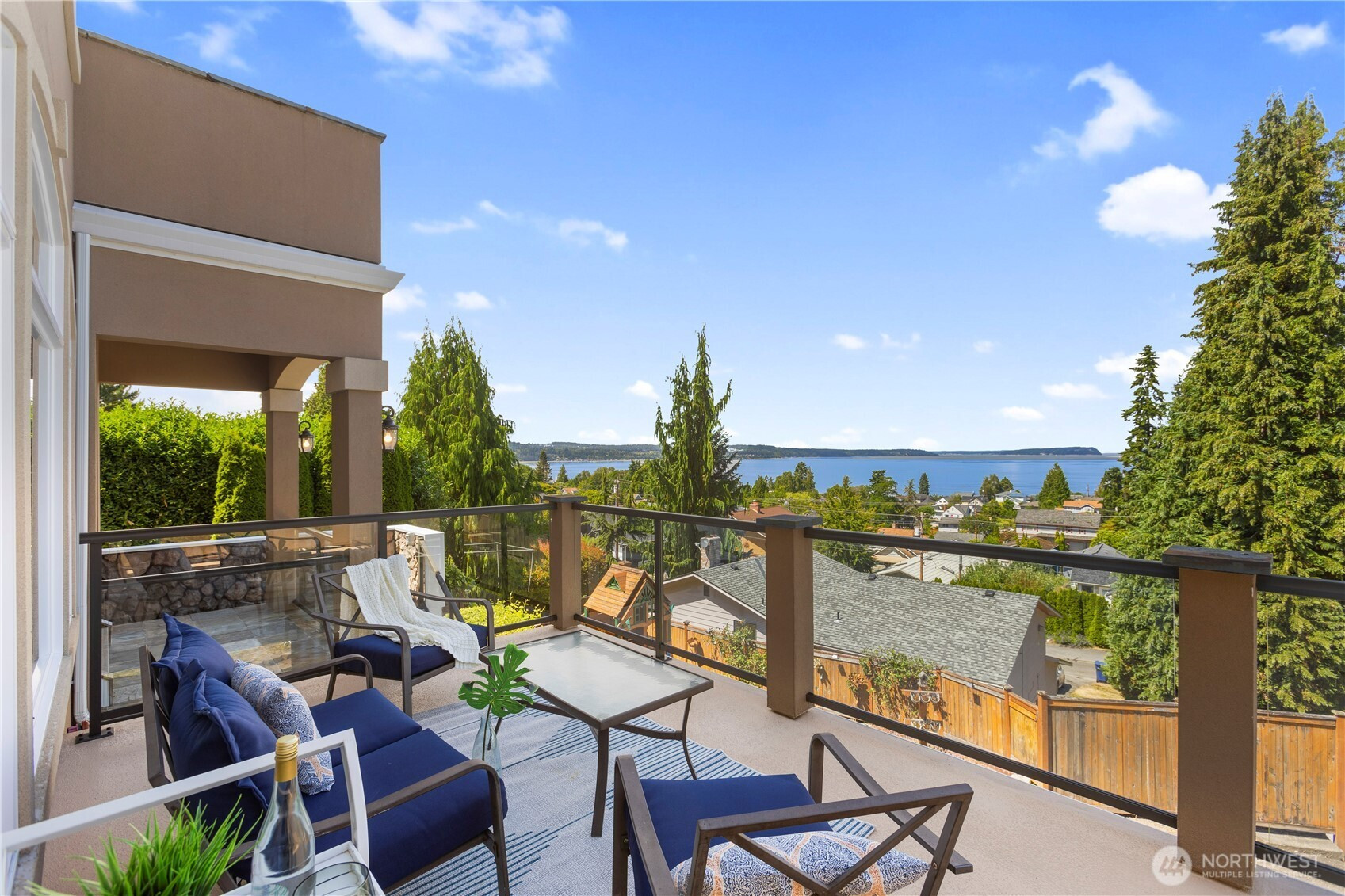 Enjoy breathtaking views of Puget Sound and the Olympic Mountains from this extraordinary 6,000-square-foot custom home, ideally positioned above the new ferry terminal. Built in 2007, this remarkable residence showcases an exceptional floor plan filled with quality craftsmanship and refined finishes throughout. The grand main floor welcomes you with an impressive open foyer featuring soaring 20-foot ceilings, a stunning chef’s kitchen, elegant formal living and dining rooms, a private home office, butler’s pantry, spacious walk-in pantry, and French doors that open to a secluded patio perfect for entertaining or relaxing. Upstairs, you’ll find four generously sized bedrooms, including a lavish primary suite designed as a private retreat, a second view bedroom with its own ensuite bath, and two additional bedrooms connected by a shared bathroom, along with a convenient laundry room. The lower level is designed for enjoyment and function, featuring an incredible theater room, spacious rec room, and extra room that would make a great wine cellar, and a four-car attached garage.