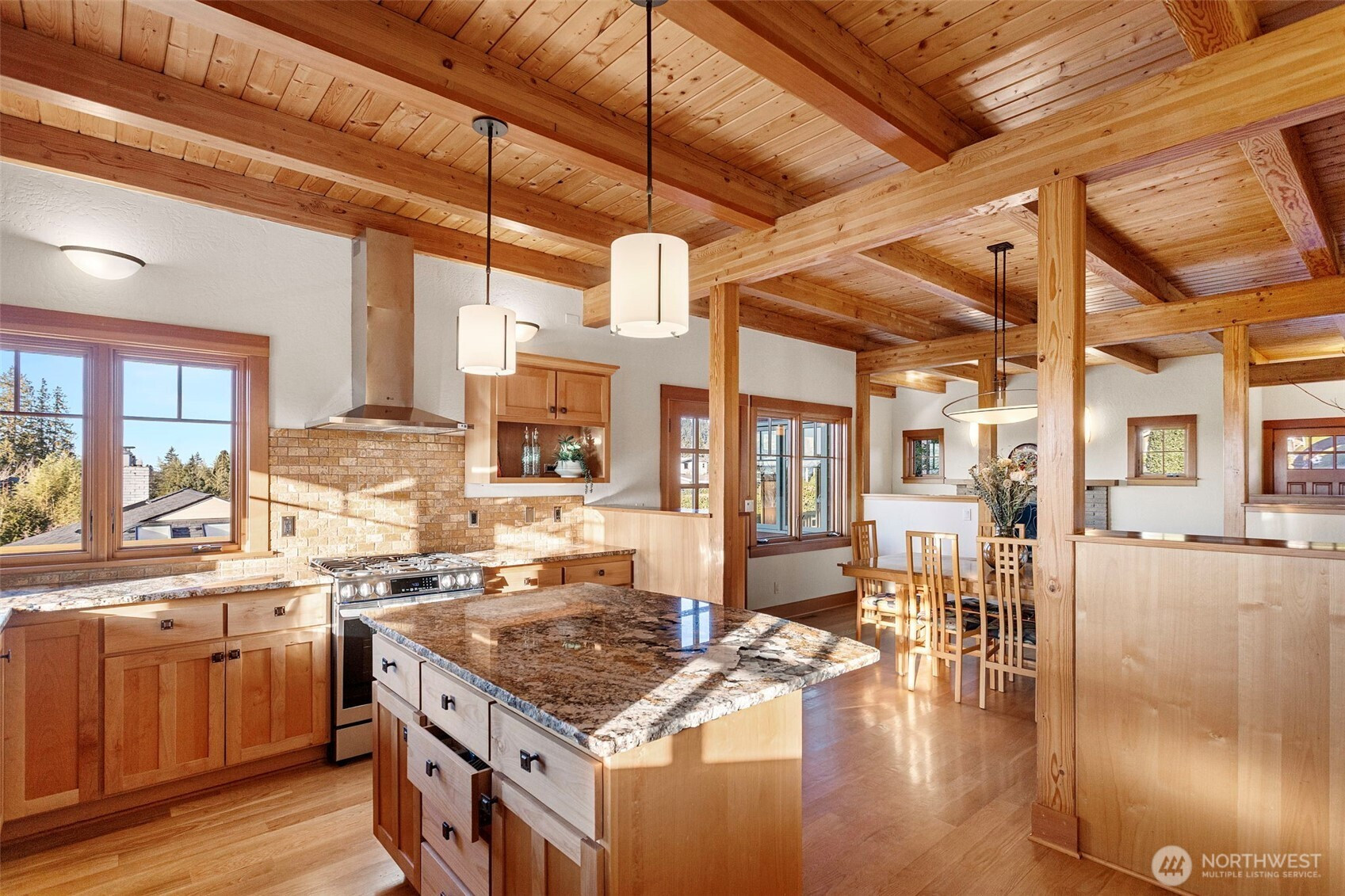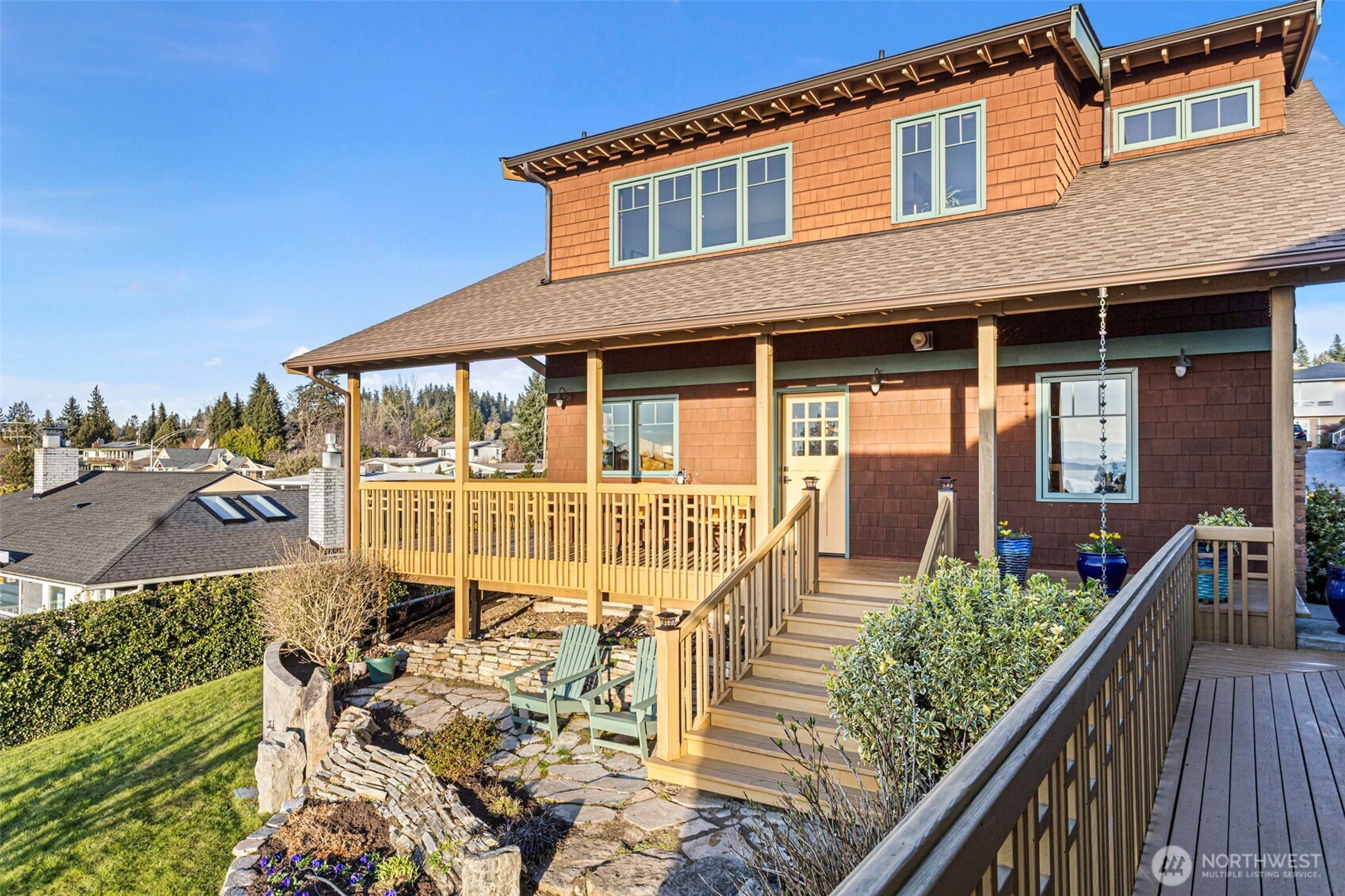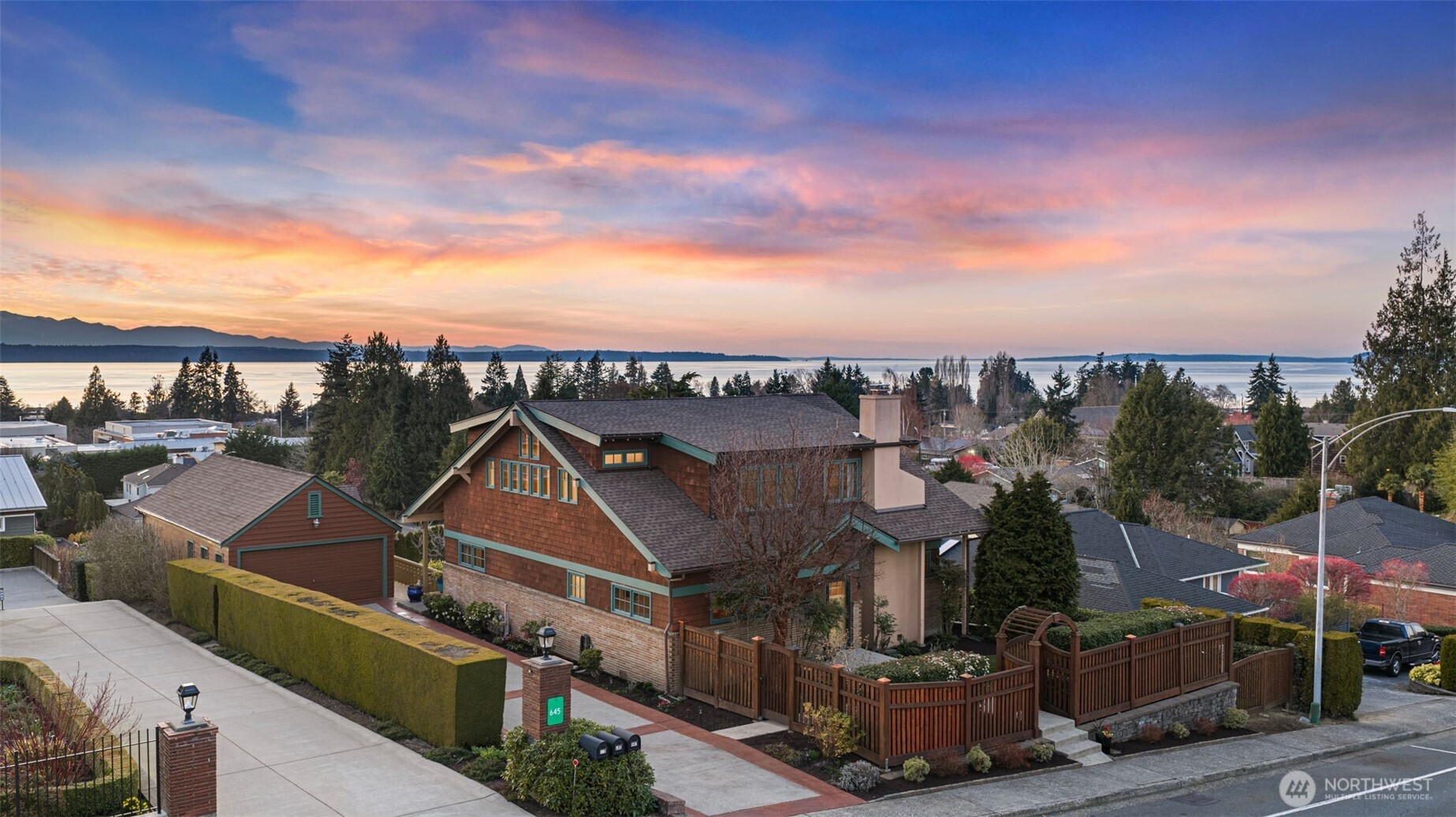 Timeless sophistication meets contemporary living- Boasting an array of high-quality finishes, this immaculate 4 bed | 3 bath Craftsman is an absolute showstopper! Custom designed and completely rebuilt in 2003 after a historic fire, this gem is nestled in the heart of The Edmonds Bowl. You are sure to fall in love with the Western exposure, breathtaking sunsets and sweeping views of Puget Sound, the Edmonds Ferry and the Olympic Mountains- enjoyed from the spacious wrap-around deck or one of the many high-end, tailor-made, Loewen windows. Custom Hubbardton Forge lighting package, impeccable millwork, exposed beams, and white oak hardwoods are just a few of the awe-inspiring touches found throughout the home. Do you like to entertain? The updated gourmet kitchen comes complete with custom rough-edge slab granite counters, a NEW LG stainless steel appliance package and freshly refinished cabinets. Main level bedroom or office & full bath. Venture upstairs to your primary suite featuring some of the best views in the house, en-suite & walk-in closet. NEW Roof (2025), 2 newer furnaces, freshly painted garage, professional landscaping and a beautiful stamped concrete driveway. In need of more space? Don't miss the 350sf finished bonus room | flex space off the garage, 350sf unfinished storage space & RV parking. Plenty of room for all of your toys! Minutes from delectable restaurants, shopping, beaches, parks, Boeing, I5, HWY 99, and all that Downtown Edmonds has to offer!