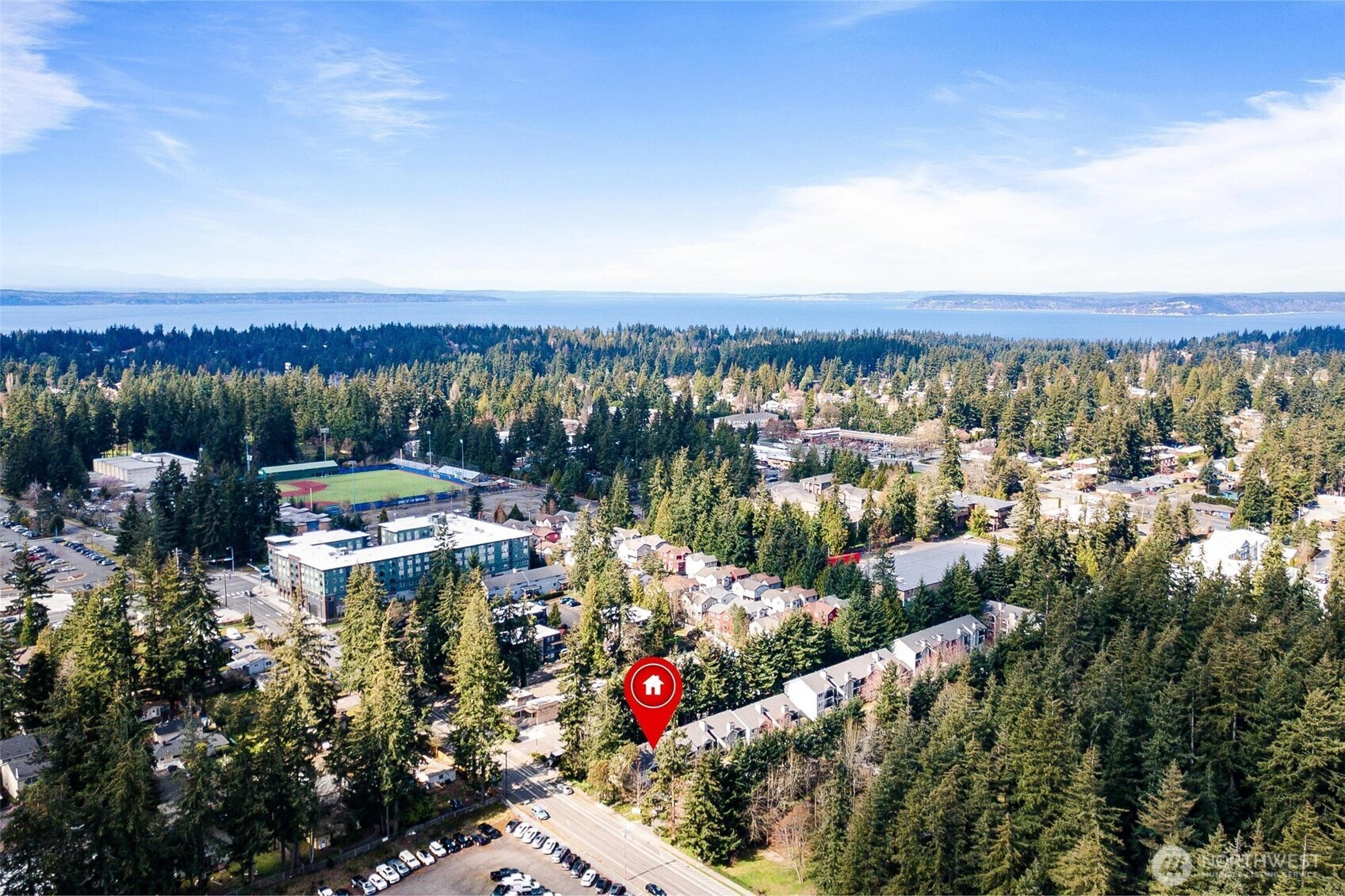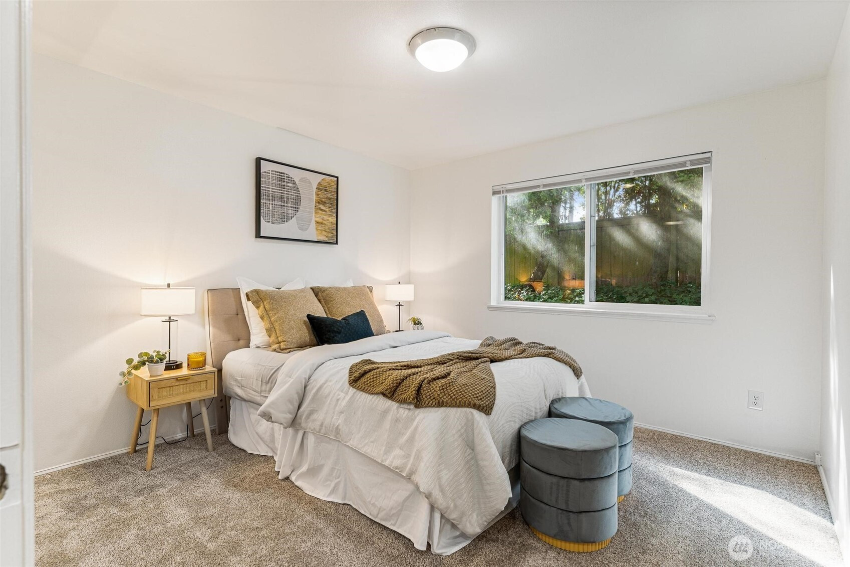 Investment Opportunity! Stylish one-level ground-floor corner condo offering the perfect blend of comfort, convenience, and accessibility—parking right in front of the unit! Enjoy a private entrance and easy access to this move-in ready home featuring a spacious open-concept layout, cozy fireplace, and expansive deck with extra storage. Thoughtfully updated with freshly painted millwork, new designer dining light fixture, new bedroom carpet, new blinds, and a new water heater. Functional full-size utility room with washer & dryer included. Bright kitchen showcases crisp white cabinetry and newer appliances. Ideal for first-time buyers, downsizers, or investors! Nestled in a quiet, peaceful setting with nearby parking, park-like views, and unbeatable walkability—just 2 blocks to Edmonds College and minutes to Trader Joe’s, Starbucks, transit, and I-5.