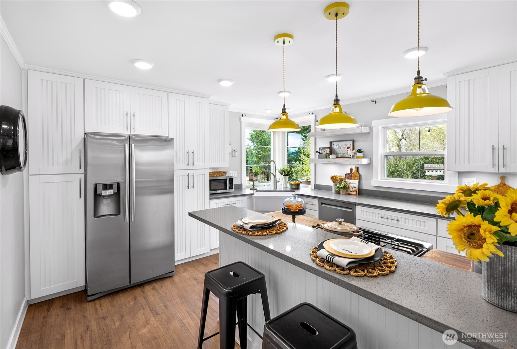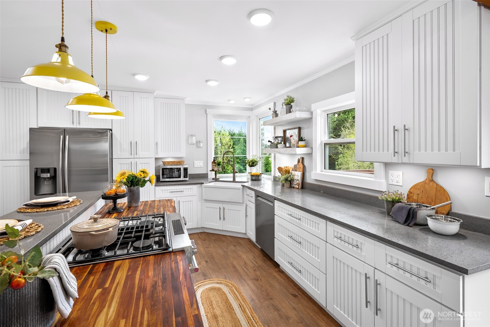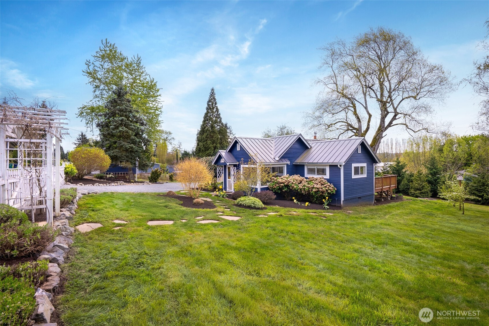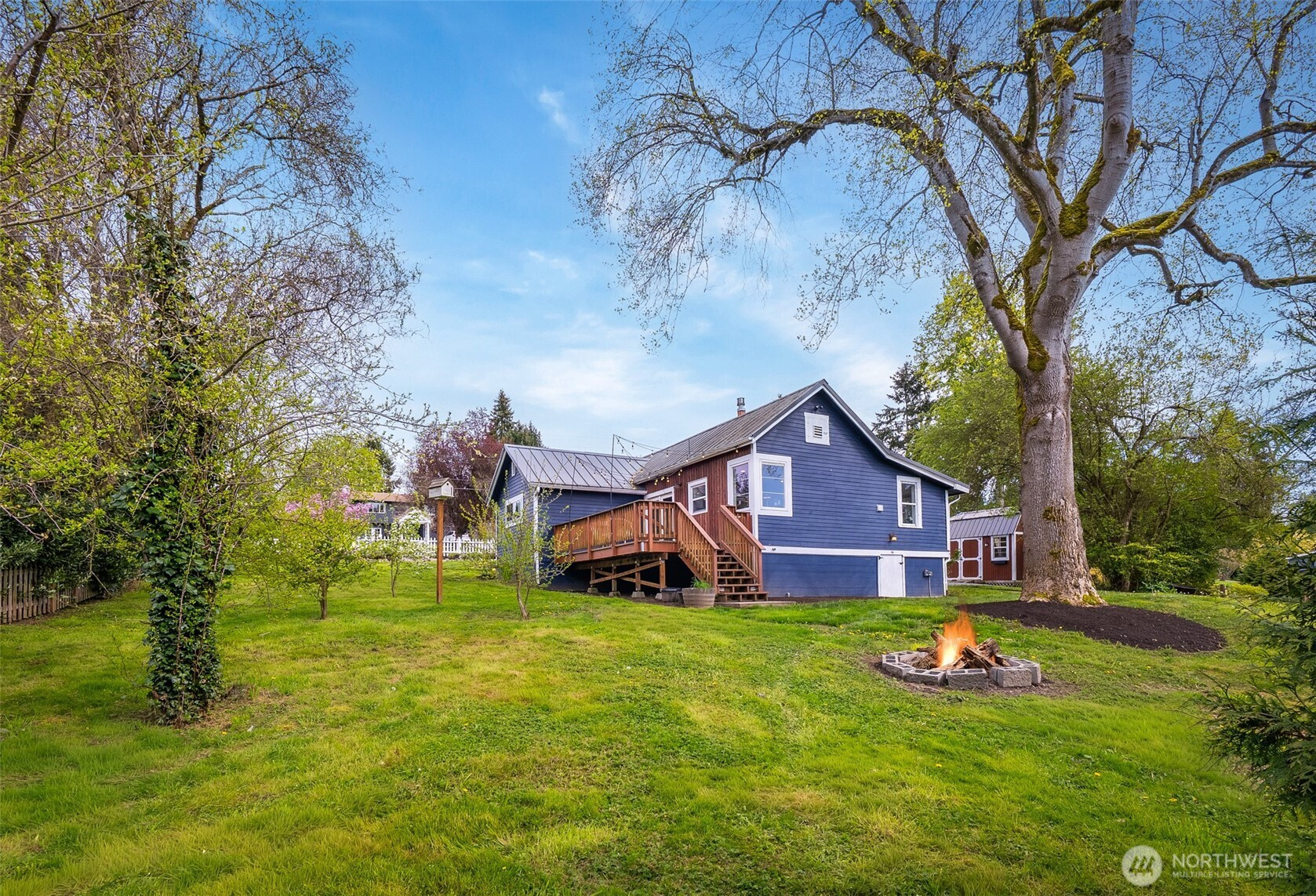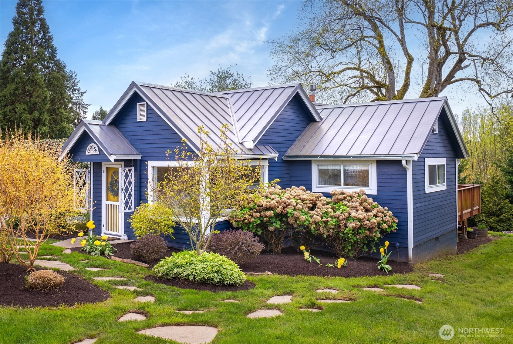 Set on a spacious lot with a private evergreen grove in Fobes Hill, this Snohomish home offers a balance of country living, functionality, and easy access to everyday essentials. Located just 10 minutes from historic downtown Snohomish, you’re easily connected to local shops, dining, and weekend activities while still enjoying privacy and space to roam. Inside, a bright, open layout connects the living and dining areas, with a cozy fireplace adding warmth, creating a space for daily routines and festive gatherings. The kitchen provides ample storage and prep space, flowing easily to the back deck, ideal for outdoor dining or entertaining, overlooking the fully fenced yard. The home is complete with three bedrooms and an oversized bathroom featuring a soaking tub, along with additional storage and a conveniently located washer and dryer for added ease of daily routines. Ample parking, a detached garage, and a spacious storage basement add to the daily functionality of this home and property.