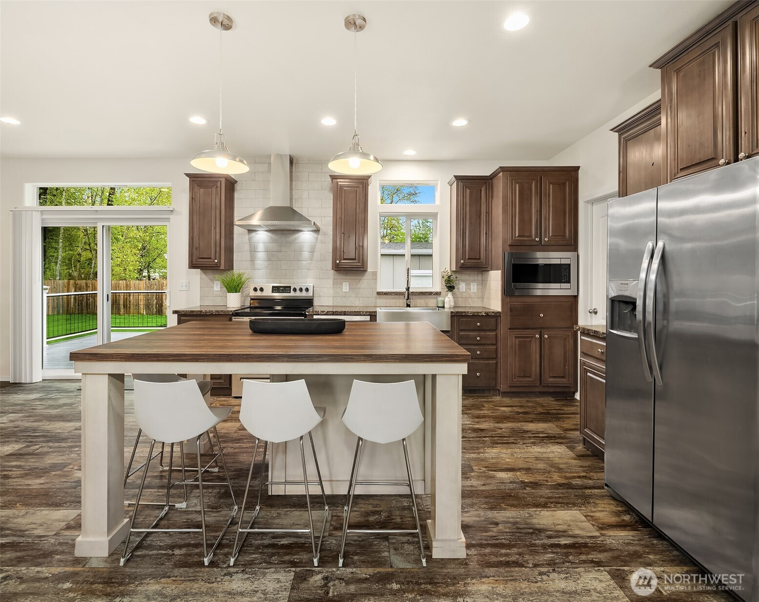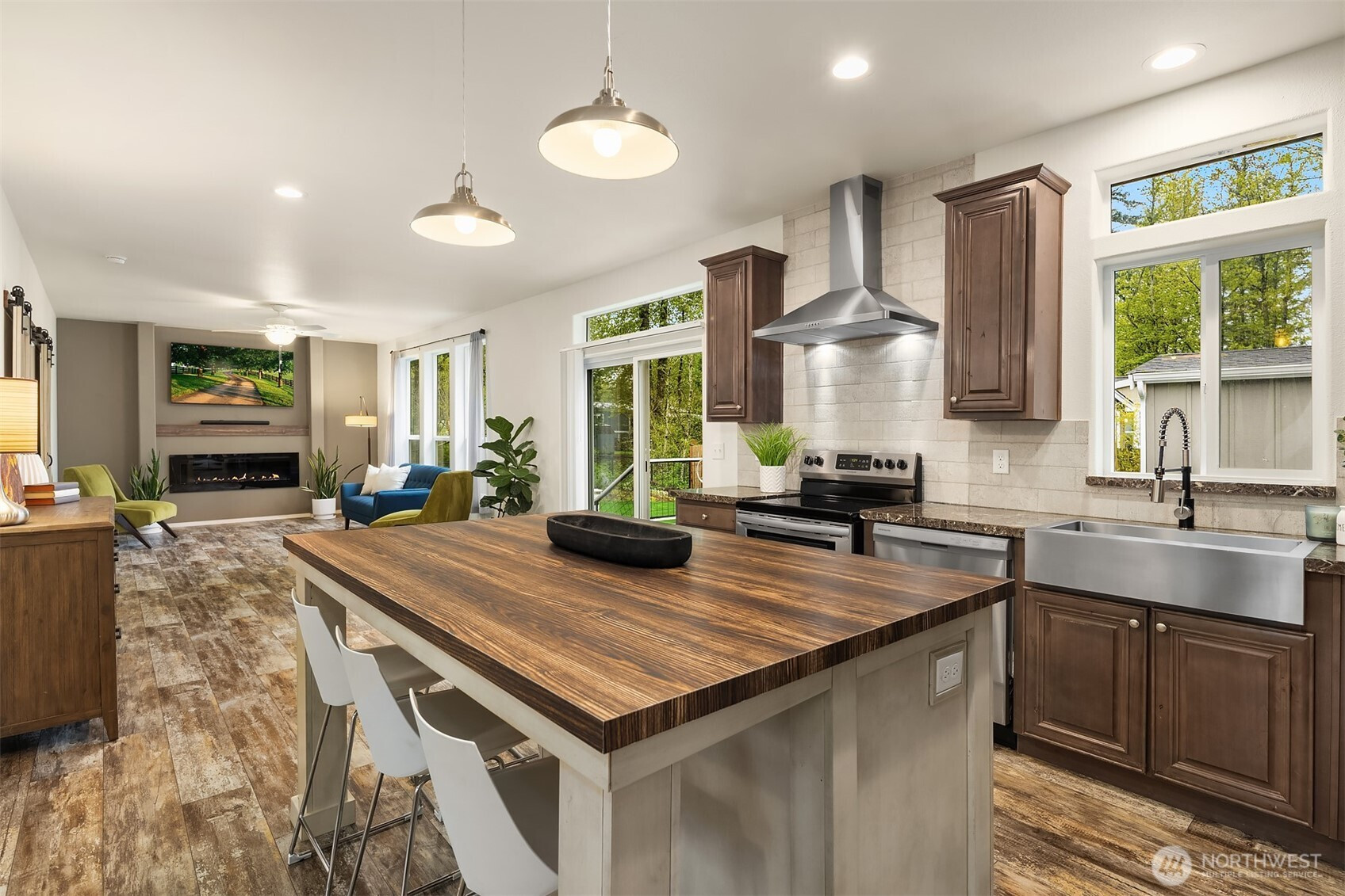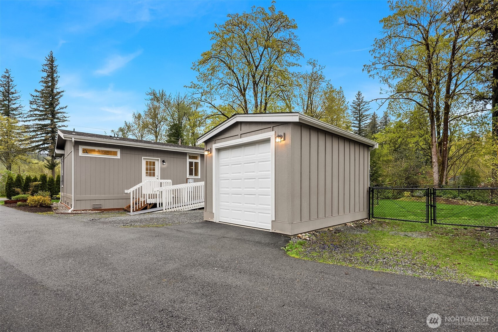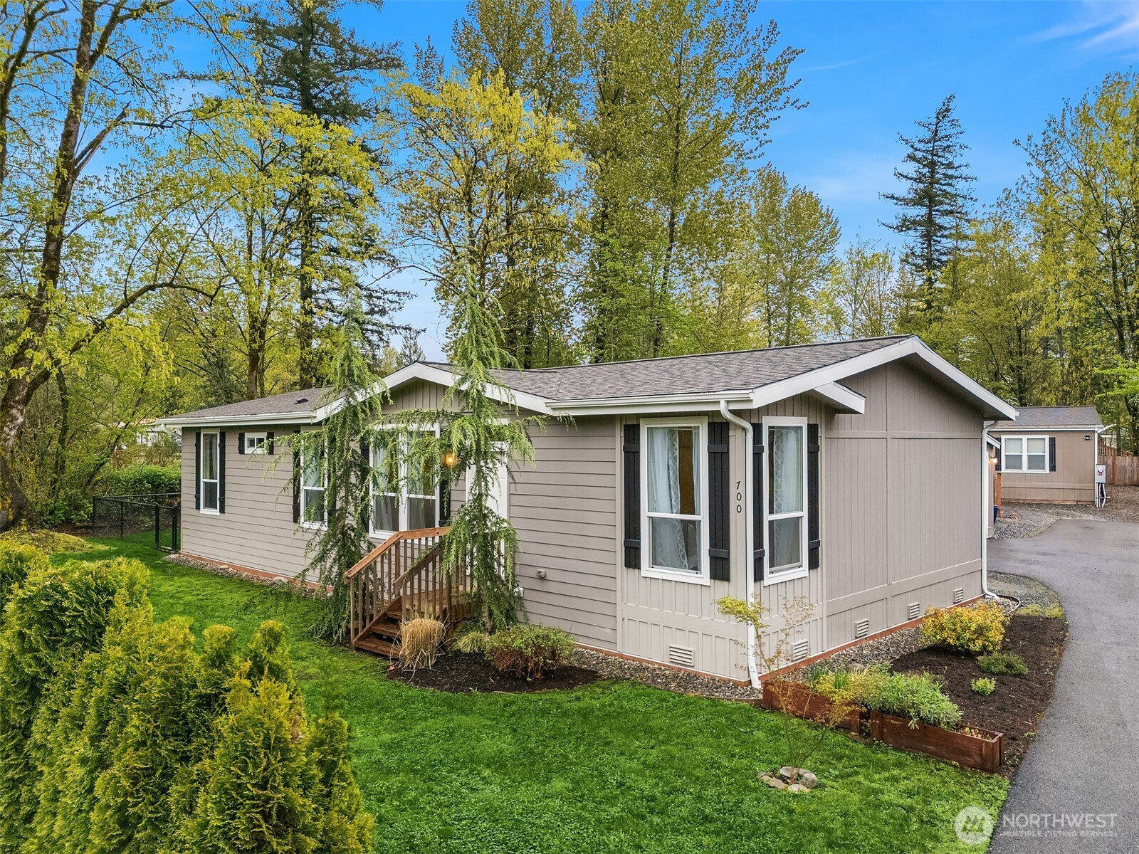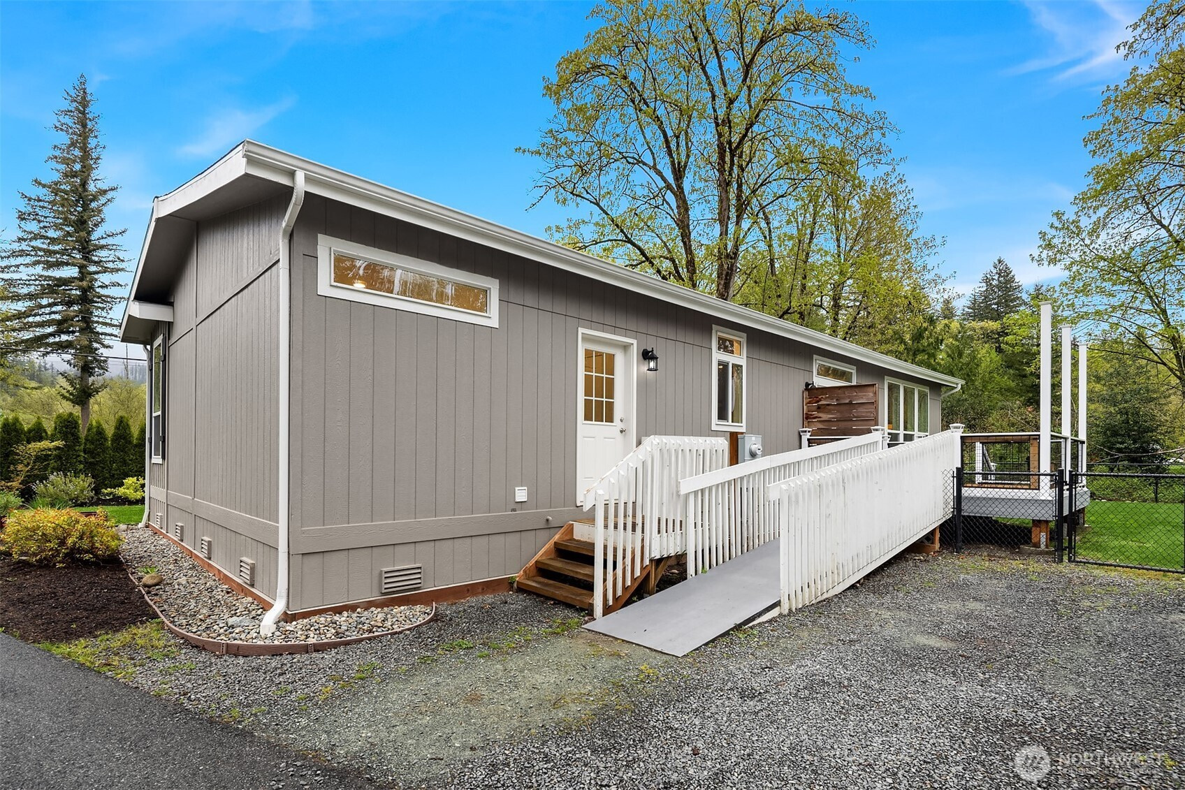 Ideally located just minutes from Wallace Falls and year-round outdoor recreation, this thoughtfully refreshed home offers an easy, comfortable flow with elevated finishes throughout. The light-filled great room is anchored by a cozy fireplace, while the kitchen serves as the heart of the home with a generous island, abundant storage, and stainless steel appliances. A functional mudroom and laundry area provide everyday convenience just off the back entry. The primary suite is a relaxing retreat with a walk-in closet and spacious bath. Outside, enjoy a fully fenced yard and rebuilt deck with accessible entry ramp, plus flexible parking options. Wired for AC and move-in ready.