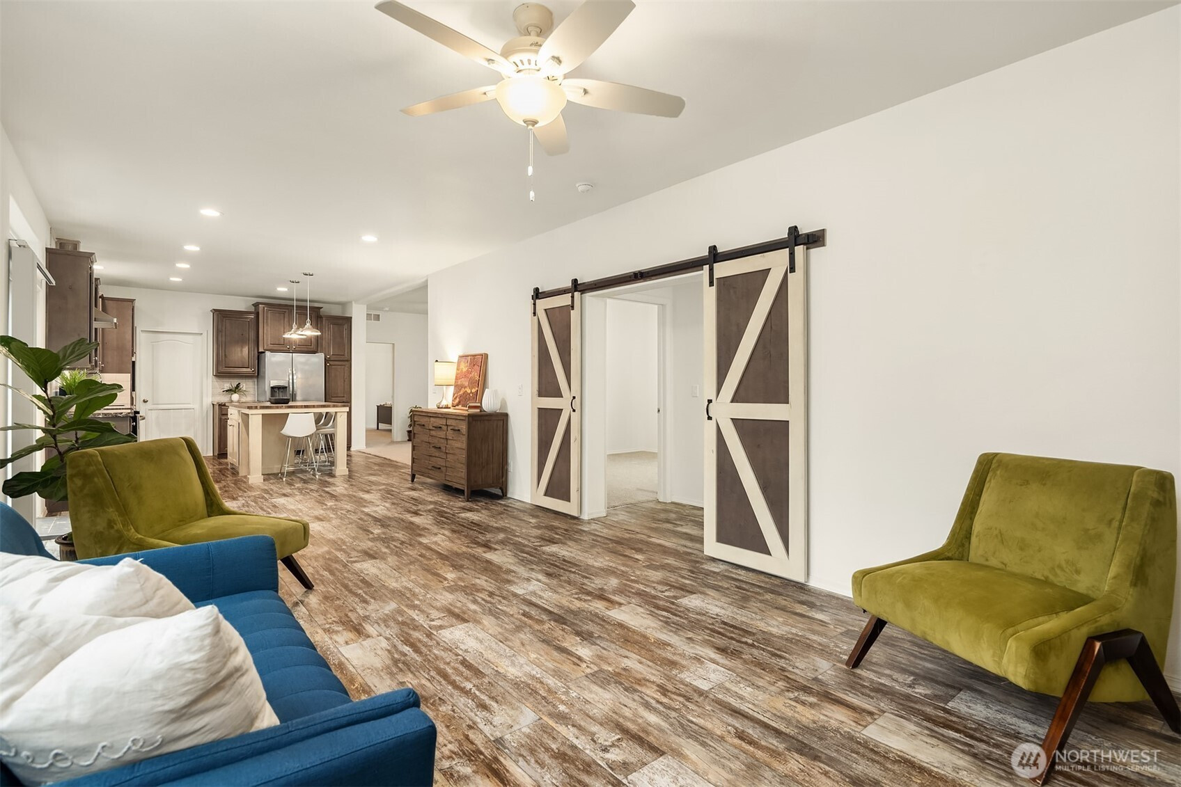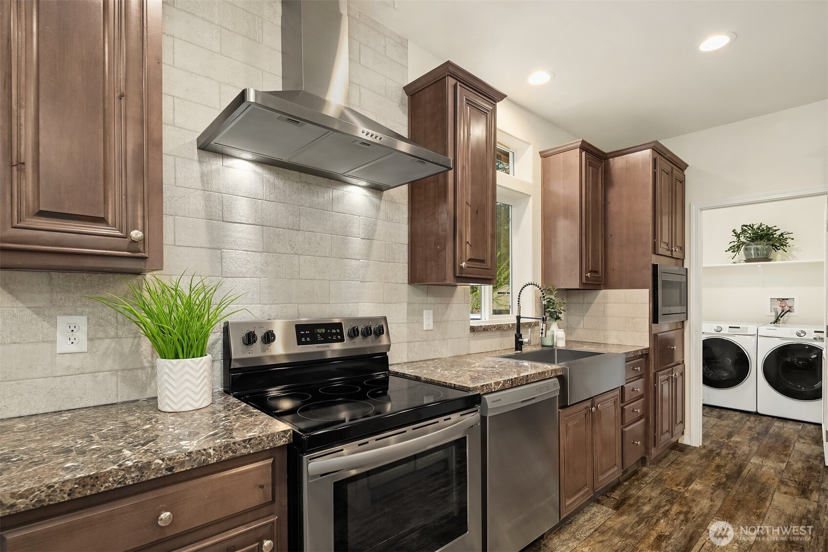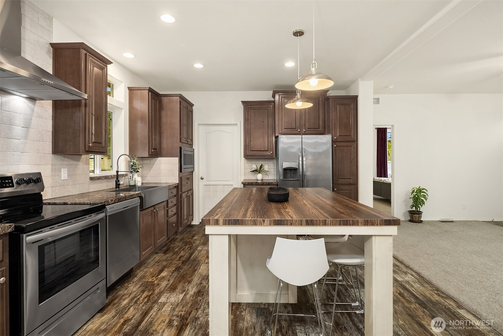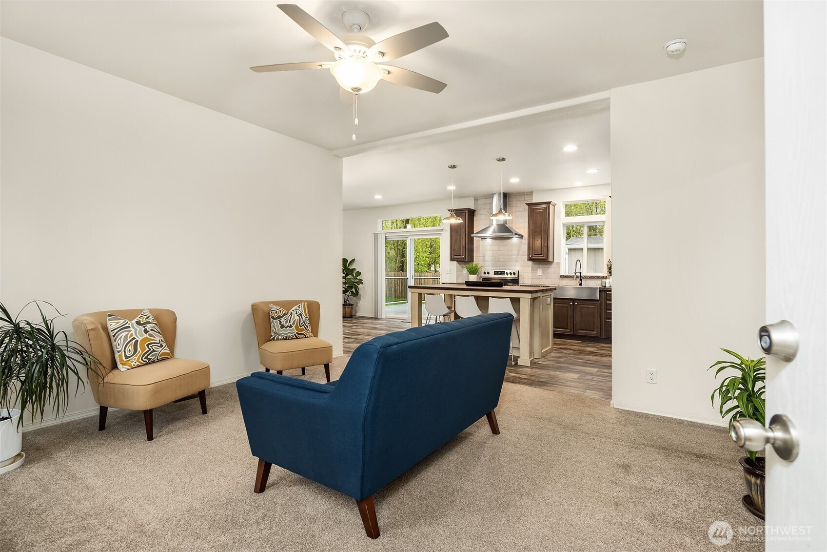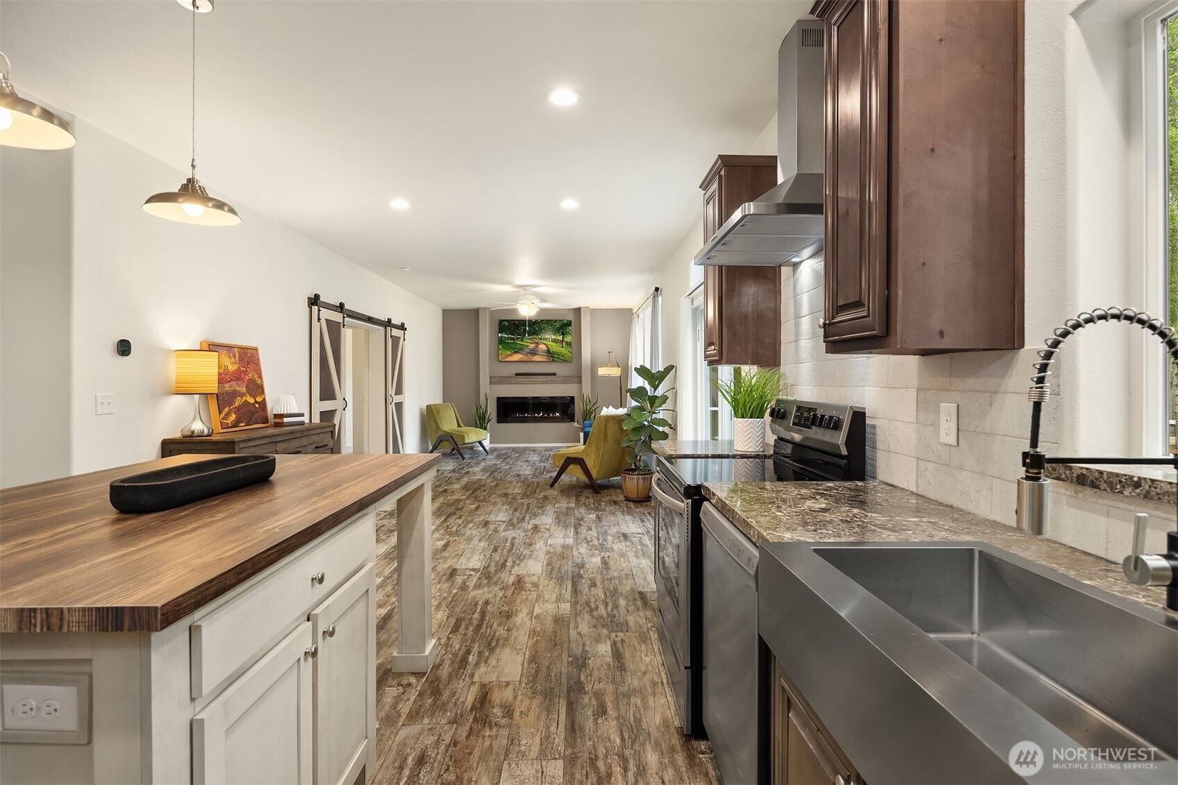 Ideally located just minutes from Wallace Falls and year-round outdoor recreation, this thoughtfully refreshed home offers an easy, comfortable flow with elevated finishes throughout. The light-filled great room is anchored by a cozy fireplace, while the kitchen serves as the heart of the home with a generous island, abundant storage, and stainless steel appliances. A functional mudroom and laundry area provide everyday convenience just off the back entry. The primary suite is a relaxing retreat with a walk-in closet and spacious bath. Outside, enjoy a fully fenced yard and rebuilt deck with accessible entry ramp, plus flexible parking options. Wired for AC and move-in ready.