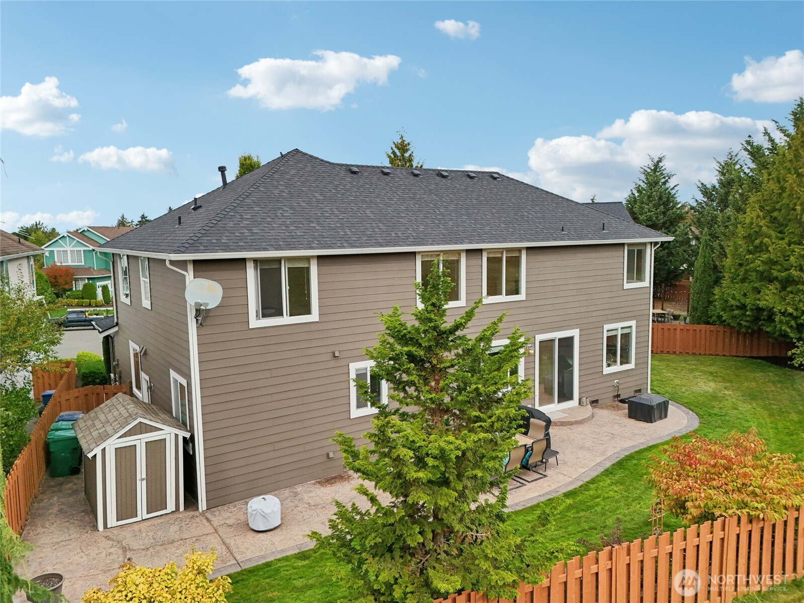 Welcome home to Highlands East. Tucked on a quiet cul-de-sac, this large, level lot rests in one of the area’s most desirable neighborhoods. 2025 remodel showcases an inviting chef’s kitchen, stunning main floor bath, refinished hardwoods, and fresh paint & carpet. Bright and airy with high ceilings & oversized windows. Kitchen includes sleek stainless appliances, expansive island, and walk-in pantry. Primary suite offers a spa-style en-suite and spacious walk-in closet. Flexible layout with formal living, dining rooms plus an upstairs bonus. Fully fenced backyard with stamped concrete patio and green space for privacy. Neighborhood features 4 parks & 3 sport courts. Minutes to trails, historic Snohomish, Glacier Peak HS, and Mill Creek TC