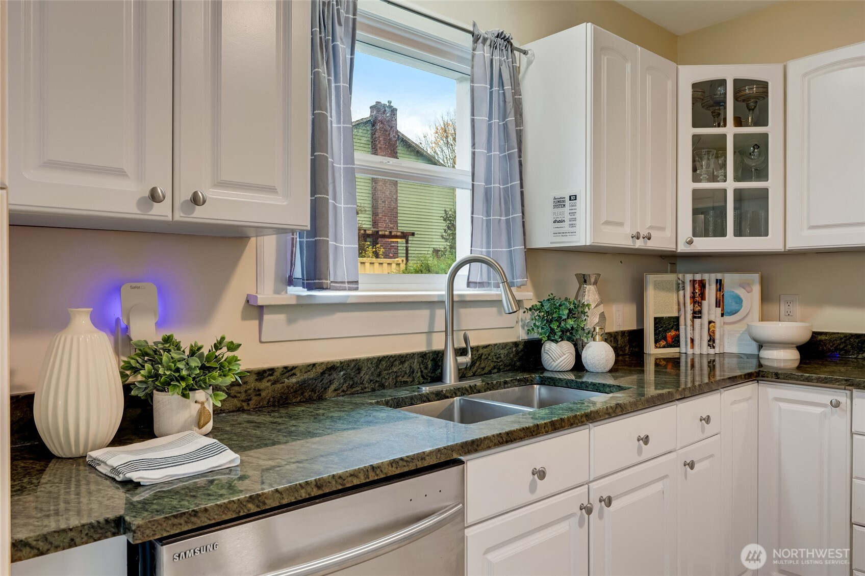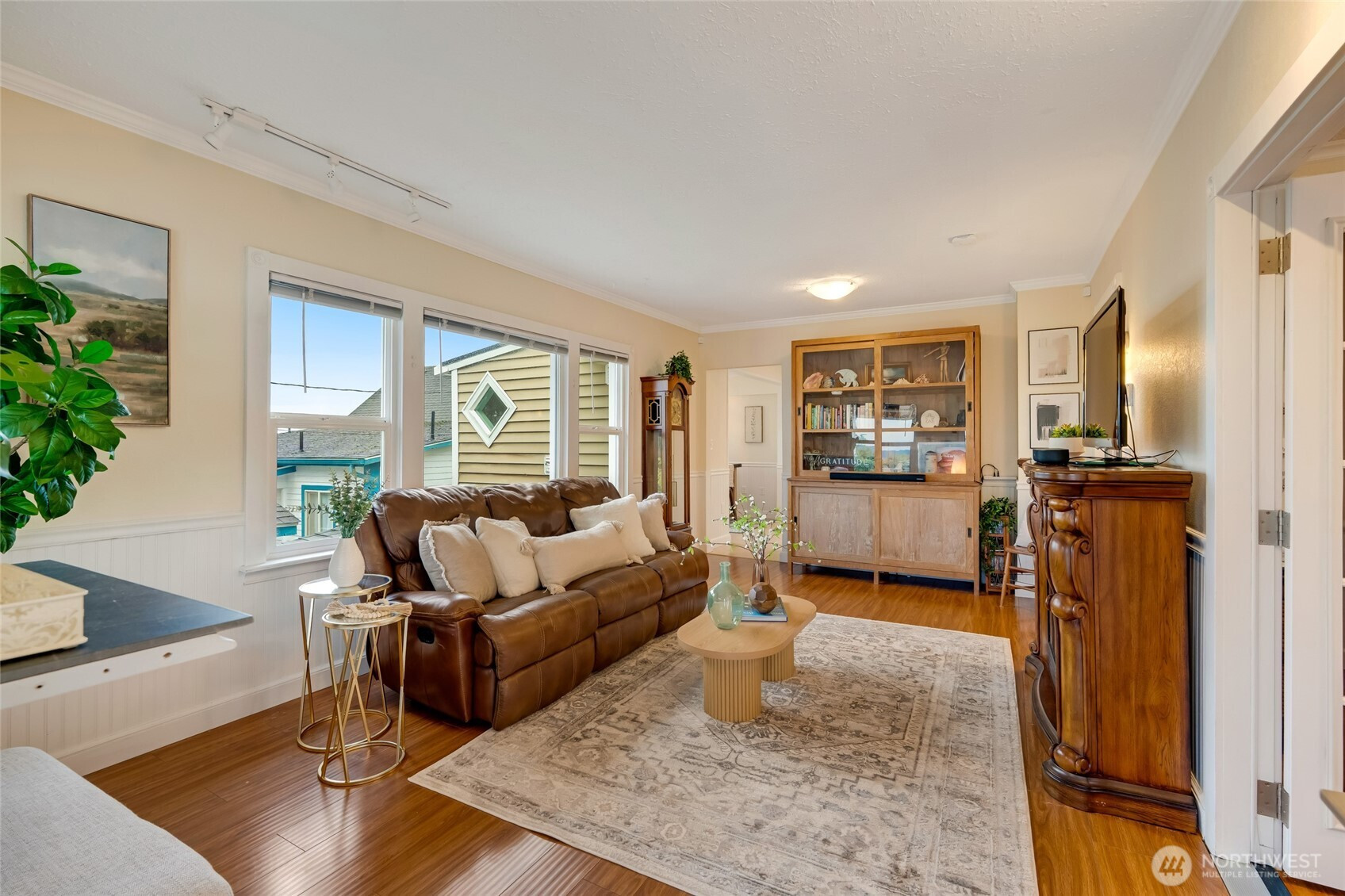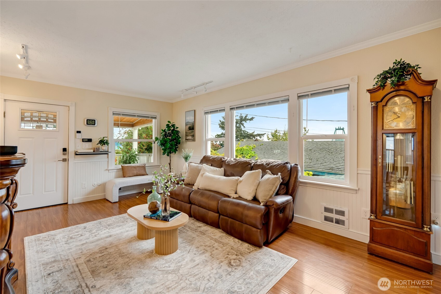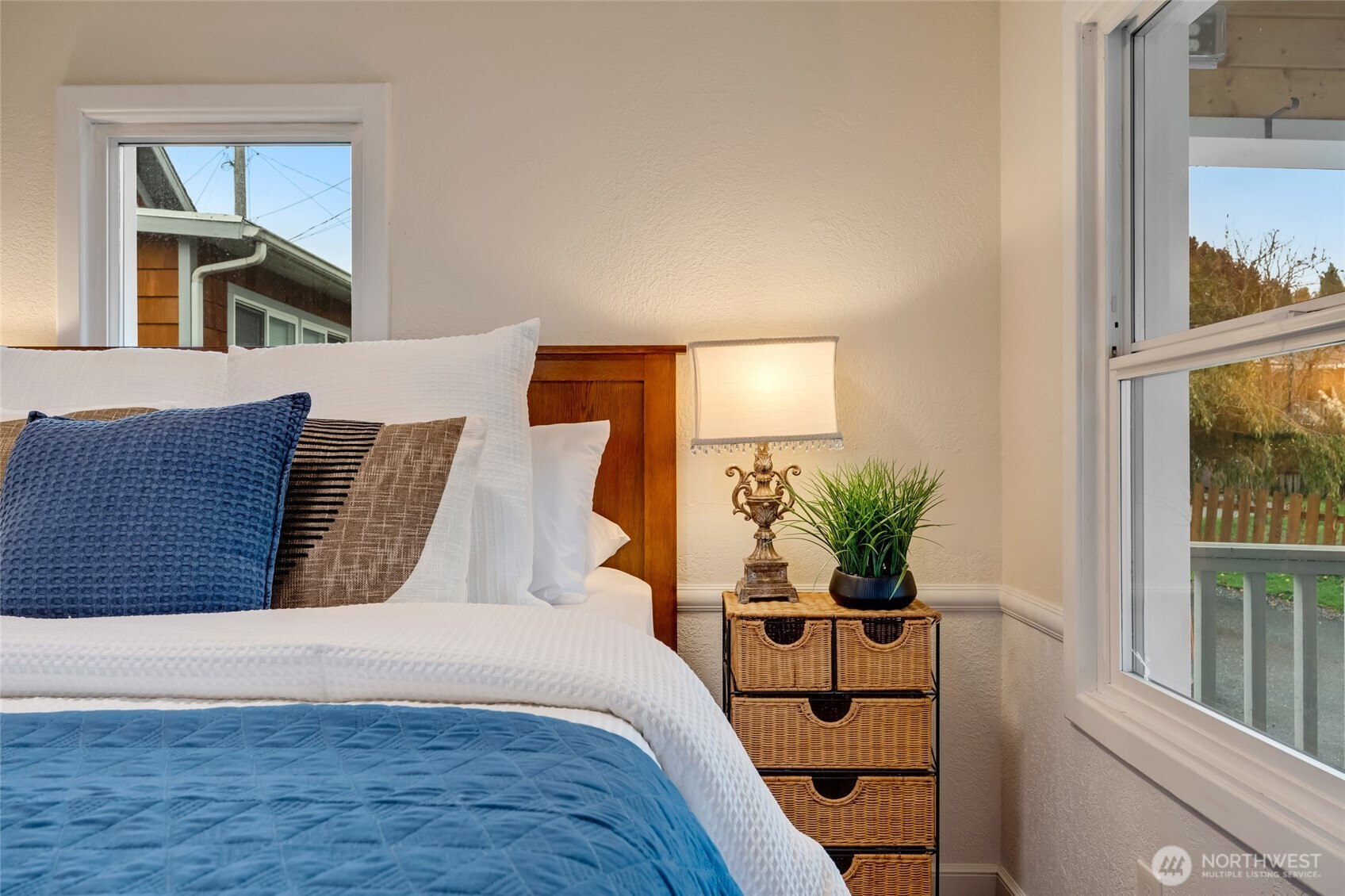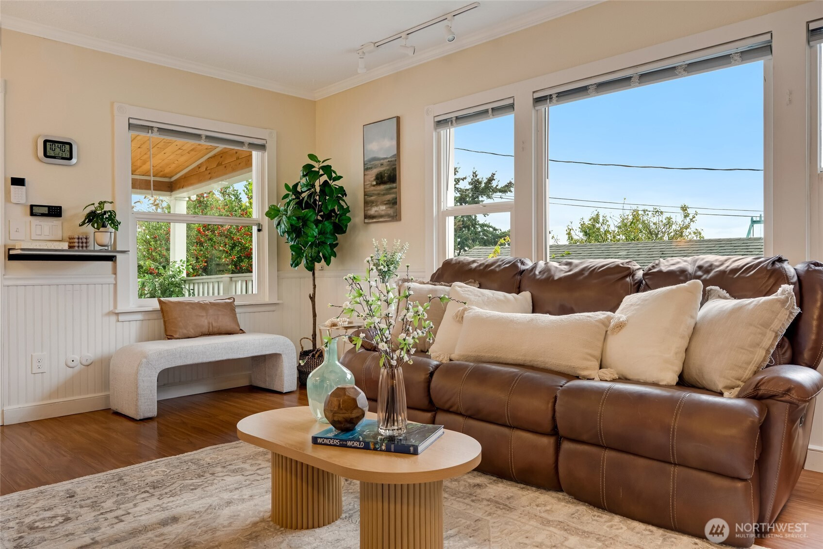 Welcome home - Where timeless charm meets refined living.Perfectly positioned to capture sweeping VIEWS of the Sound,this exceptional residence offers an elevated lifestyle in a truly serene setting. A full front covered porch invites you to relax and take in the breathtaking sunsets and sunrises. Inside, the thoughtfully designed layout features 2 bedrooms and an open-concept kitchen and dining area. W/ main-floor laundry! & abundant natural light.The lower level offers a versatile bonus room & full workshop space,providing endless opportunities for creativity and storage.Step outside to a fully fenced backyard.Located within walking distance to Providence Pacific Campus. Don’t miss the opportunity to make this stunning home yours