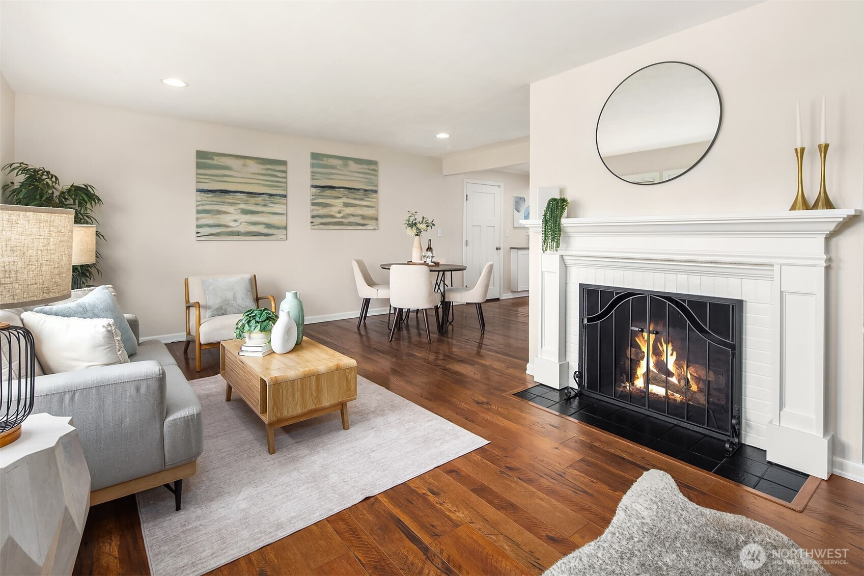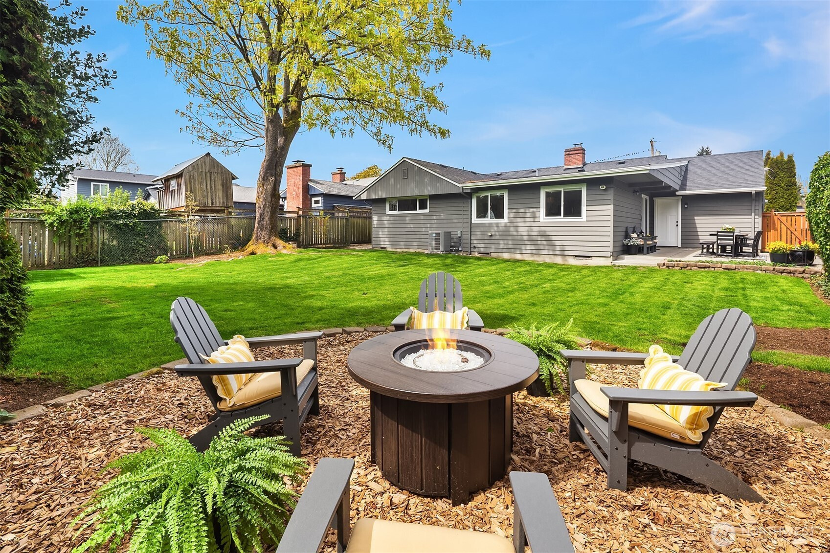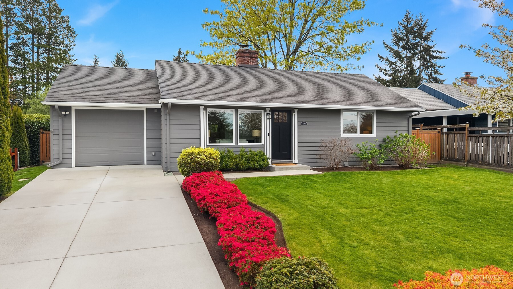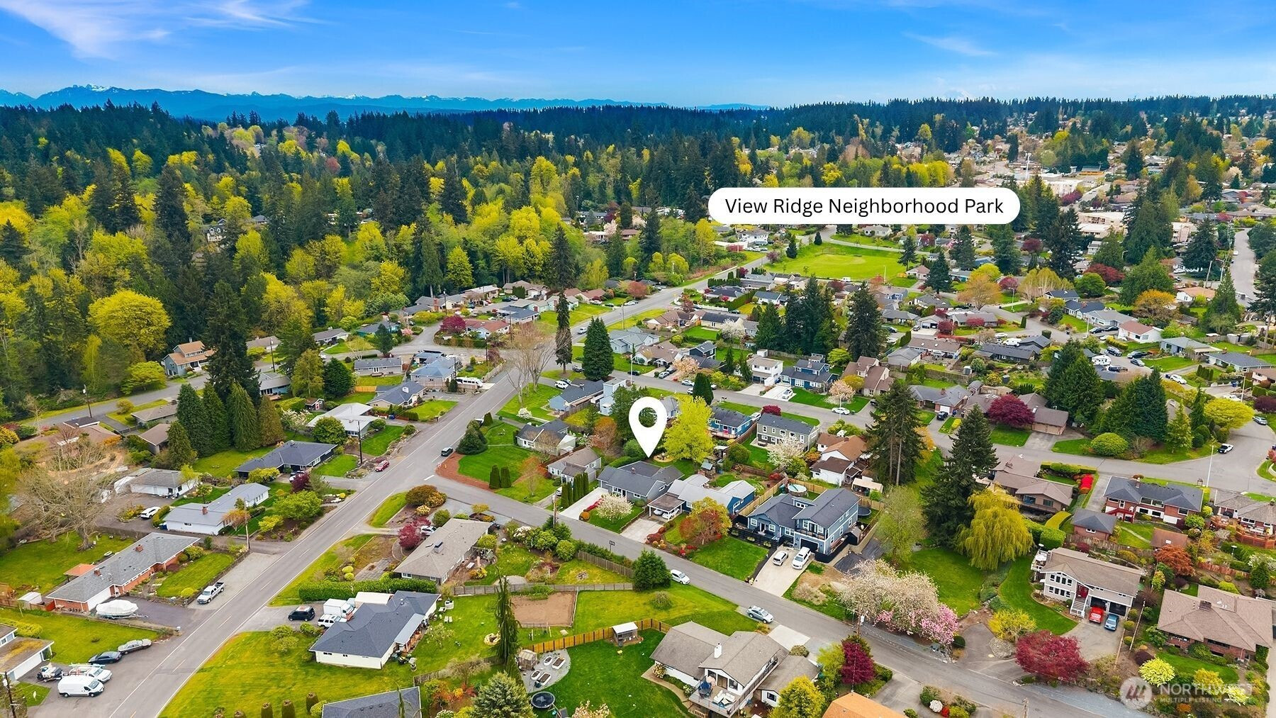 Located in the highly sought-after View Ridge neighborhood, this inviting one-level home offers comfort, character, and functionality. The level, fully fenced yard is beautifully maintained and offers ample space to enjoy, garden, play, or entertain. The front entry welcomes you to a spacious living and dining room with hardwood floors, custom built-ins, and a statement fireplace. The open kitchen features an island with seating, abundant cabinetry and pantry space, an eating area, and a built-in buffet with desk space for added flexibility. The spacious primary suite includes dual closets and room for a sitting area. The remodeled bath showcases classic wainscoting and an updated vanity, while new windows fill the home with beautiful natural light. Electrical panel has been upgraded to support EV-to-home capability, allowing compatible electric vehicles to supply backup power in the event of a power outage. Enjoy easy access to Howarth Park and Forest Park, along with a backyard patio perfect for entertaining in this walkable neighborhood with sweeping sound views.