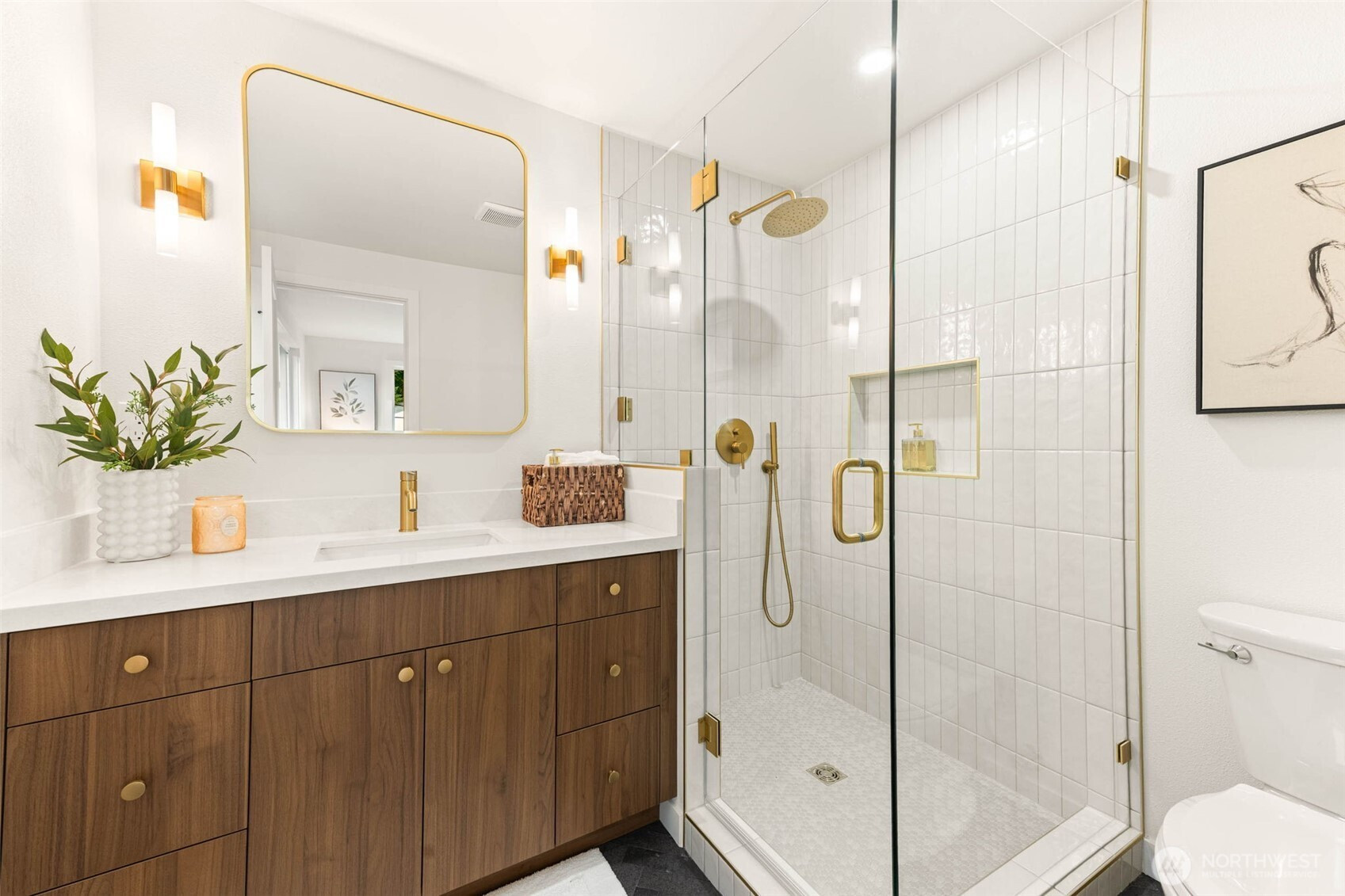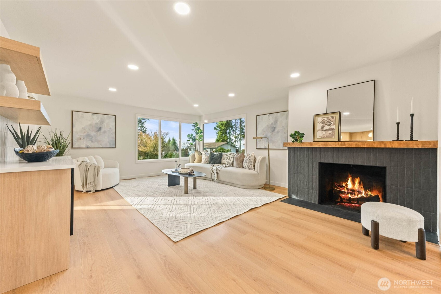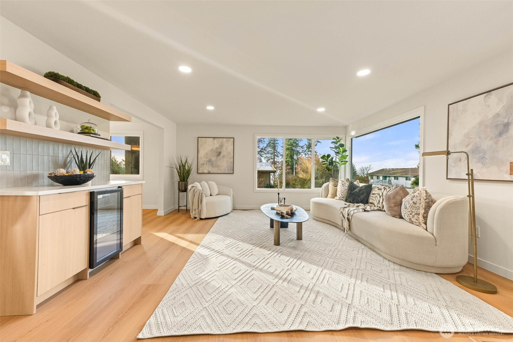 Framed by peek-a-boo views of the water and the Olympic Mountains, this beautifully remodeled Edmonds home is set within one of the area’s most established neighborhoods, just minutes from the heart of downtown. Filled with abundant natural light, the home has been thoughtfully reimagined and is truly turn-key, with permits in hand and finishes that strike a balance between modern design and timeless appeal. Large windows throughout create a bright, airy atmosphere, while the subtle coastal outlook provides a constant reminder of the home’s Pacific Northwest setting. At the center of the home, the designer kitchen is both striking and highly functional, anchored by an oversized island with generous seating- ideal for everyday living and effortless entertaining. The kitchen flows seamlessly into the main living space, where a wet bar just off the living room creates a natural gathering point for hosting and connection. Three bedrooms on the main level offer a rare and highly desirable floor plan, providing comfort, convenience, and ease of living. Downstairs, a private separate entrance leads to a secondary living room and fourth bedroom, creating flexible space well suited for guests, multi-generational living, or extended use. attached two-car garage is complemented by generous additional parking, offering endless opportunity for boat or RV storage—an exceptional feature this close to downtown Edmonds. Located within the award-winning Edmonds School District & free from HOA!