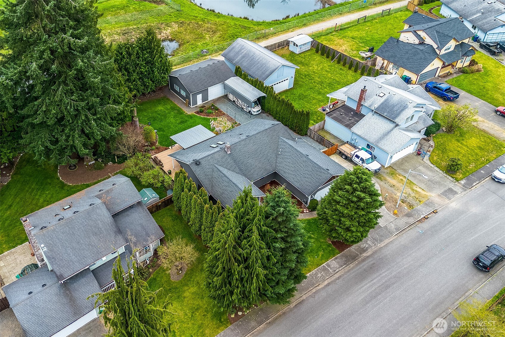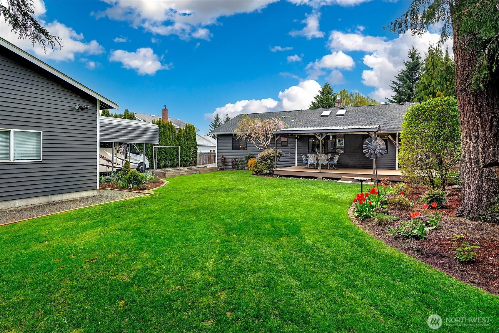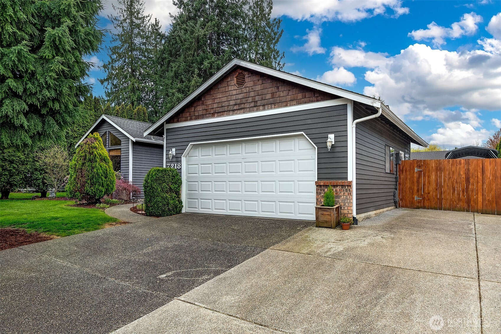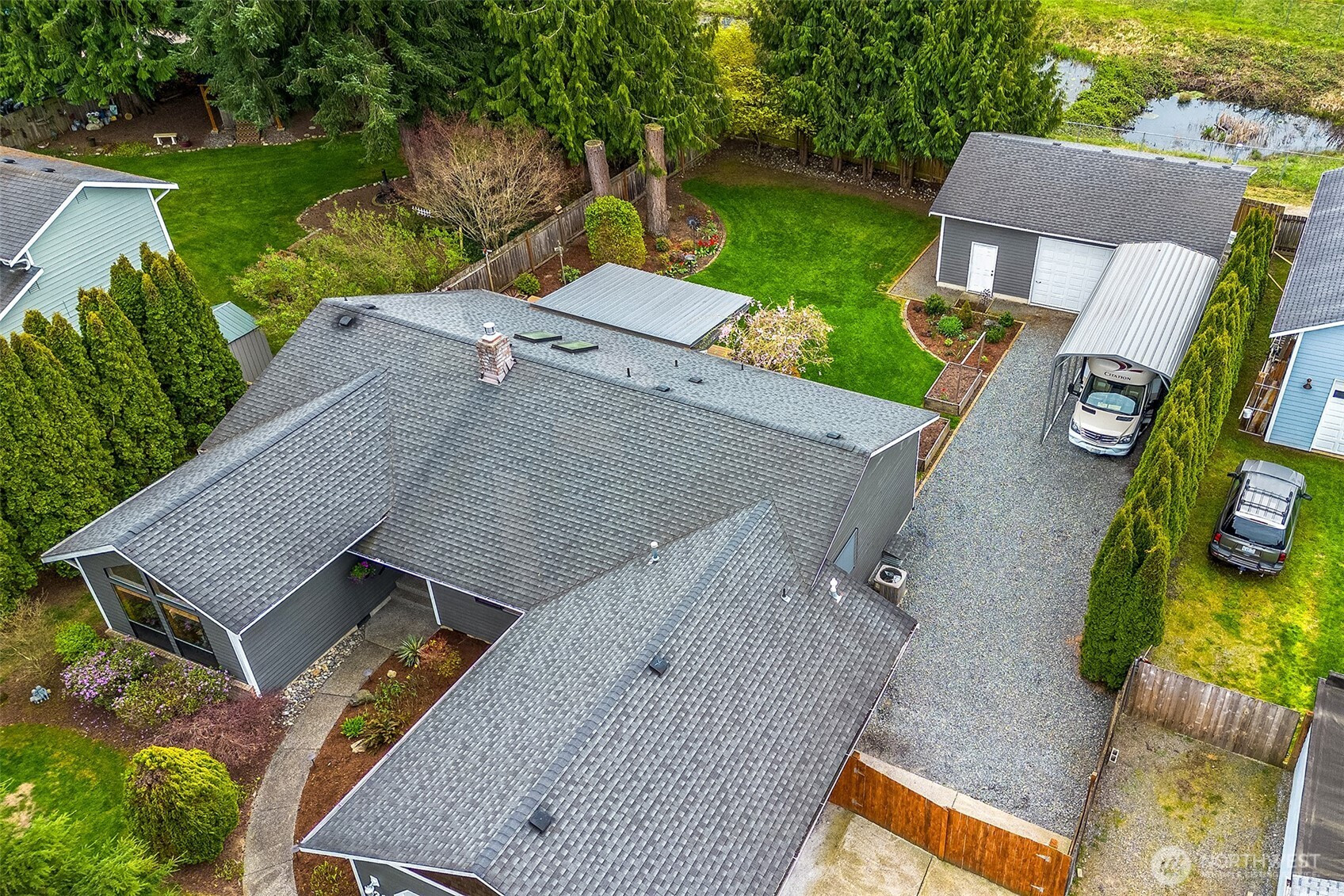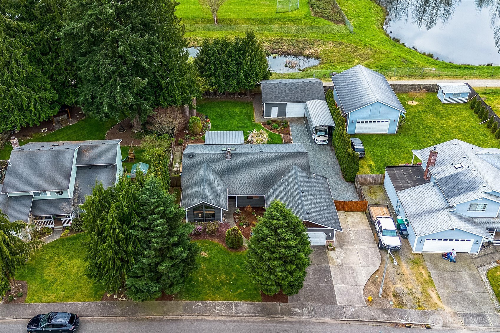 Discover your perfect retreat in this exquisite and rare Marysville Rambler! Immaculate 3-bed, 2-bath home spanning 1,800 sq ft offers a harmonious blend of style and comfort. Bright living room and family room with gas fireplace, formal dining, and newer LVP flooring complement vaulted ceilings and skylights. Generous kitchen with granite counters, eating bar and ample storage. Enjoy central A/C and gas heat. Unwind in the private, fully fenced backyard featuring mature landscaping and a large, covered composite deck, ideal for year-round BBQs! And all this backs up to Northpointe Park! Enter through the side rolling drive gate to find a dream shop built in 1997, complete with 10' ceilings and gas heater. Secure covered RV/boat parking awaits. Just minutes to I-5, shopping and more. No HOA!