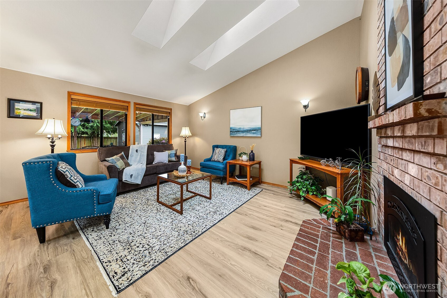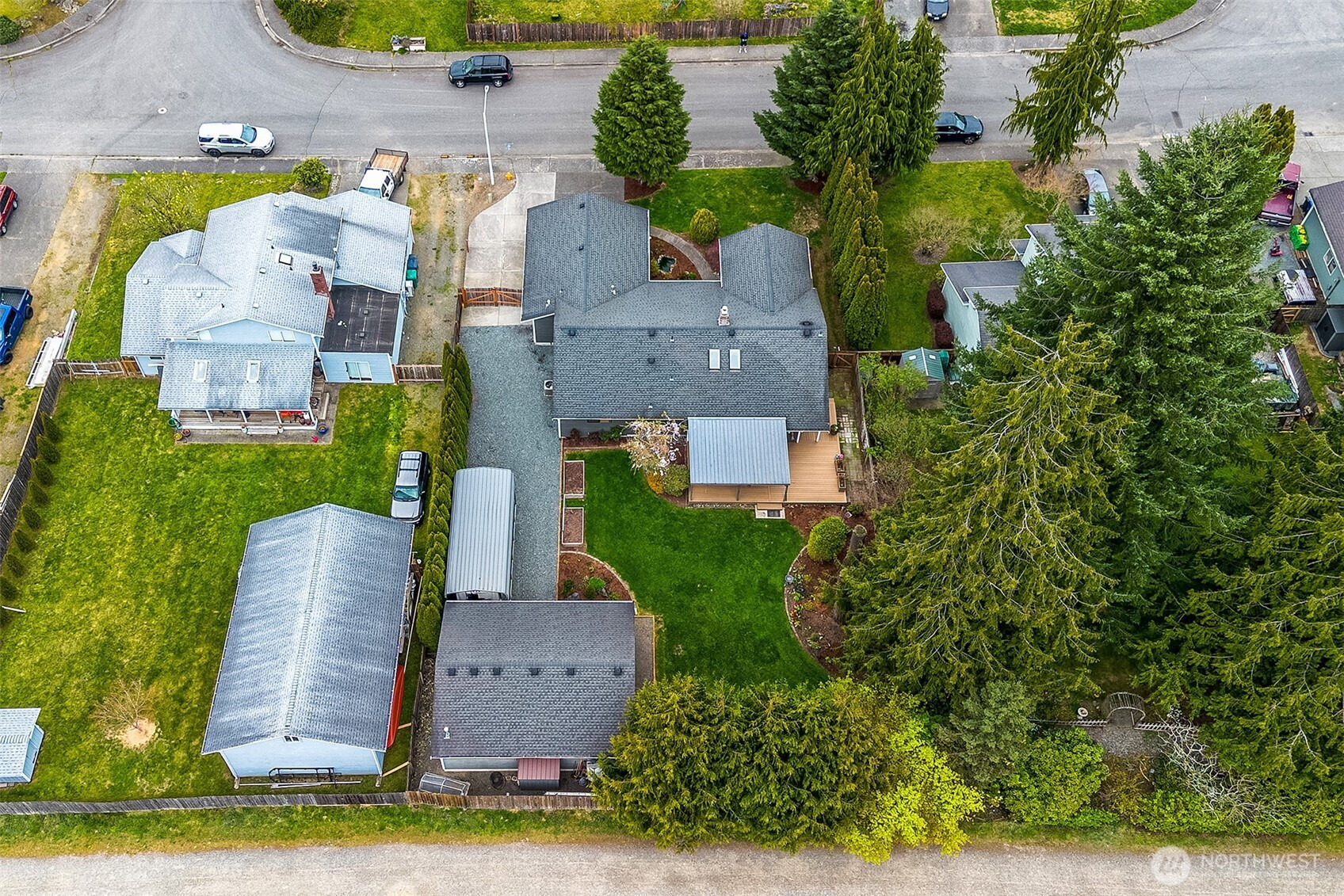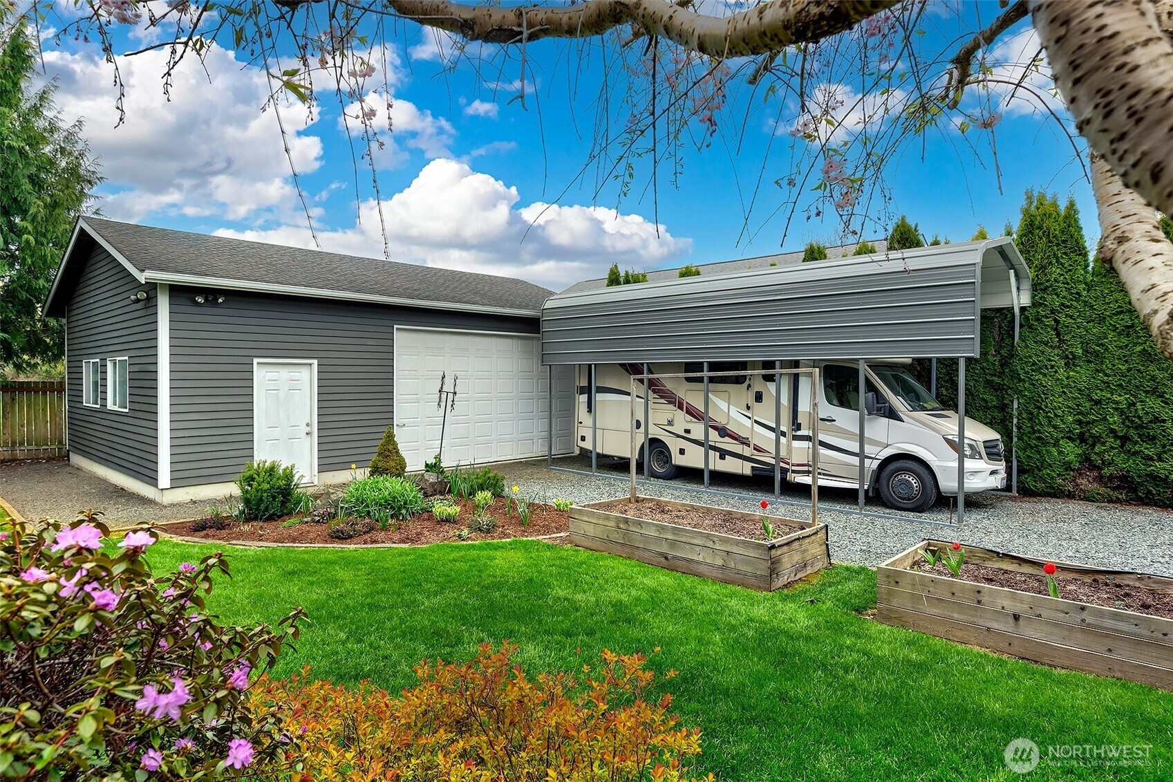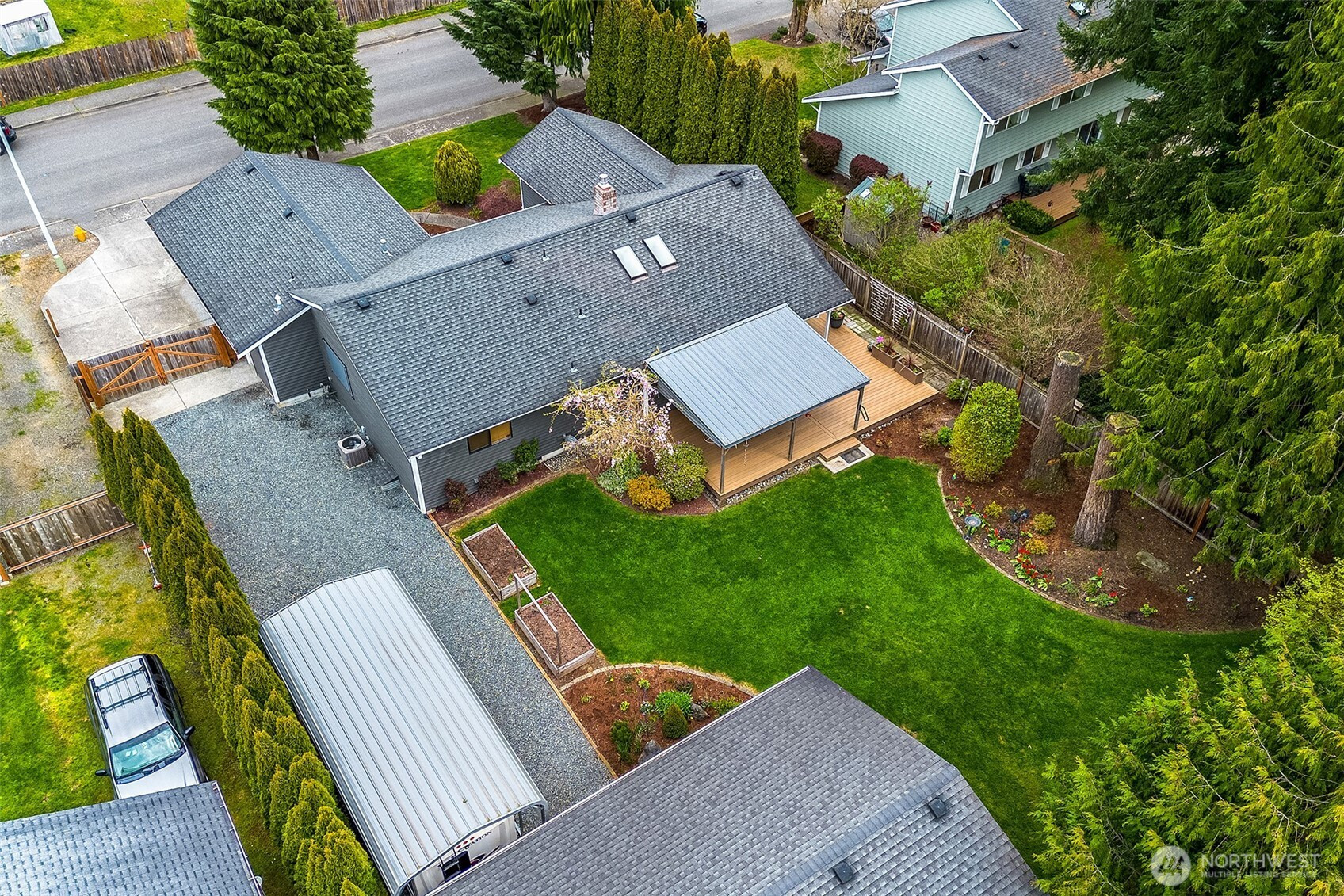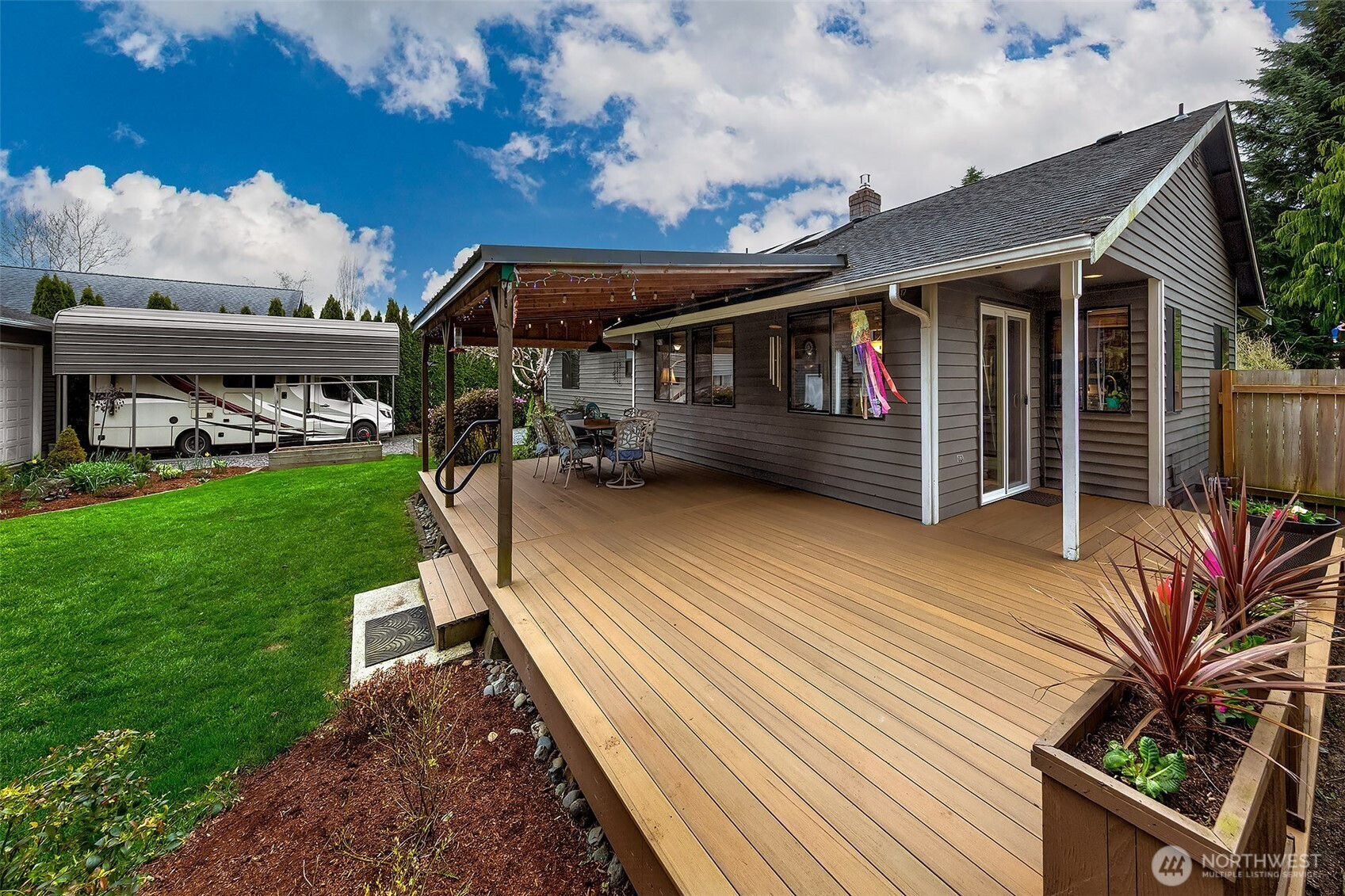 Discover your perfect retreat in this exquisite and rare Marysville Rambler! Immaculate 3-bed, 2-bath home spanning 1,800 sq ft offers a harmonious blend of style and comfort. Bright living room and family room with gas fireplace, formal dining, and newer LVP flooring complement vaulted ceilings and skylights. Generous kitchen with granite counters, eating bar and ample storage. Enjoy central A/C and gas heat. Unwind in the private, fully fenced backyard featuring mature landscaping and a large, covered composite deck, ideal for year-round BBQs! And all this backs up to Northpointe Park! Enter through the side rolling drive gate to find a dream shop built in 1997, complete with 10' ceilings and gas heater. Secure covered RV/boat parking awaits. Just minutes to I-5, shopping and more. No HOA!