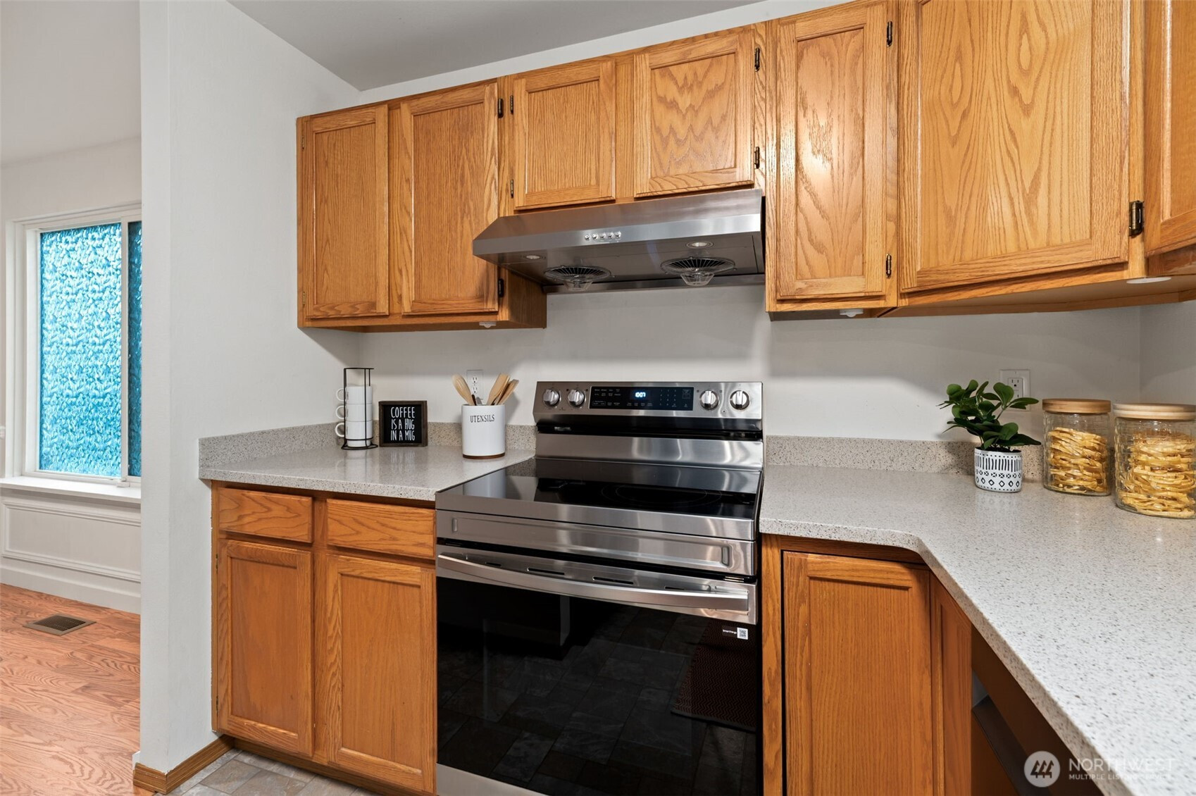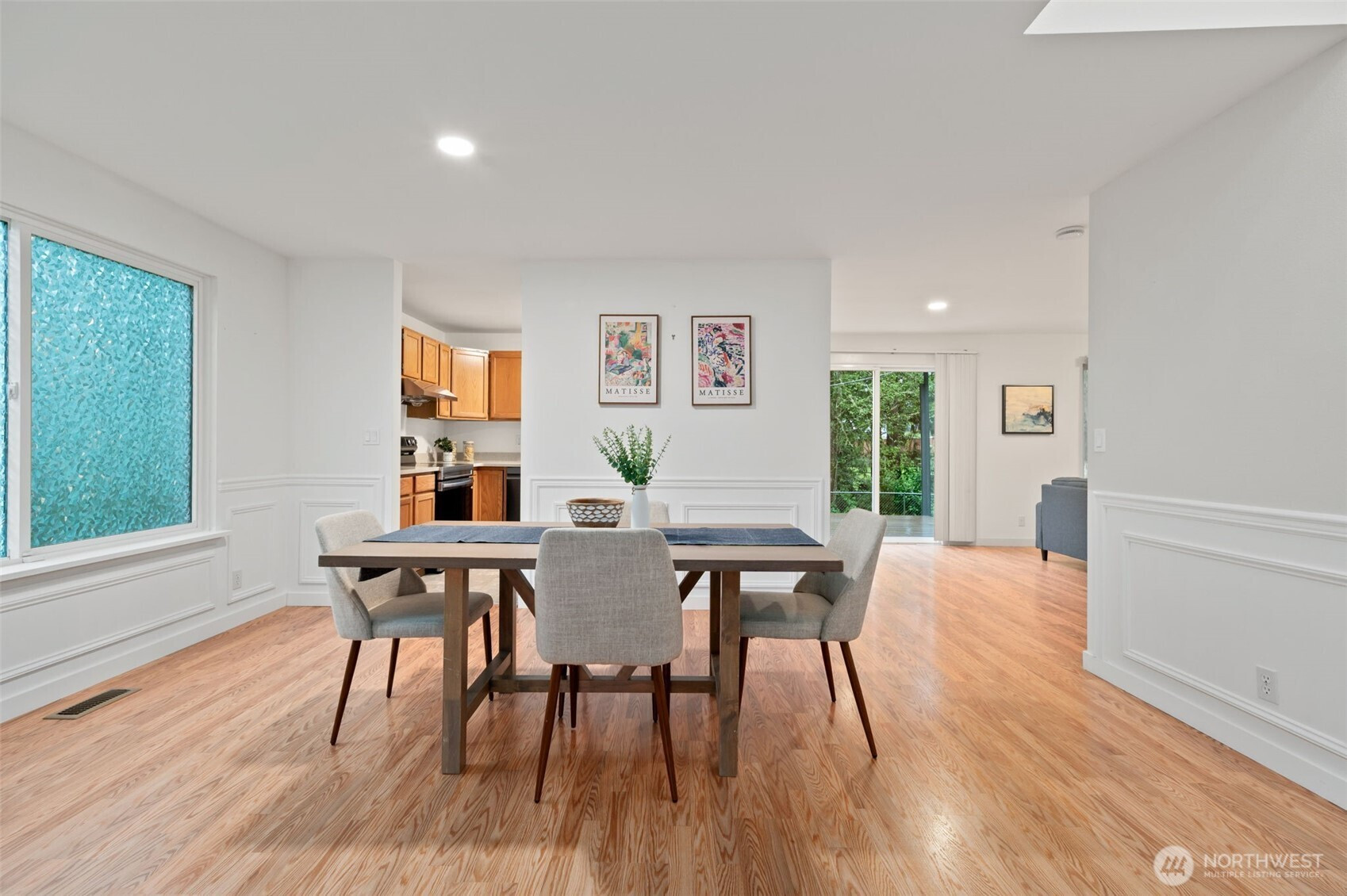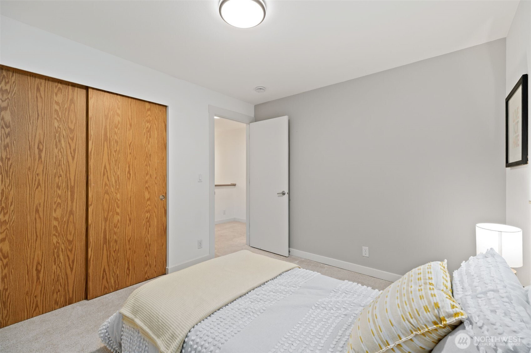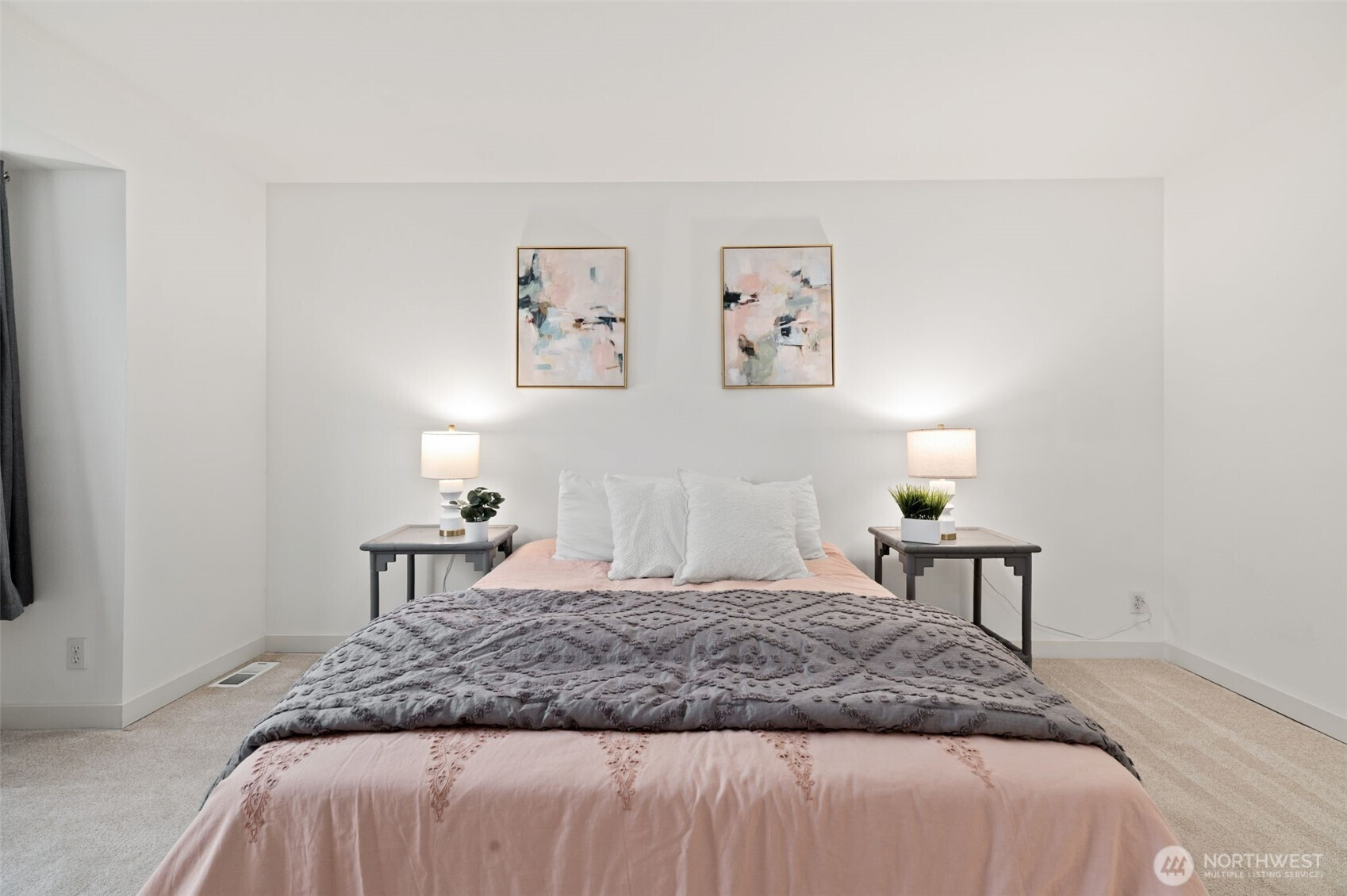 Move in ready, two-story home in a desirable cul-de-sac location convenient to Boeing, Freeways and minutes to Mukilteo Waterfront and Forest Park. Flex space front living and dining room with chair rail and shadow boxing. Wood laminate floors throughout main level. Rocker light switches. 6 panel white doors and white painted millwork. Kitchen with custom solid surface countertops, Stainless Steel appliances including brand new smooth top electric range + hood vent, newer Dishwasher and Refrigerator & newer vinyl floors. Open concept to eating nook and family room, perfect for entertaining. Sunny east/west exposure for great natural light. Primary suite with attached updated full bath and walk-in closet. Newer LG Washer & Dryer. A fully fenced spacious yard with Trex decking, garden lights & backs to a quiet greenbelt. Newer efficient Trane heat pump, AC, furnace, and water heater tank. Attached two-car garage. Low maintenance cement planked siding. No HOA. Pre-inspected for peace of mind.