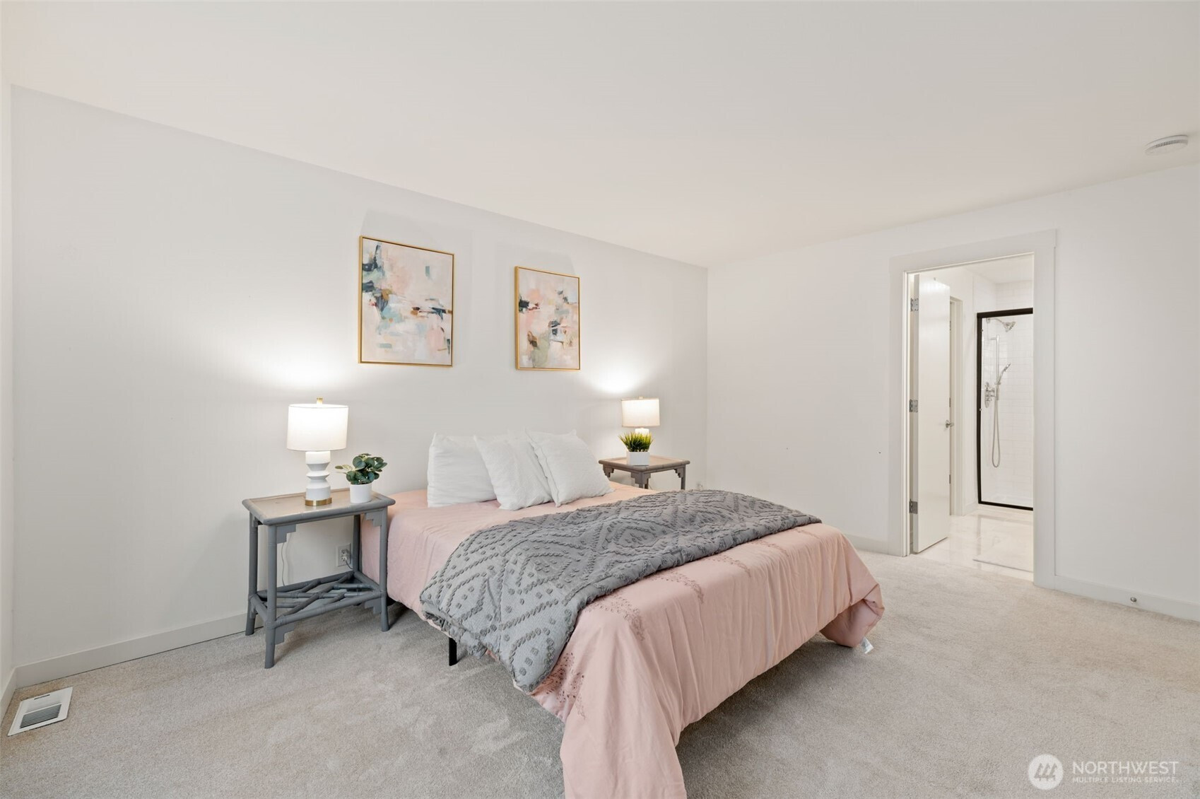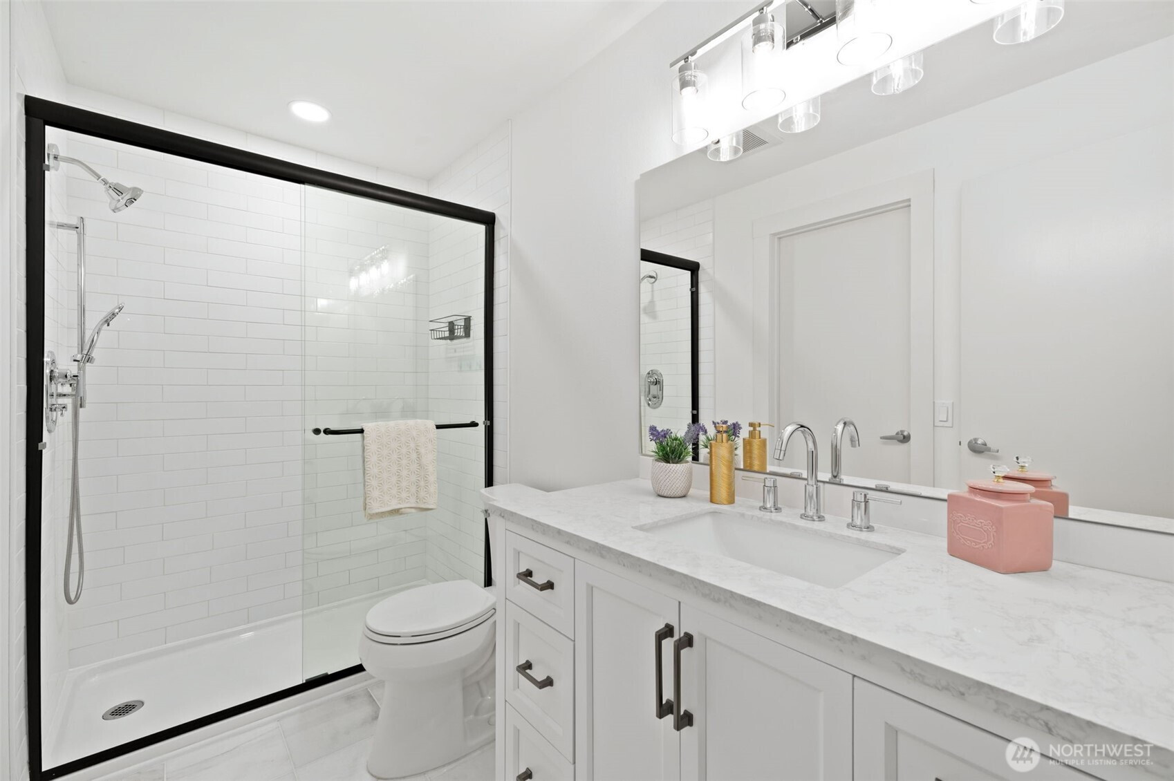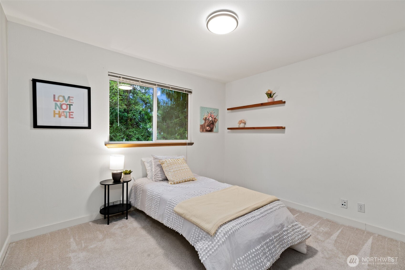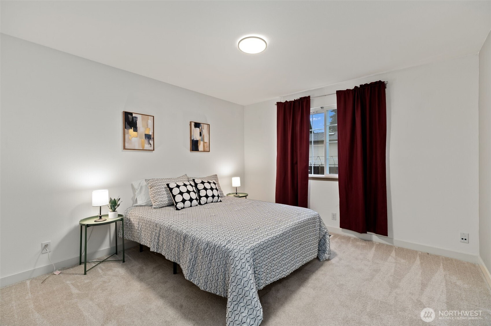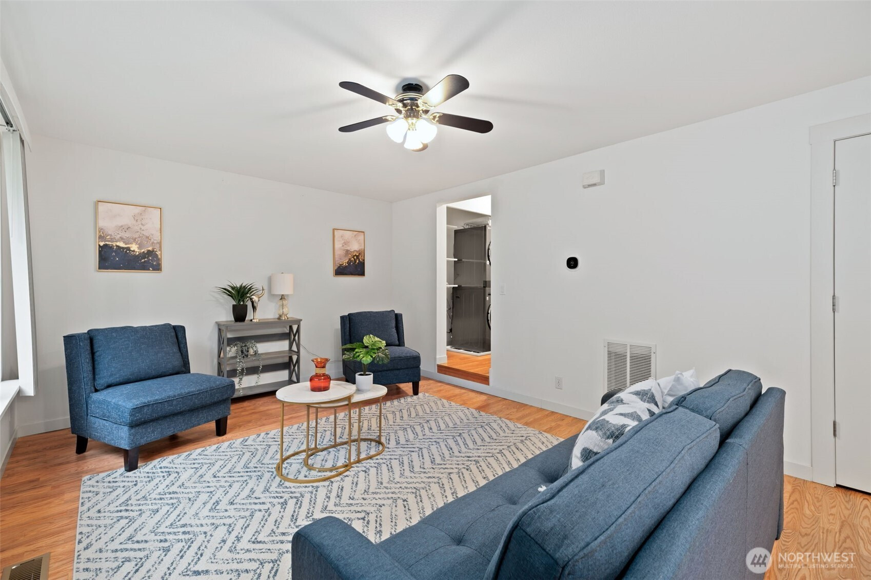 Move in ready, two-story home in a desirable cul-de-sac location convenient to Boeing, Freeways and minutes to Mukilteo Waterfront and Forest Park. Flex space front living and dining room with chair rail and shadow boxing. Wood laminate floors throughout main level. Rocker light switches. 6 panel white doors and white painted millwork. Kitchen with custom solid surface countertops, Stainless Steel appliances including brand new smooth top electric range + hood vent, newer Dishwasher and Refrigerator & newer vinyl floors. Open concept to eating nook and family room, perfect for entertaining. Sunny east/west exposure for great natural light. Primary suite with attached updated full bath and walk-in closet. Newer LG Washer & Dryer. A fully fenced spacious yard with Trex decking, garden lights & backs to a quiet greenbelt. Newer efficient Trane heat pump, AC, furnace, and water heater tank. Attached two-car garage. Low maintenance cement planked siding. No HOA. Pre-inspected for peace of mind.