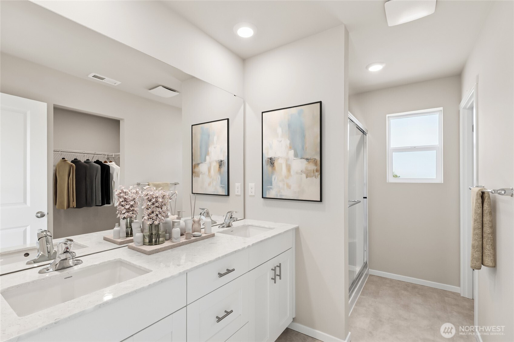 Say hello to The Juniper plan! Its bright, open main level has extended laminate hardwood throughout. The kitchen is designed for entertaining with a large eating island, quartz counters, light painted cabinetry, walk-in pantry, and stainless-steel appliances. Upstairs you’ll find the primary bedroom with ensuite that has double vanity and a large walk-in closet. Home boasts A/C, home automation package, 240Volt outlet for a car charger, plus a 1-2-10 year warranty! Bakerview is a stunning new community featuring pickleball courts, basketball court, playgrounds, picnic structures & tree-lined sidewalks. Ask about our great rates and lender incentives! Buyers must register your Broker on the first visit, including open houses.