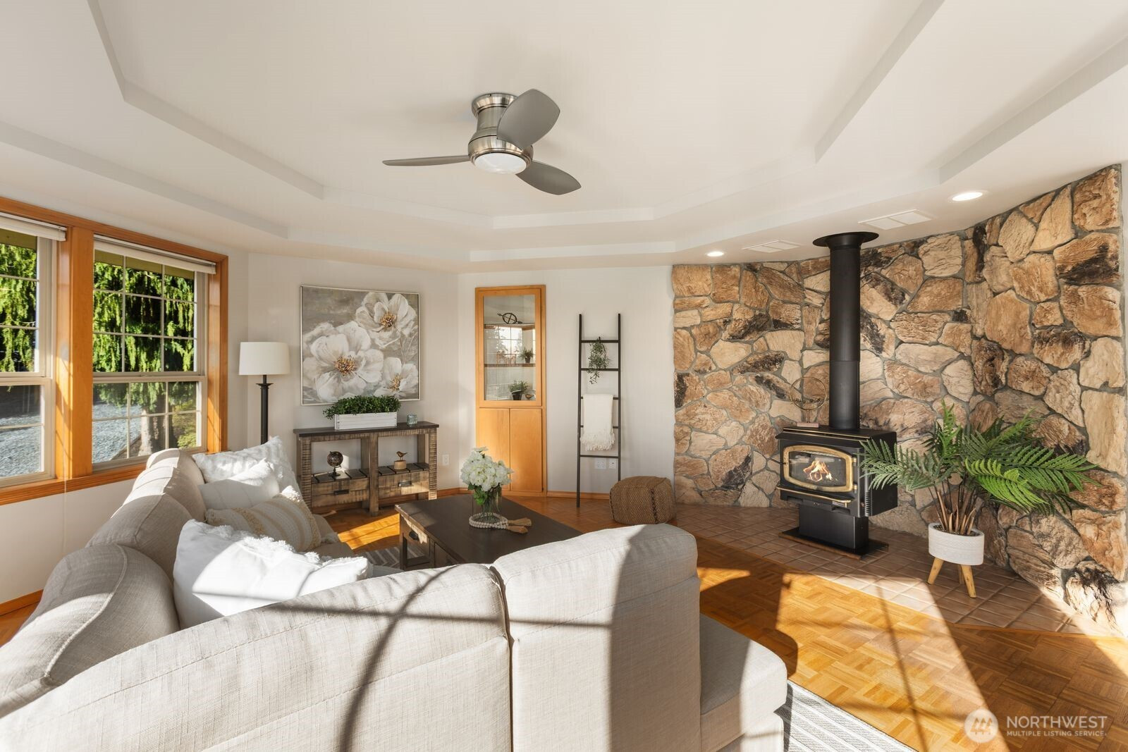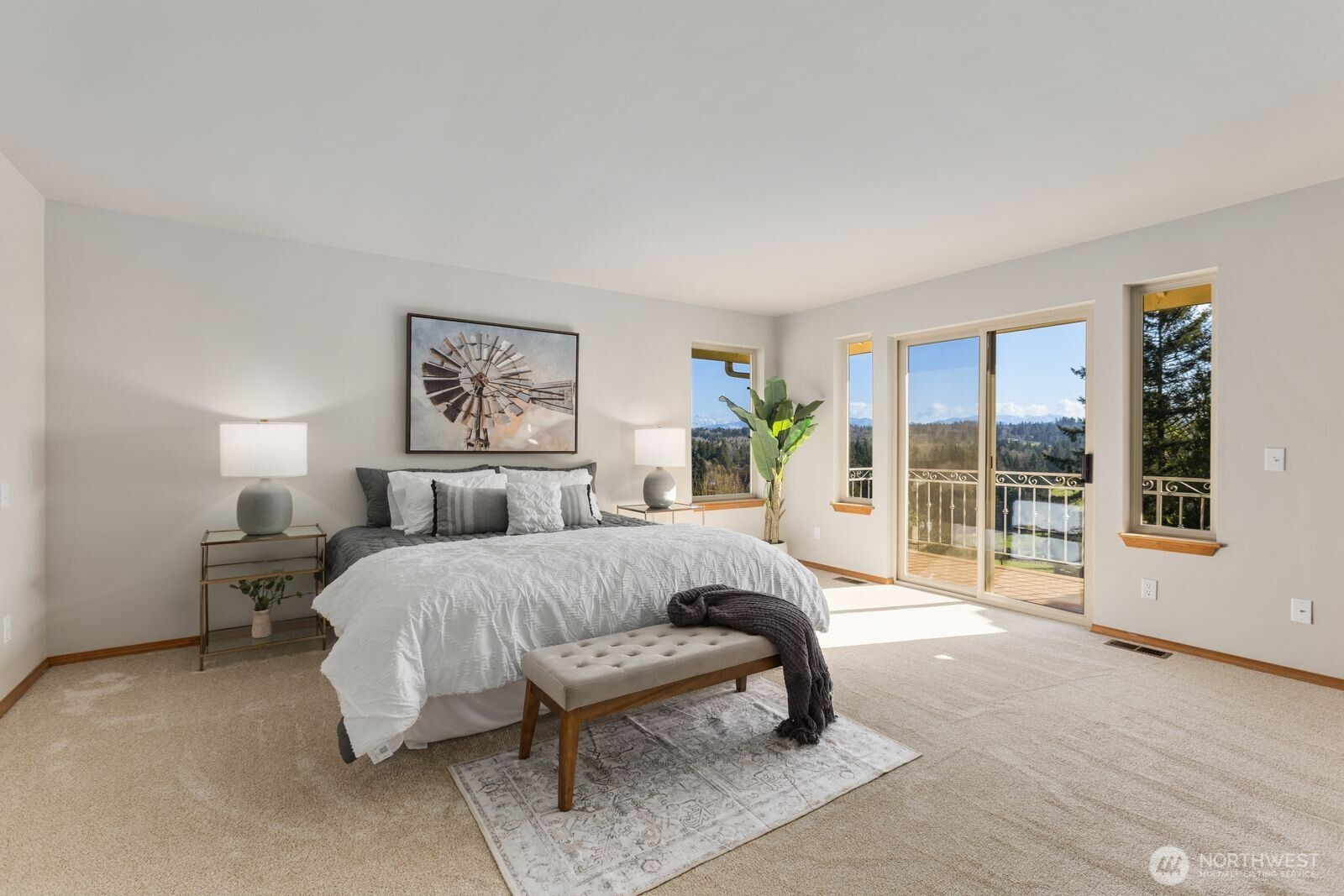 TIMELESS DESIGN & UNFORGETTABLE VIEWS | VISTA LA GRANDE - This custom-built rambler with a daylight basement has been thoughtfully designed and beautifully maintained, offering timeless appeal and everyday comfort. Ideally situated in the highly sought-after Dutch Hill community, known for its peaceful setting and scenic surroundings.From the moment you step inside, expansive windows frame the ever-changing Cascade backdrop, filling the open-concept living spaces with natural light and creating a seamless connection to the beauty outside. Brand new LVT flooring and plush carpet add a fresh, modern touch throughout. Whether hosting gatherings or enjoying a quiet morning, the spacious deck becomes an extension of the home—perfect for taking in sweeping mountain vistas and peaceful farmland below. The main-level primary suite is a private retreat, complete with ensuite bath, generous walk-in closet, and direct access to an additional deck for those serene start or end-of-day moments. Downstairs, the finished daylight basement expands the home’s livability with three additional bedrooms—one with an attached bath-and a versatile bonus space ideal for movie nights, working from home, or hosting guests with private entry. An additional washer/dryer hookup and roughed in plumbing enhance the space’s flexibility. Thoughtful features include a heat pump, central vacuum & generator-ready setup. A rare blend of comfort, functionality, and natural beauty—an exceptional place to call home.